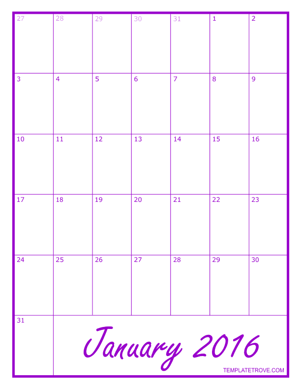 Blank monthly calendars have five colors to select from and print on standard 8 1/2" x 11" letter-size paper.