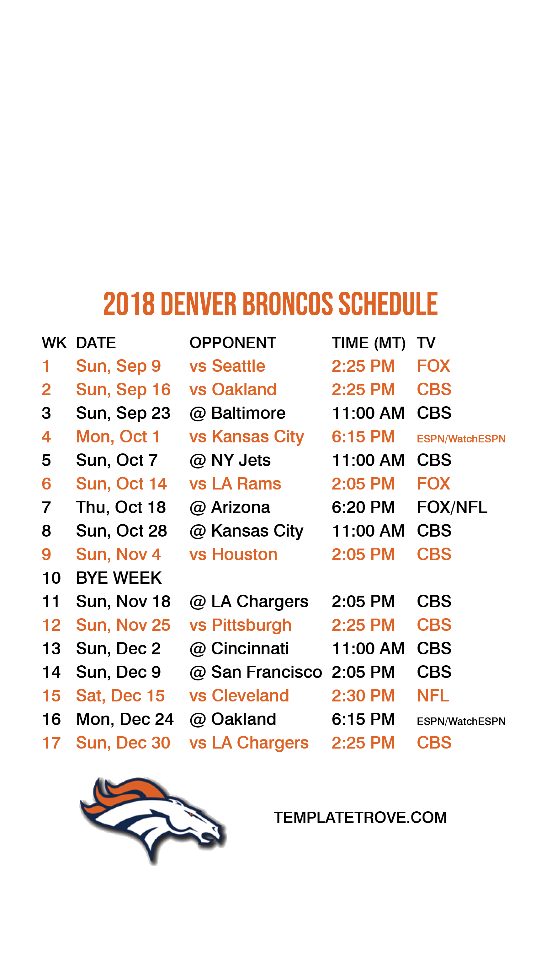 Broncos. With our iPhone 6, 7 and 8 Plus lock screen schedules and
