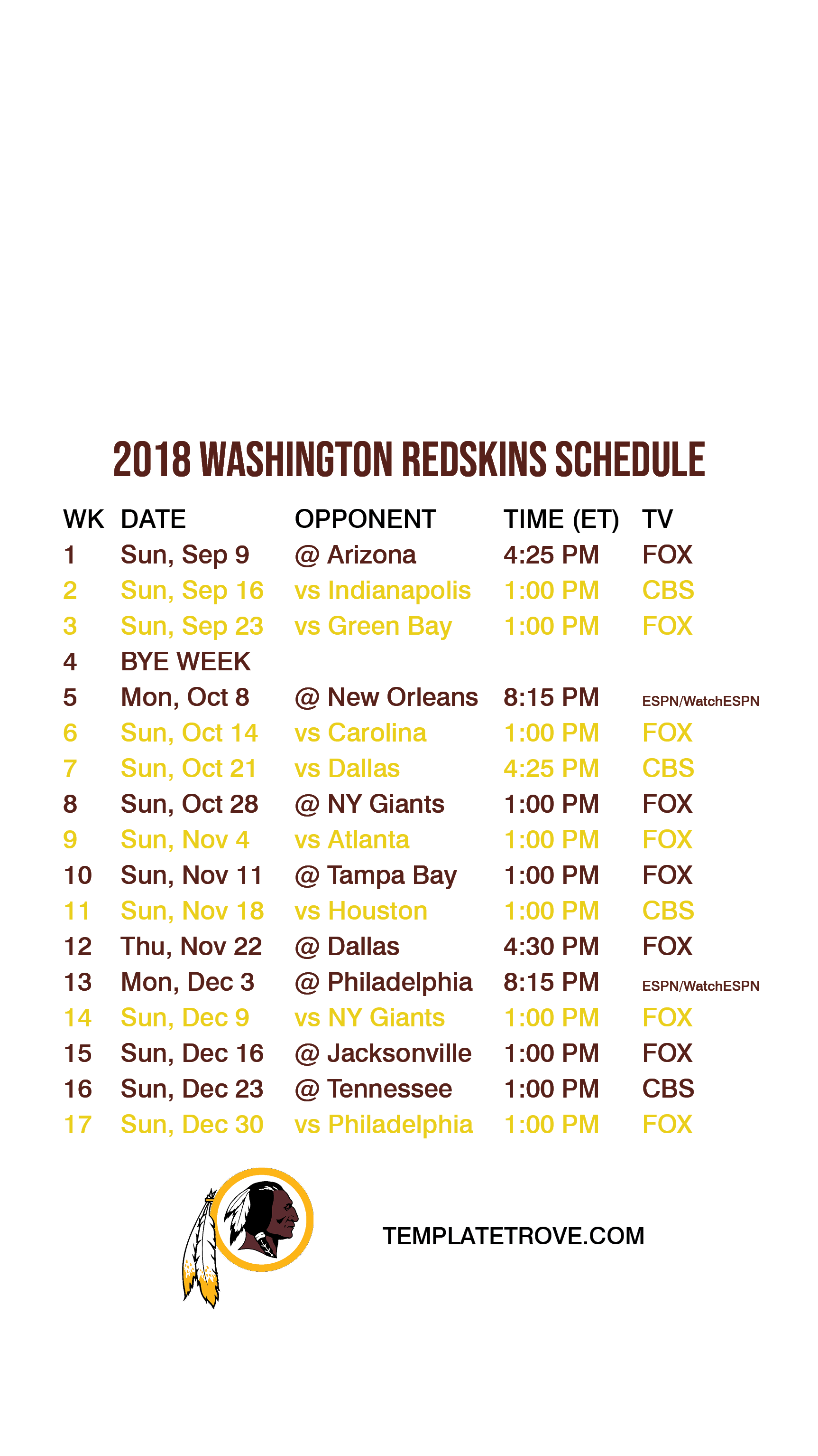 Redskins. With our iPhone 6, 7 and 8 Plus lock screen schedules and