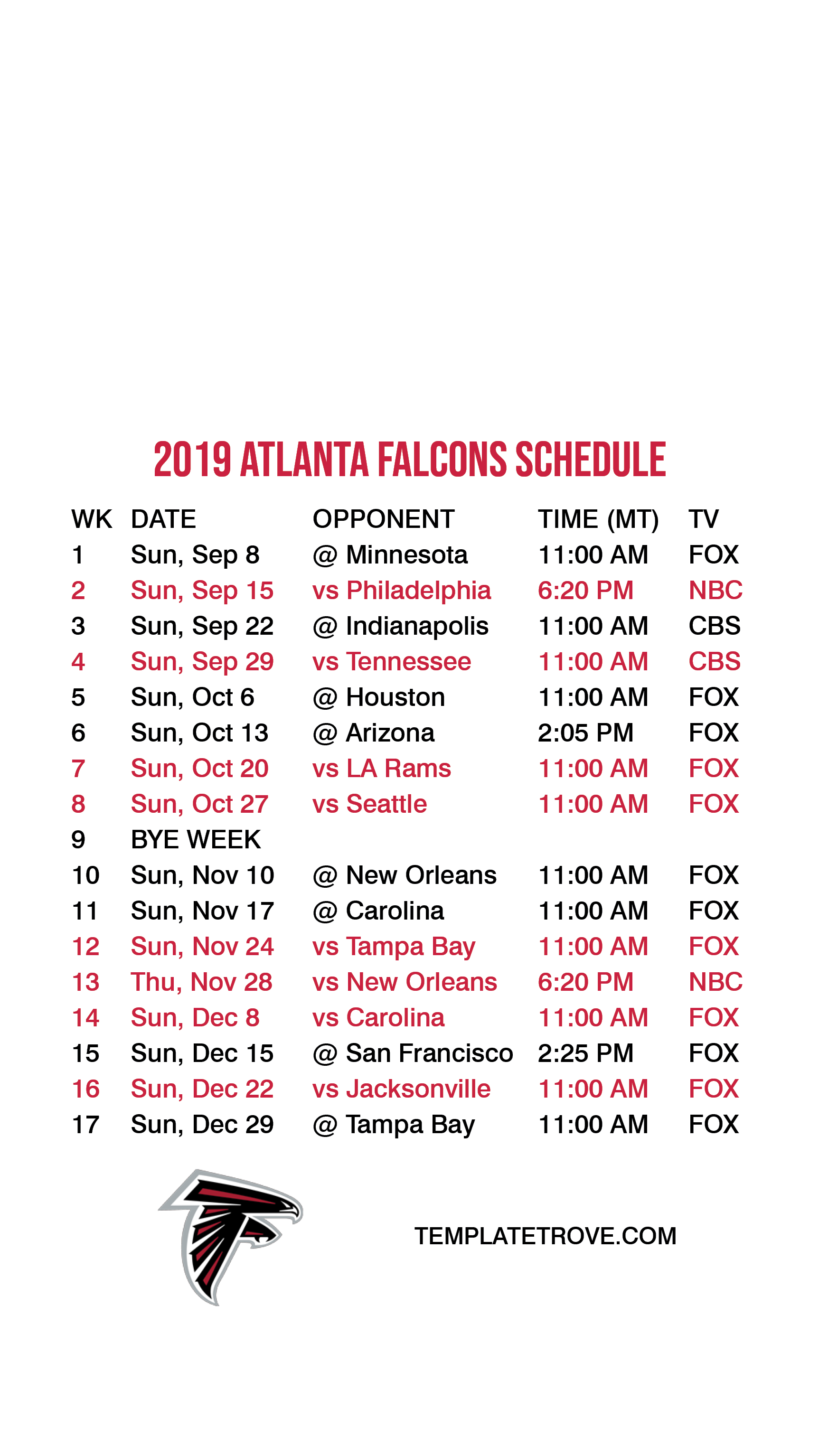 wallpaper you can have the Falcons schedule available every time you