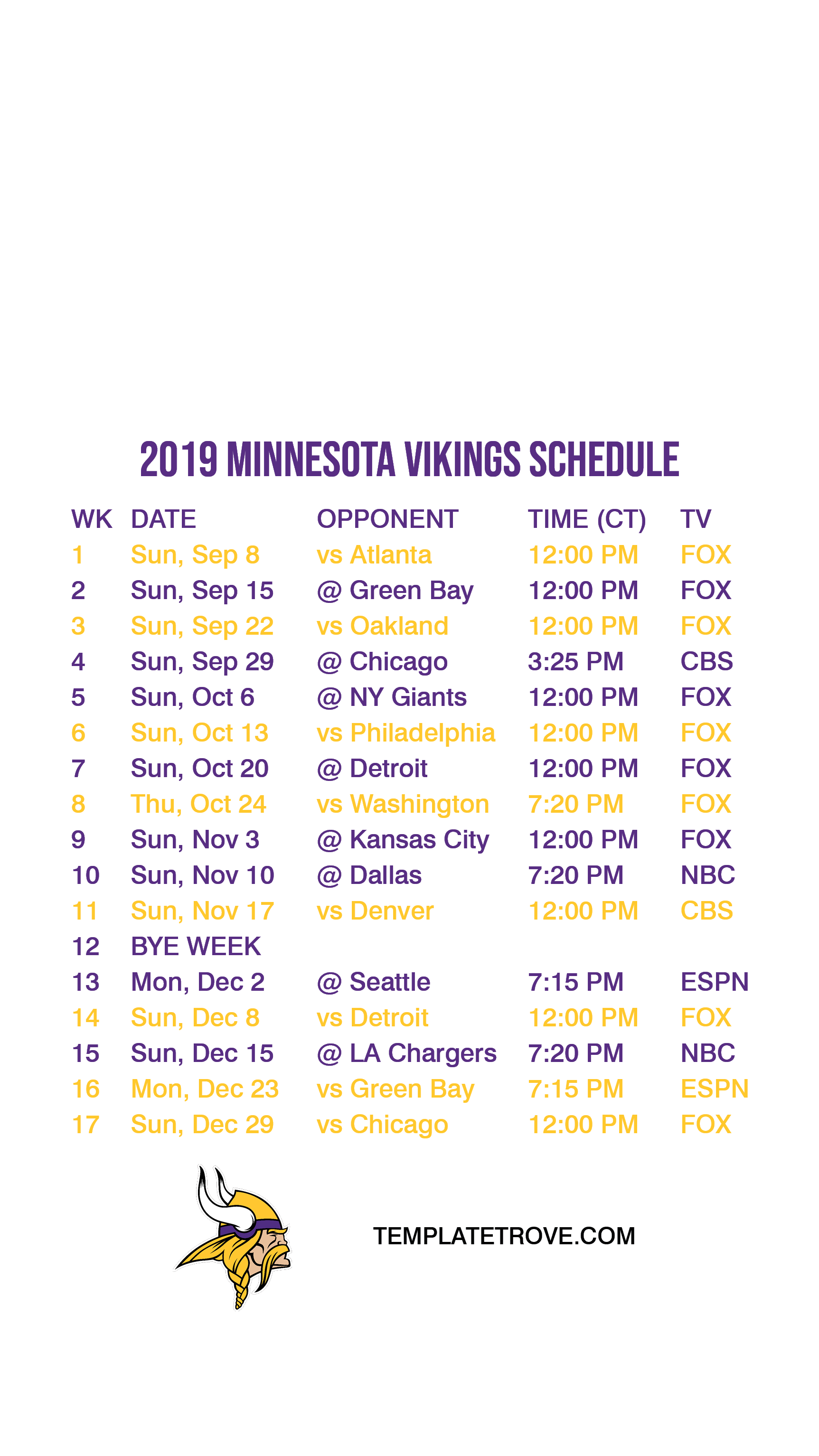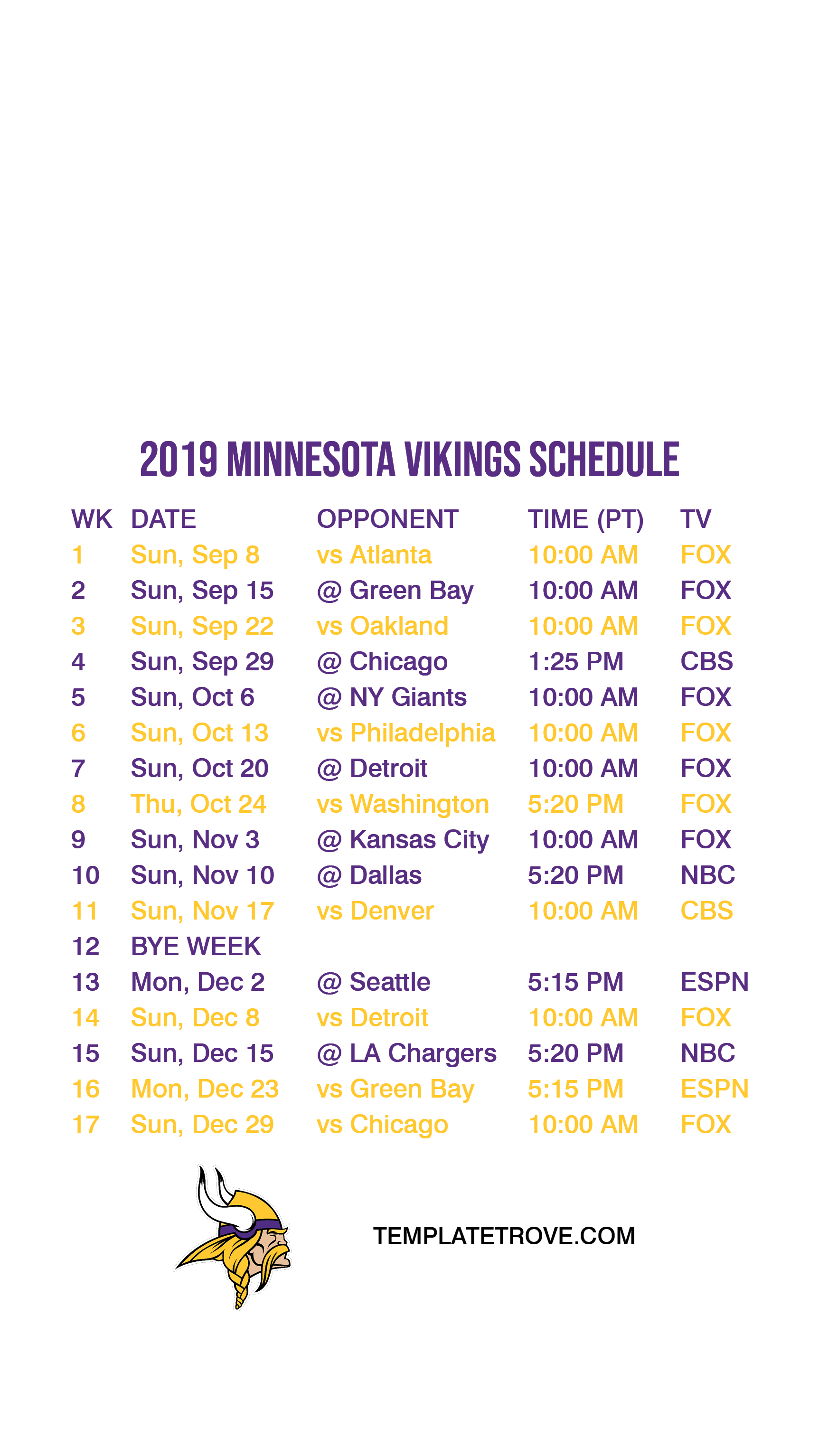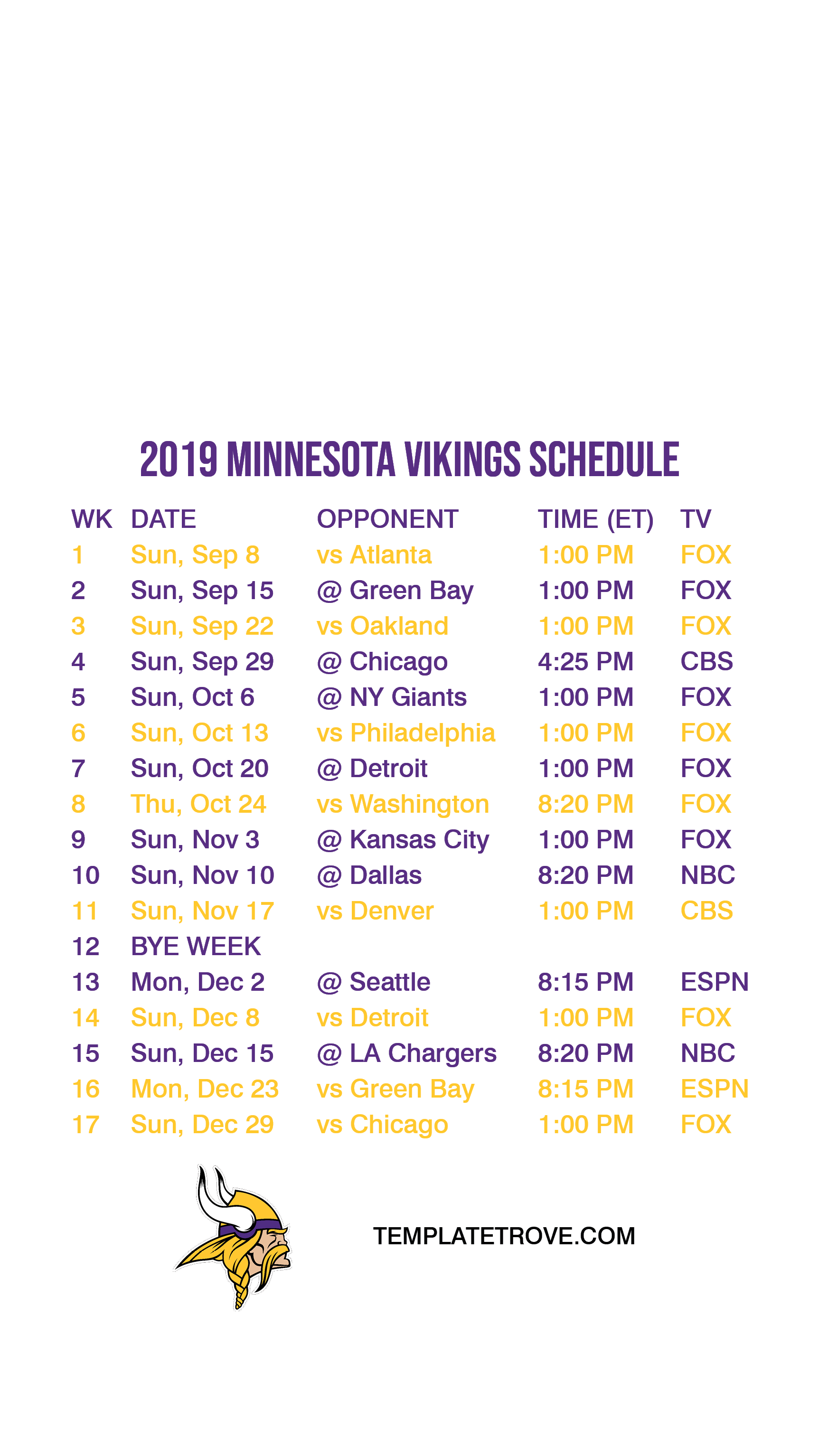 2019-20 Minnesota Vikings Lock Screen Schedule