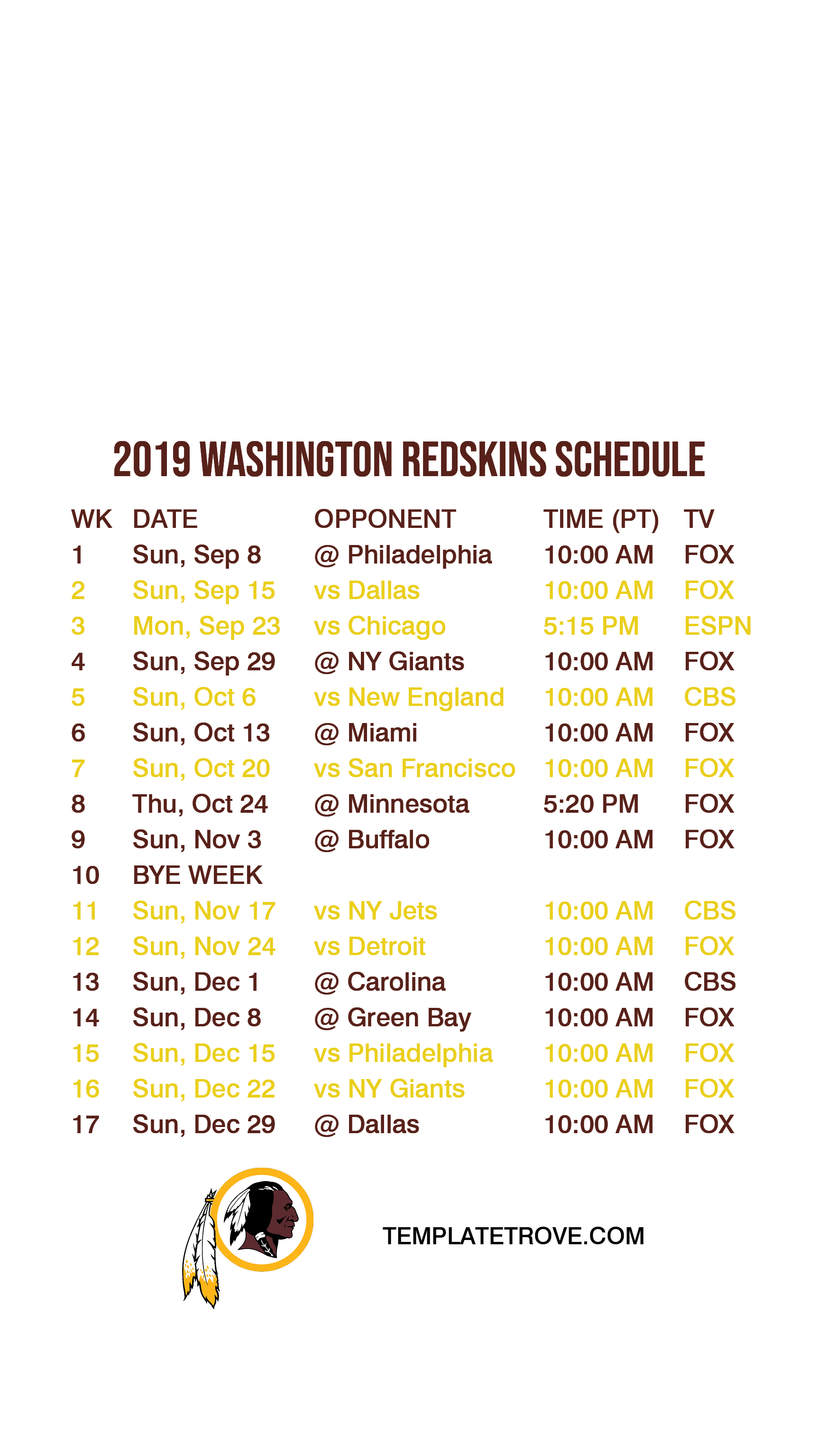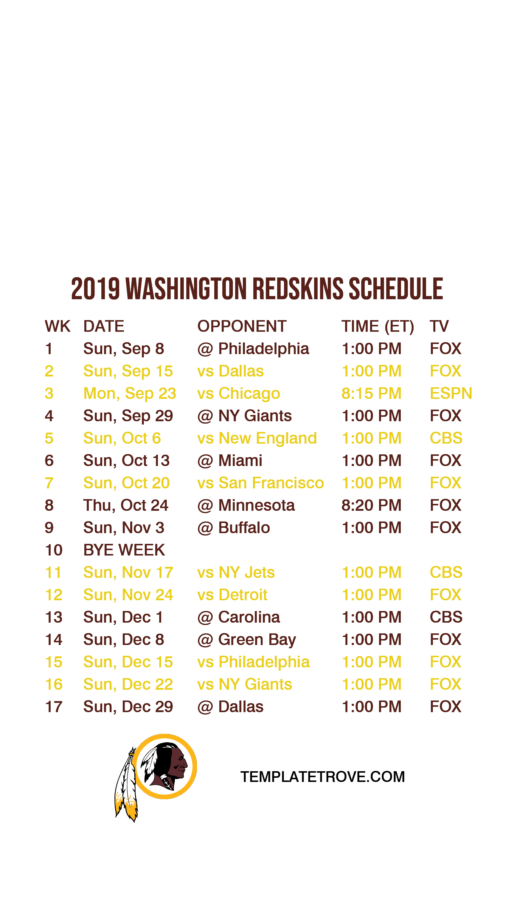 Redskins. With our iPhone 6, 7 and 8 Plus lock screen schedules and