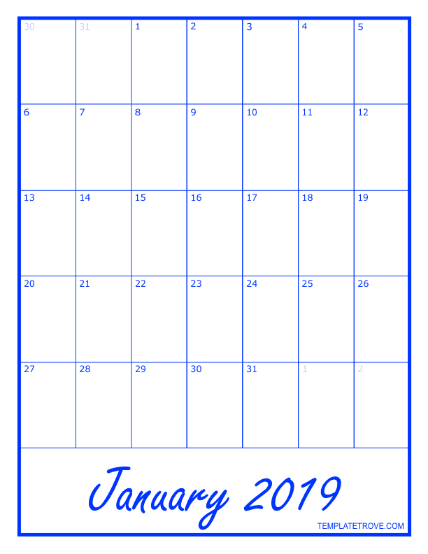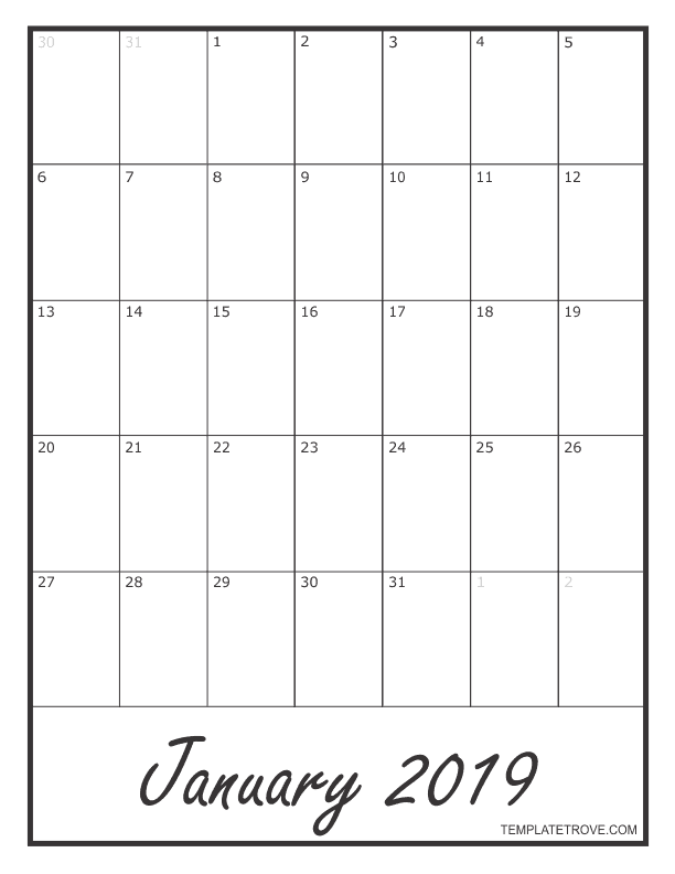 2019 Blank Monthly Calendar