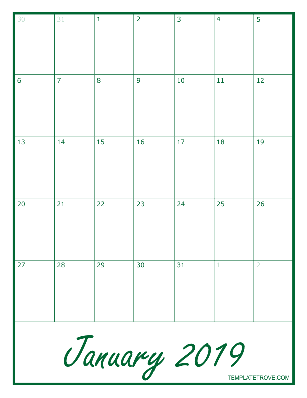 2019 Blank Monthly Calendar - Green