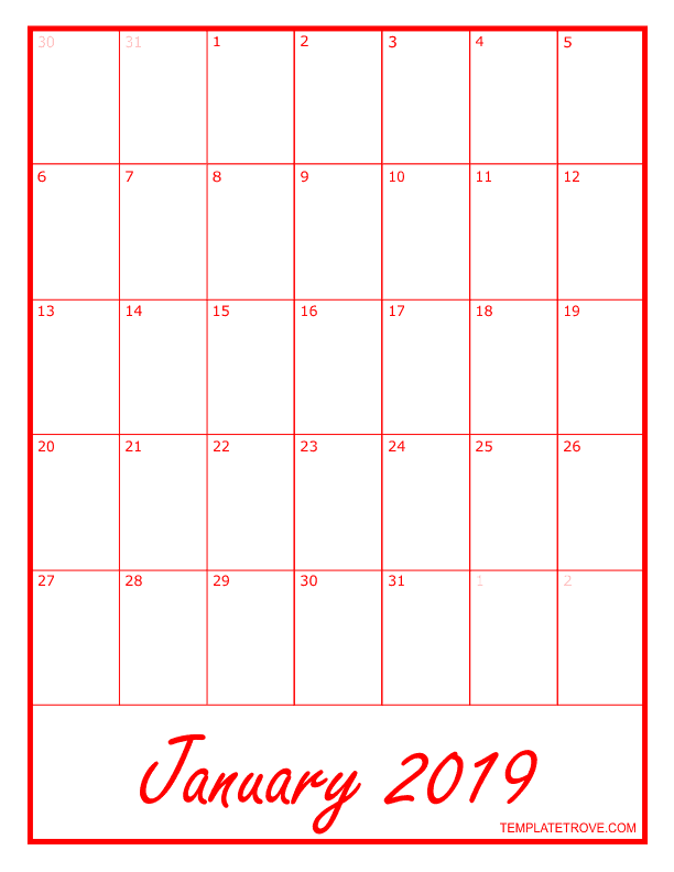 2019 Blank Monthly Calendar - Red