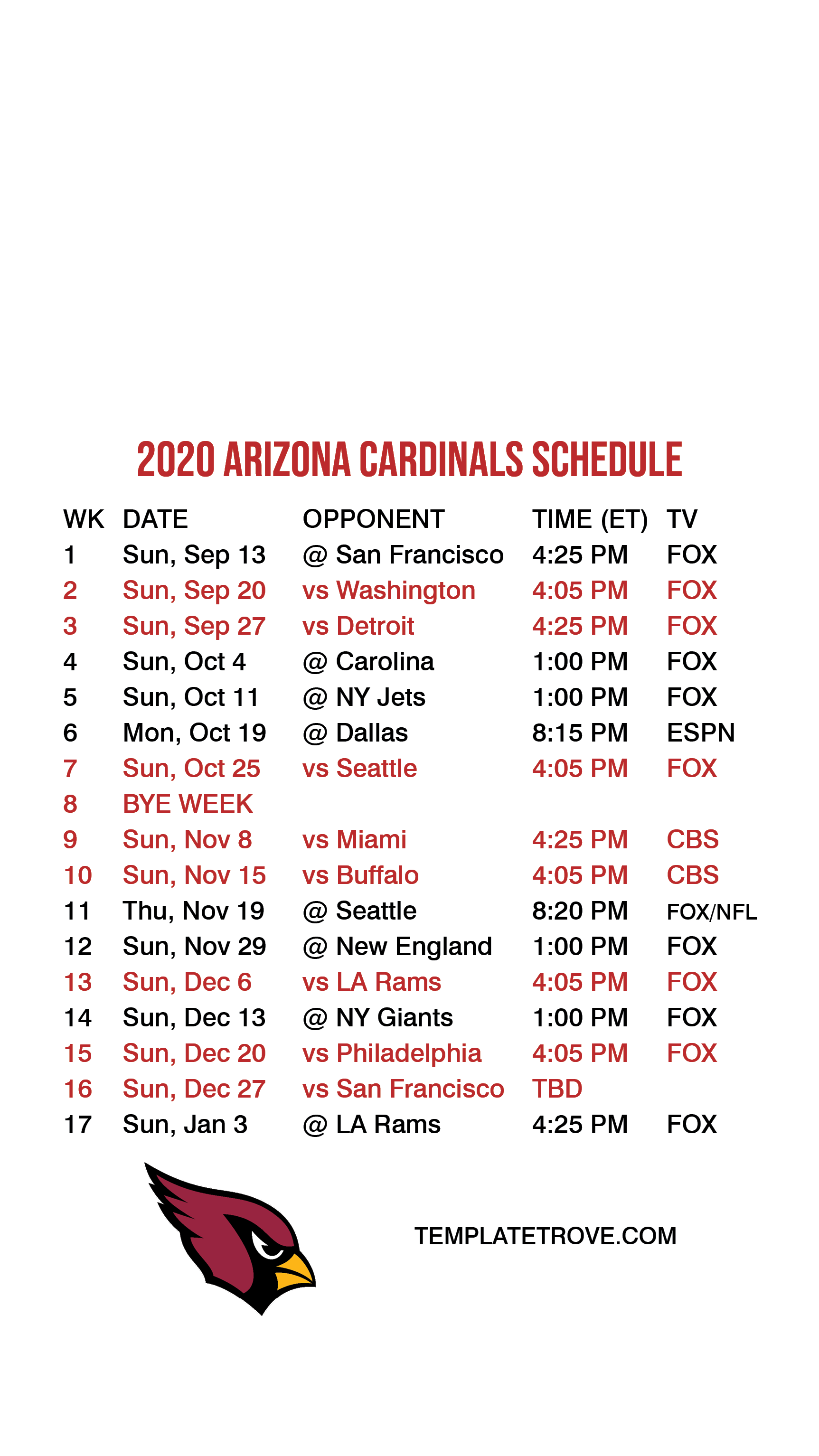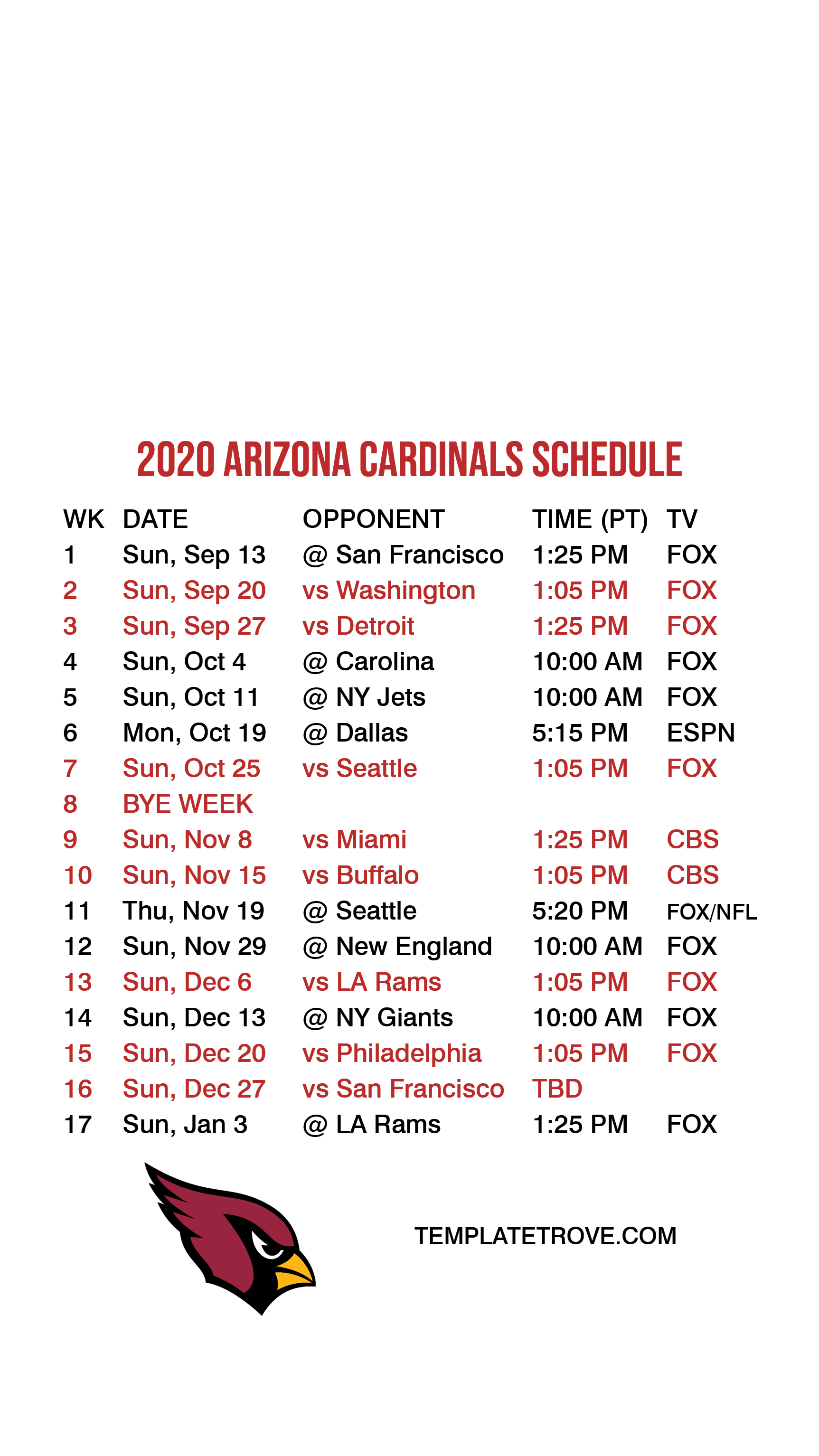 2020-21 Arizona Cardinals Lock Screen Schedule