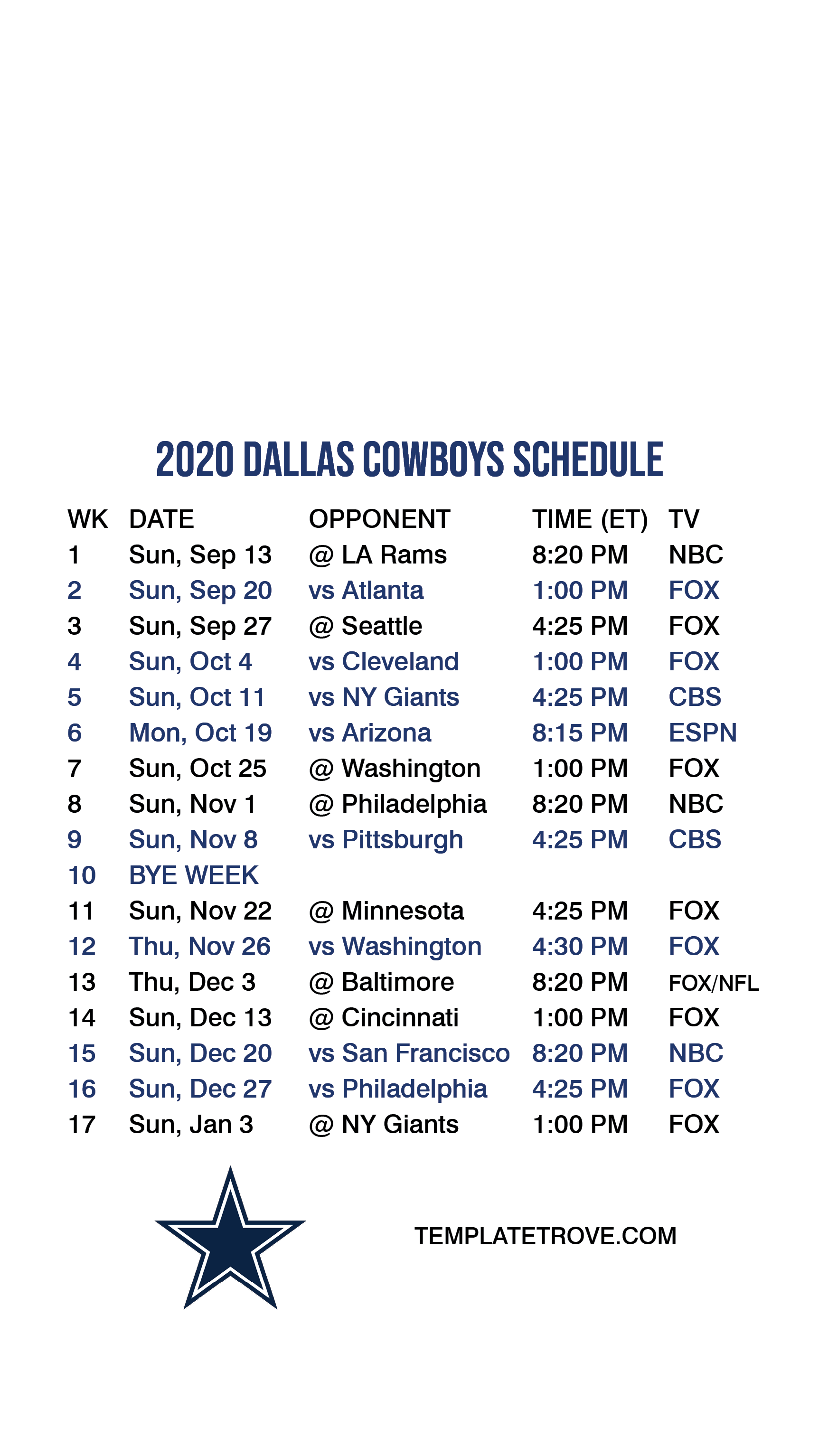 2020-21 Dallas Cowboys Lock Screen Schedule