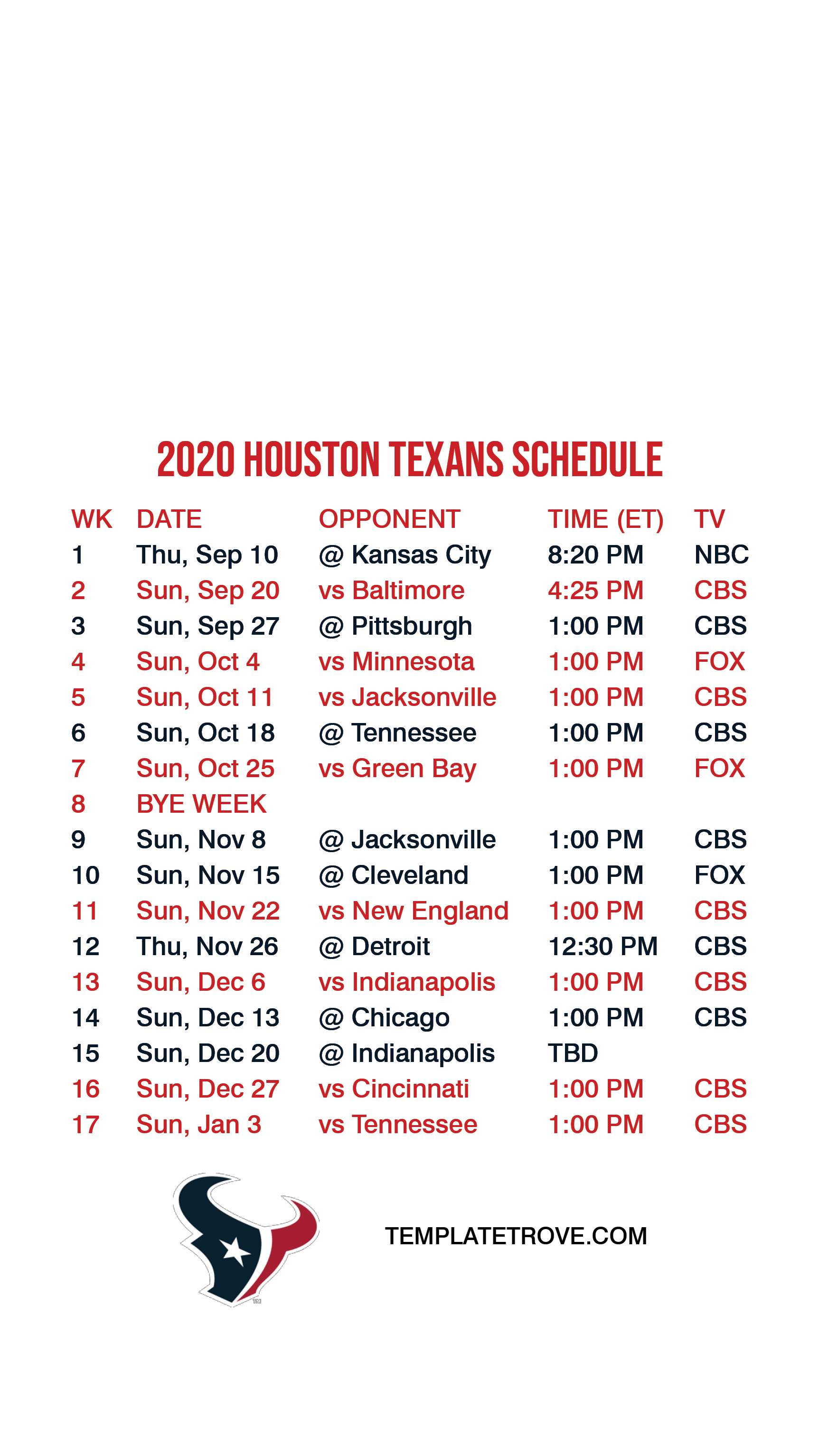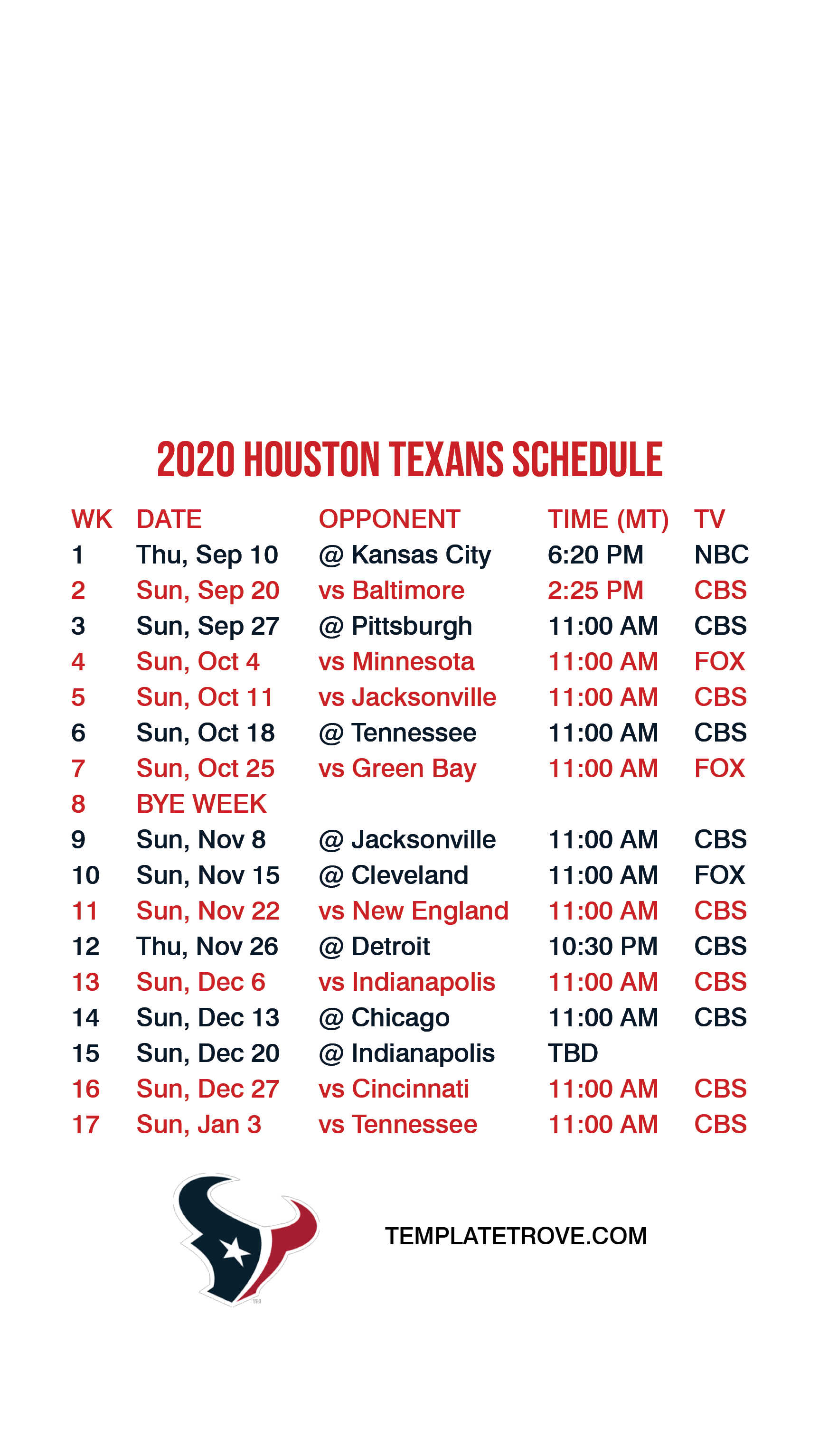 Texans. With our iPhone 6, 7 and 8 Plus lock screen schedules and