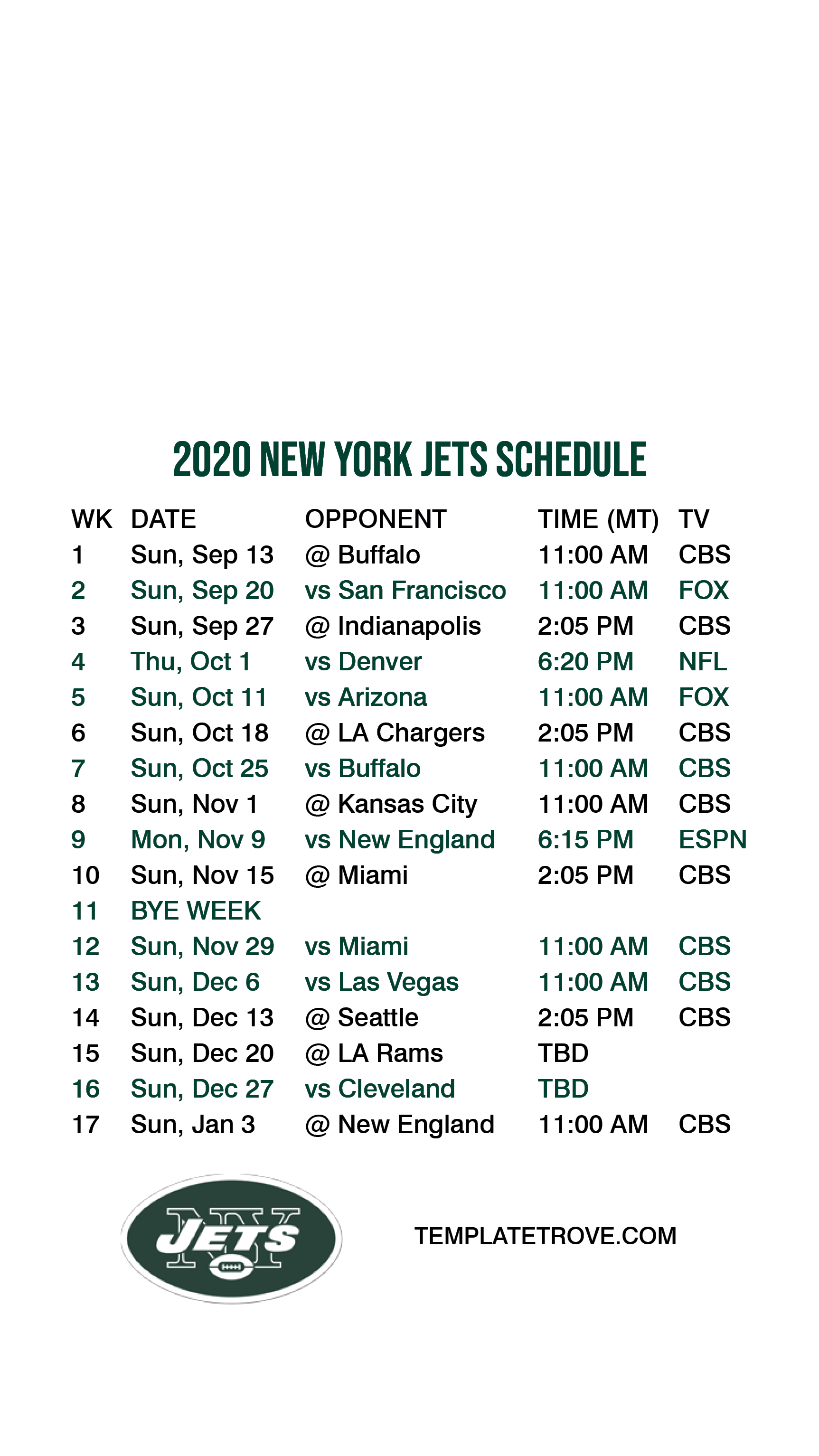 2020-21 New York Jets Lock Screen Schedule
