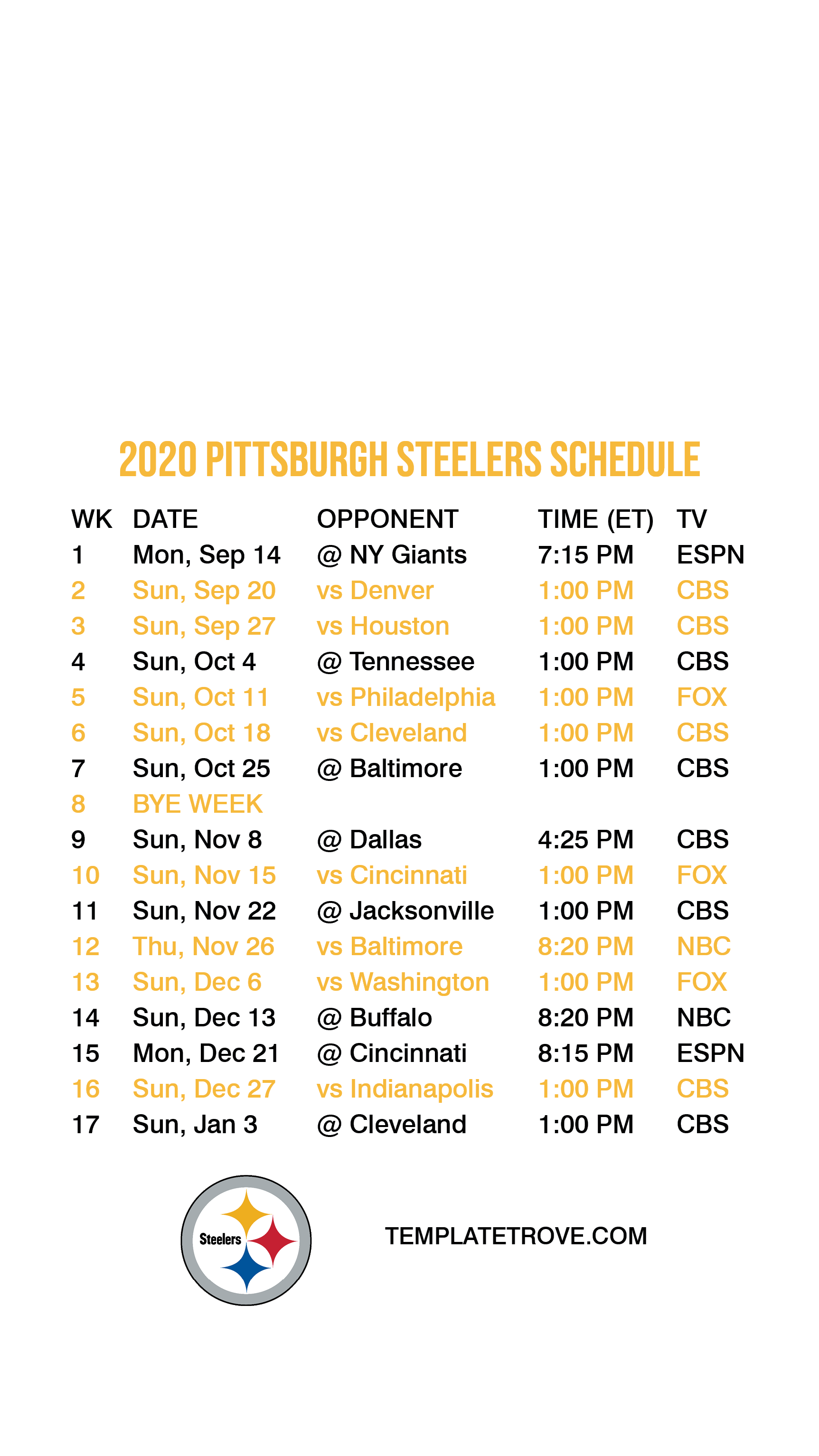 2020 Pittsburgh Steelers Lock Screen Schedule