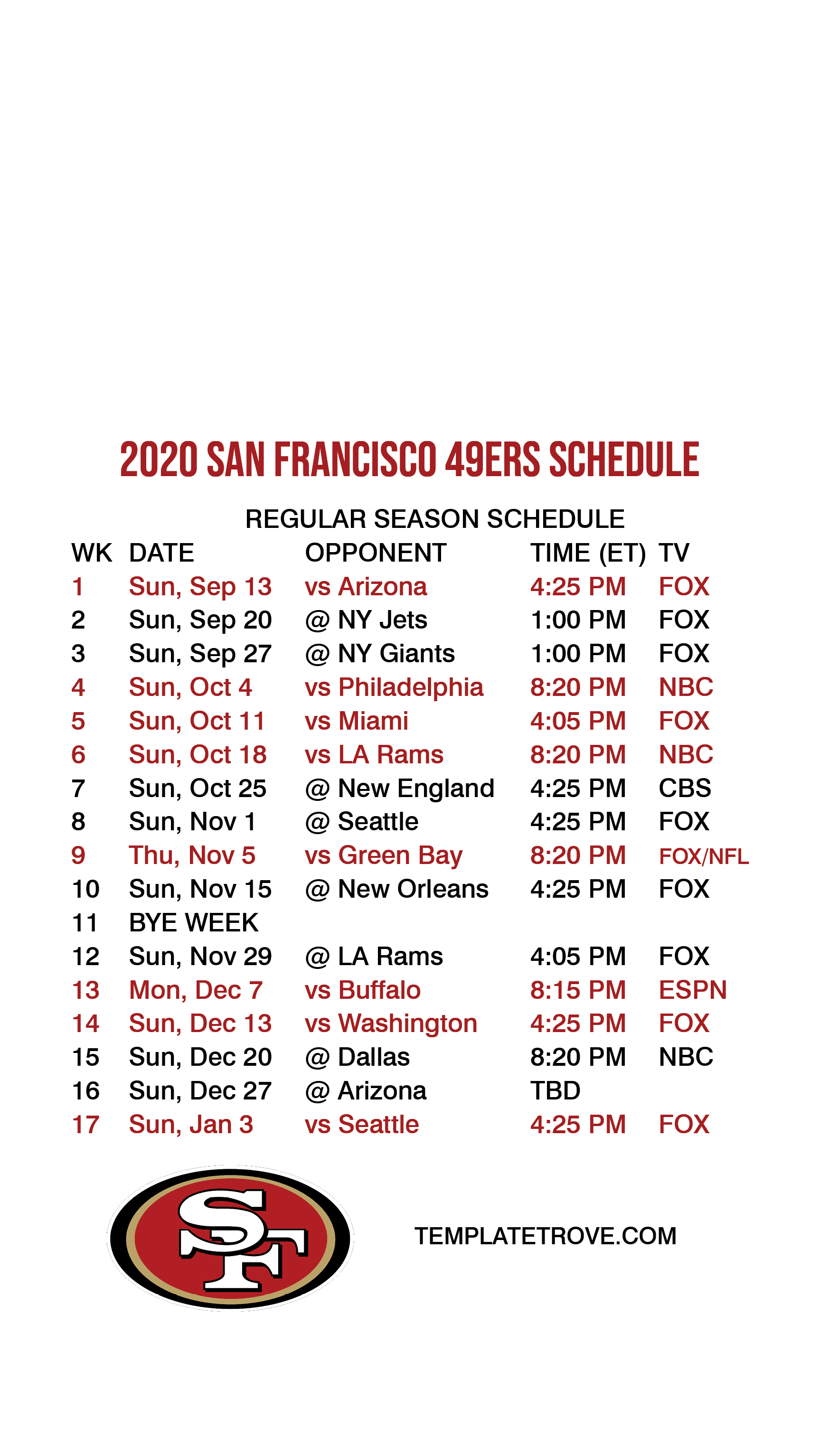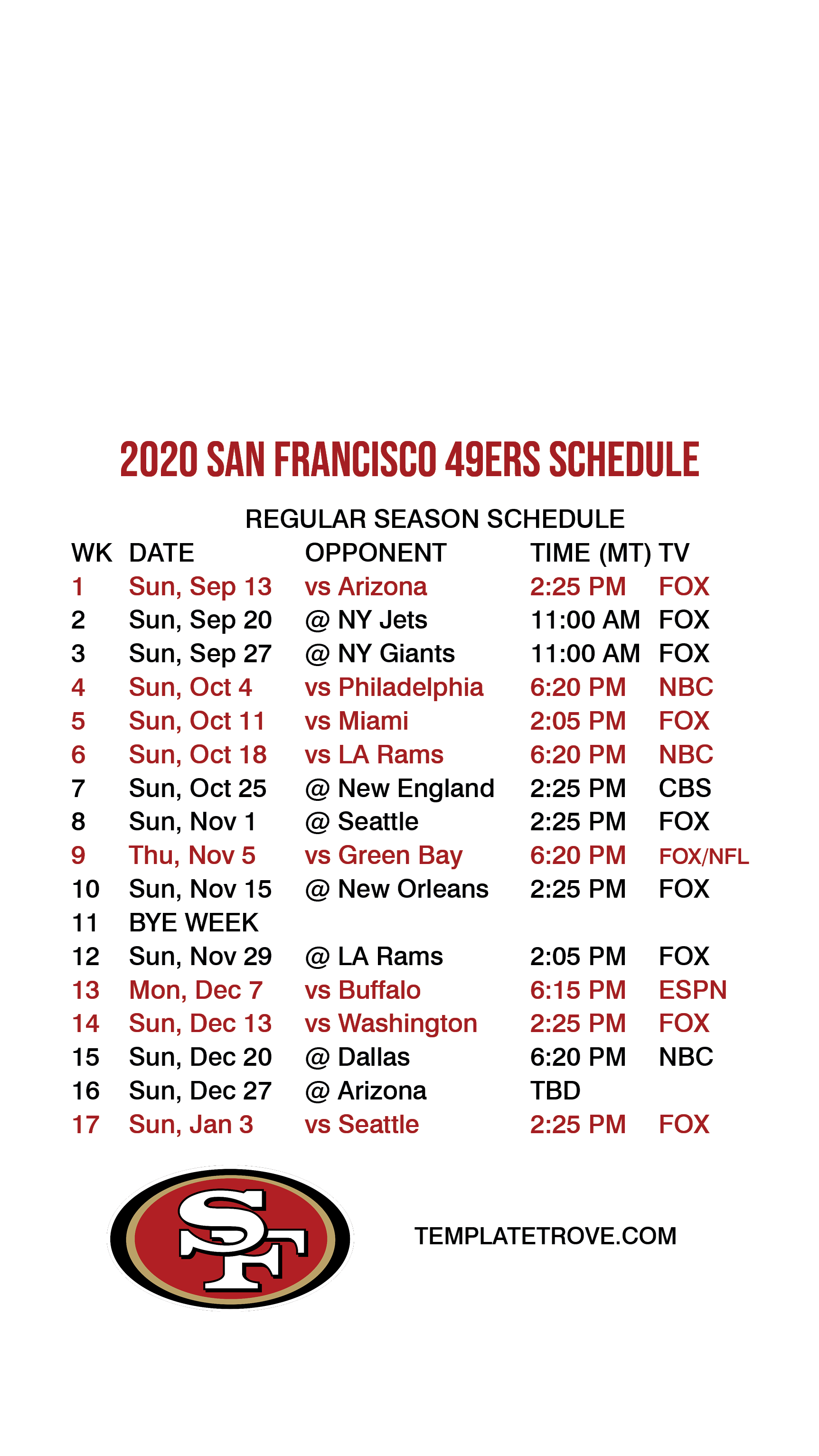 2020-21 San Francisco 49ers Lock Screen Schedule