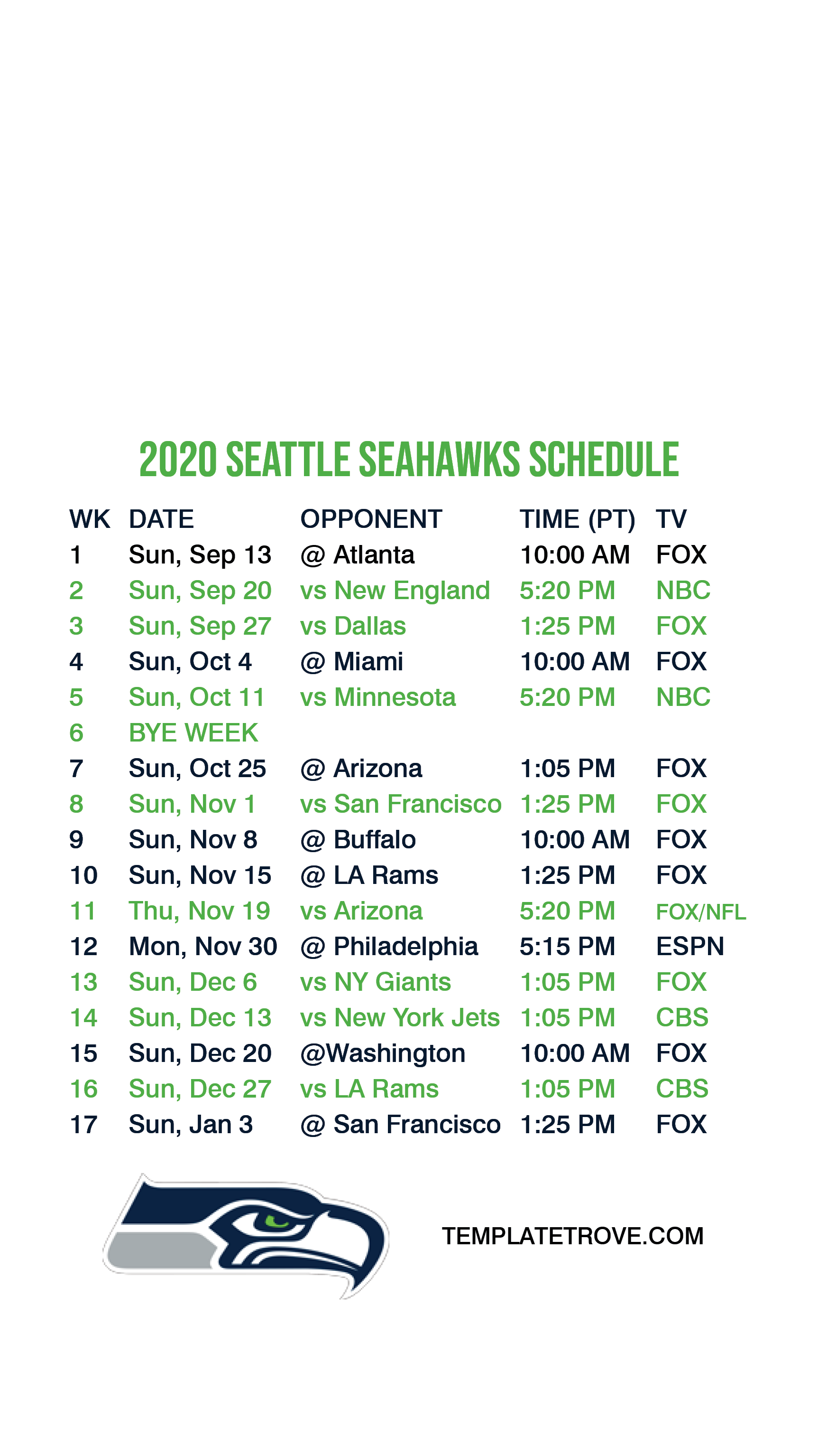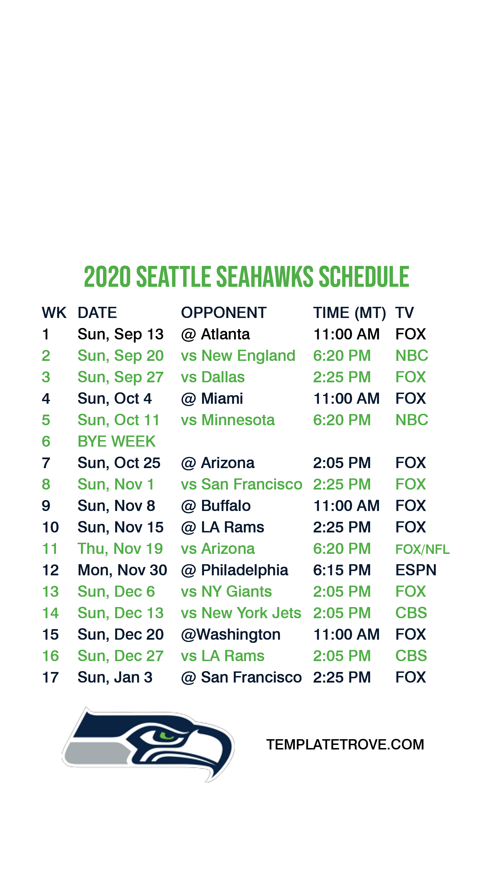 2020-21 Seattle Seahawks Lock Screen Schedule
