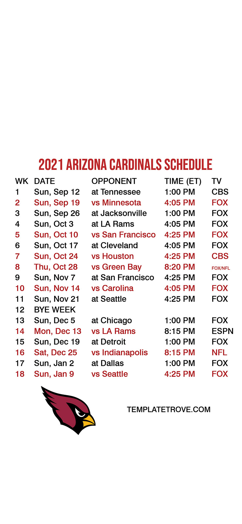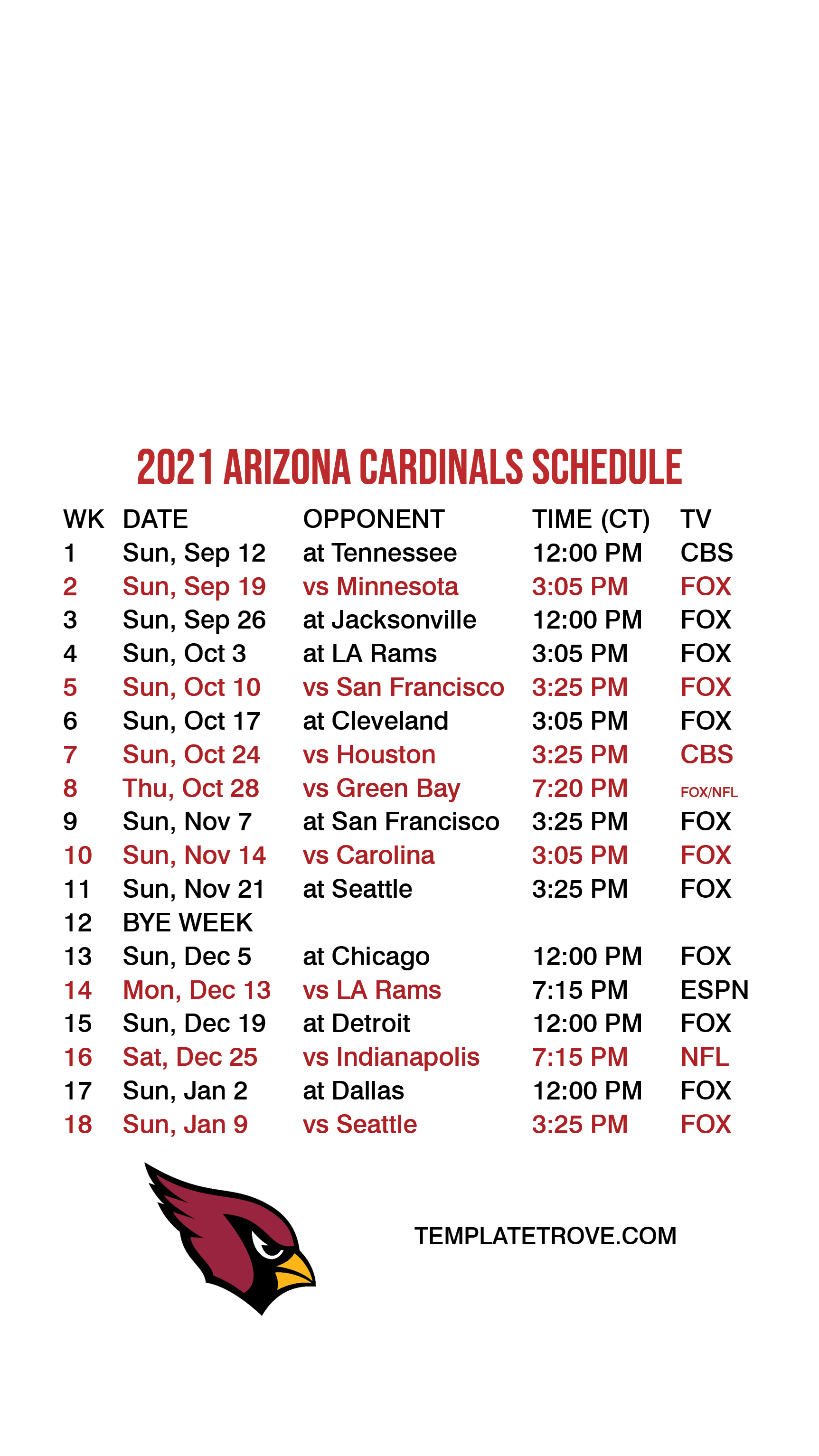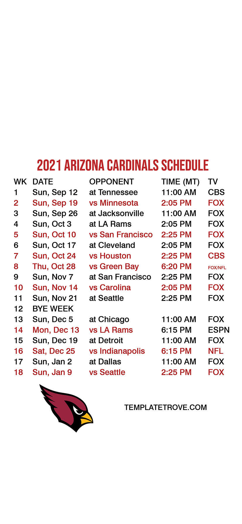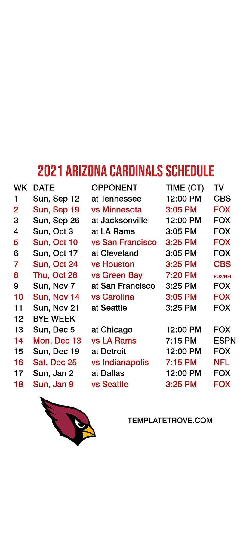 Arizona Cardinals Lock Screen Schedule for iPhone 6, 7, 8