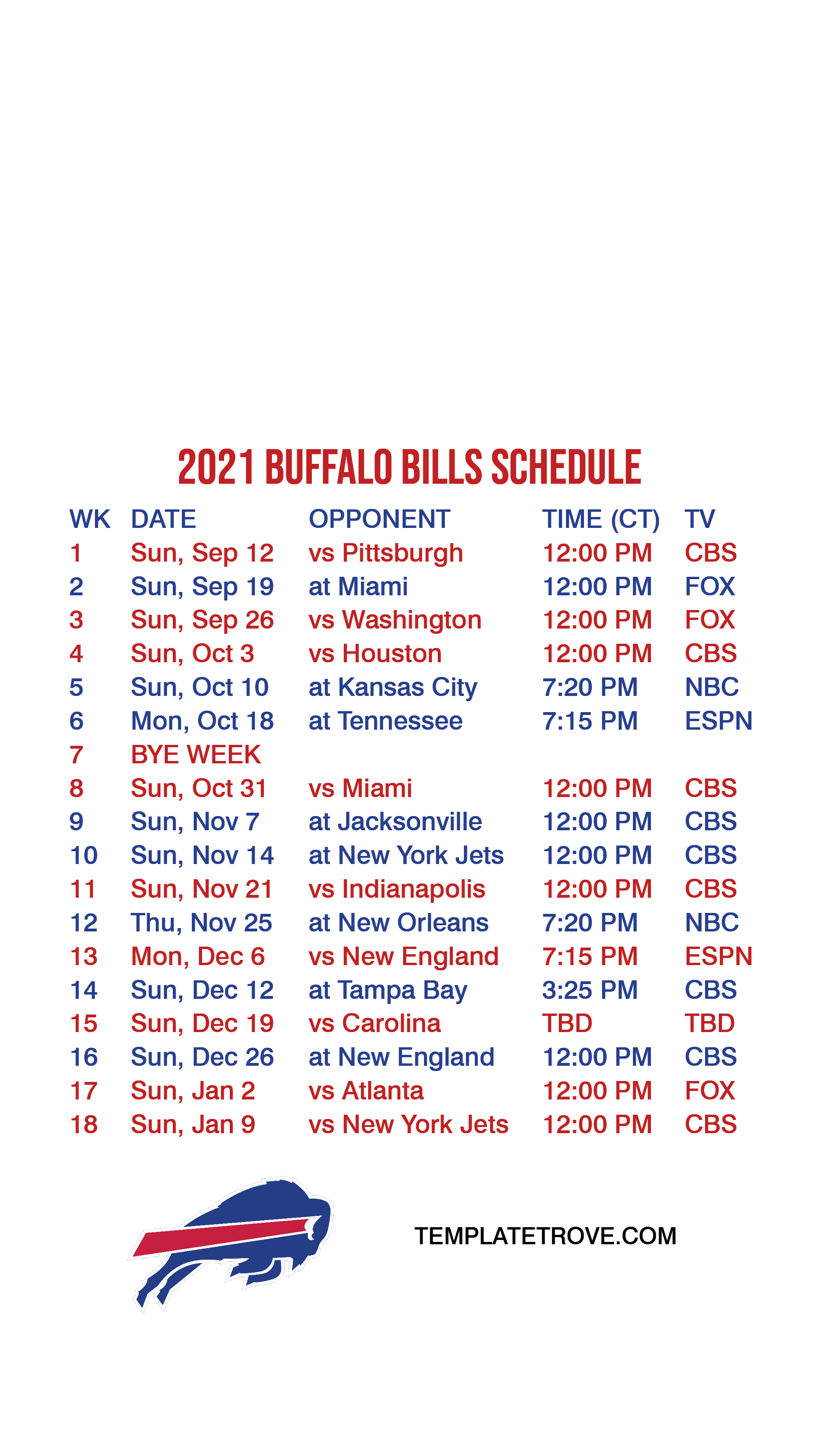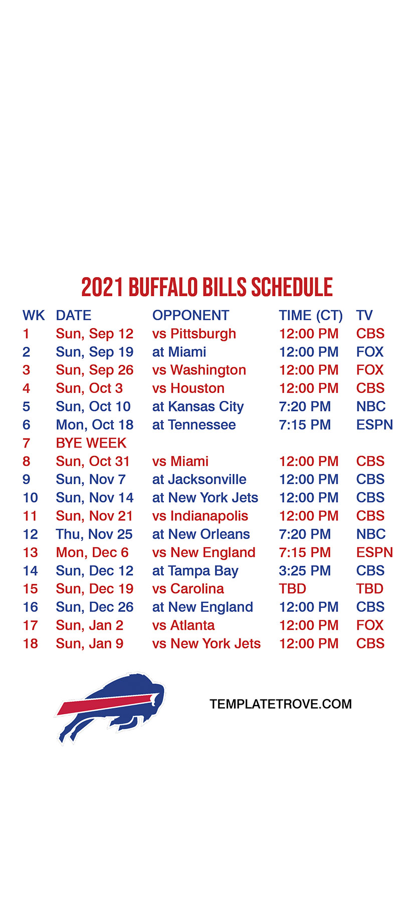 Buffalo Bills Lock Screen Schedule for iPhone 6, 7, 8 Plus