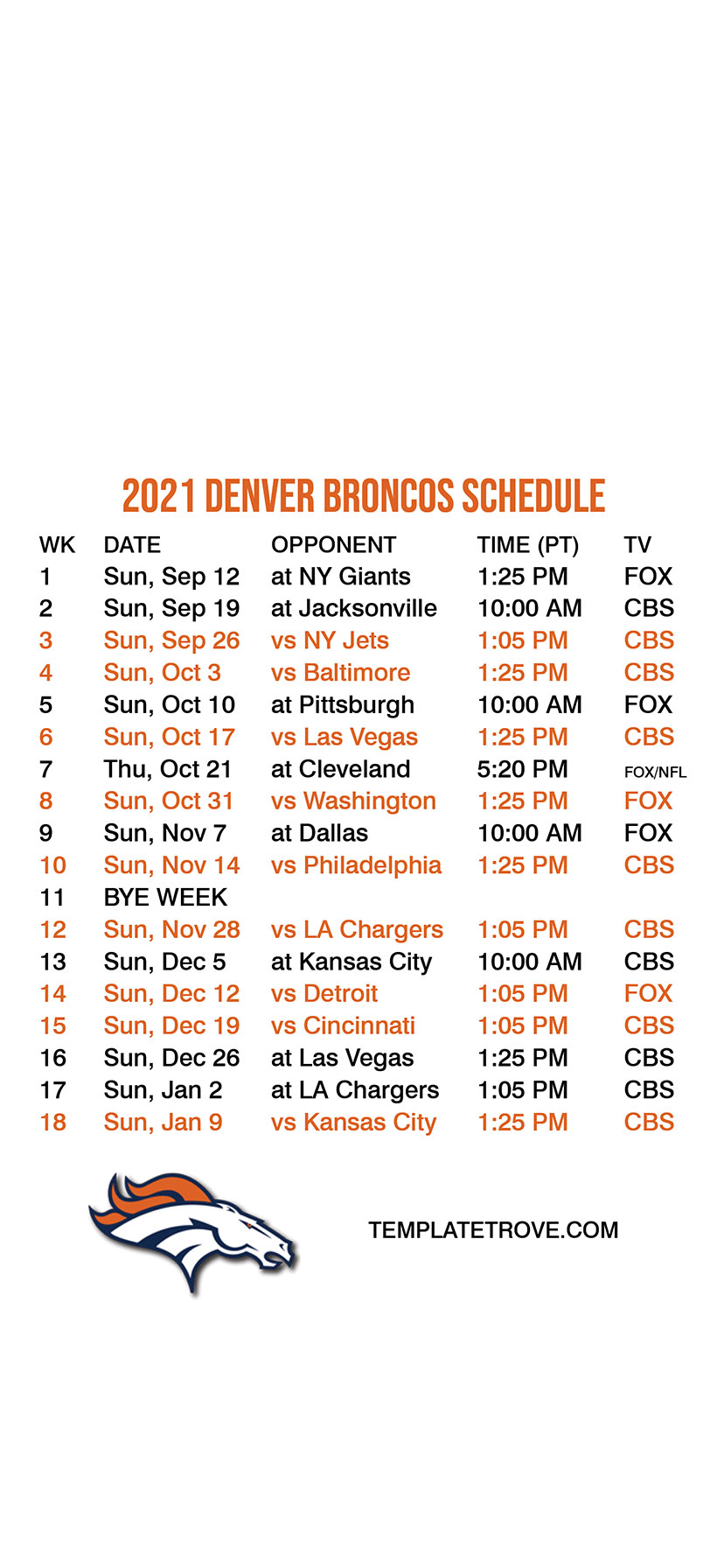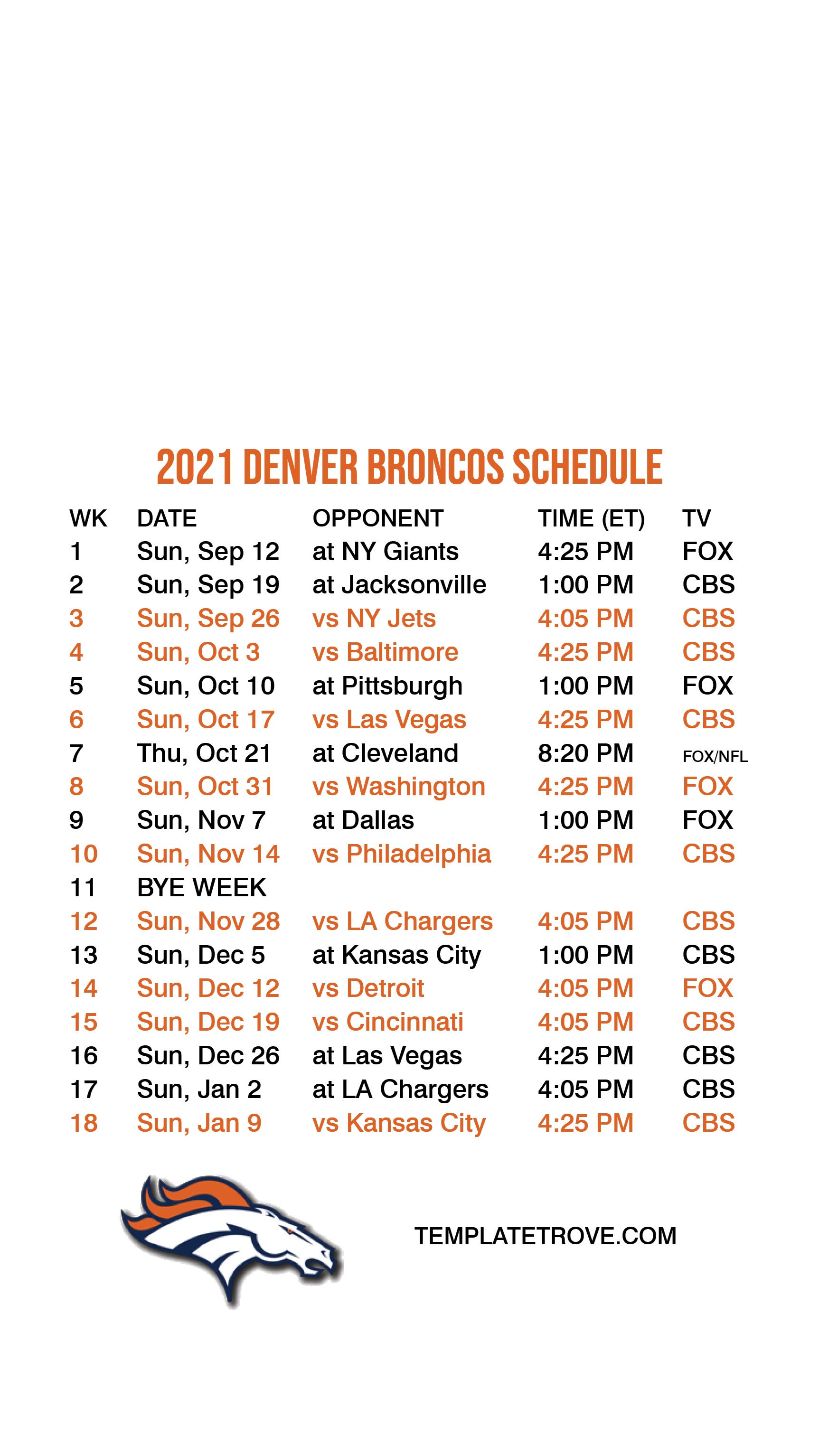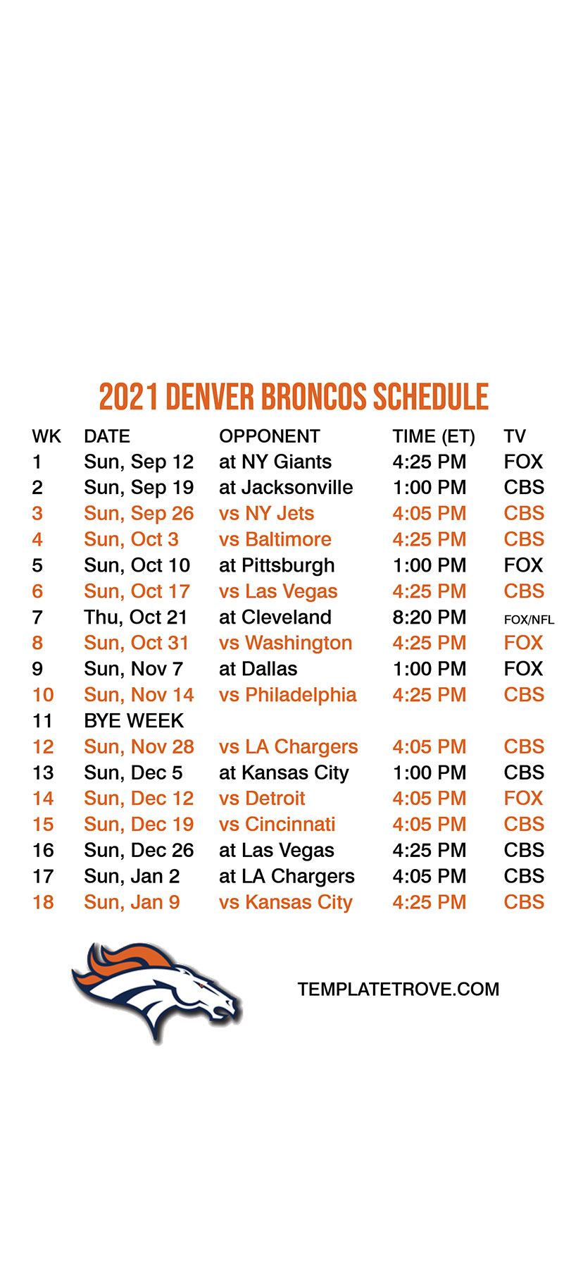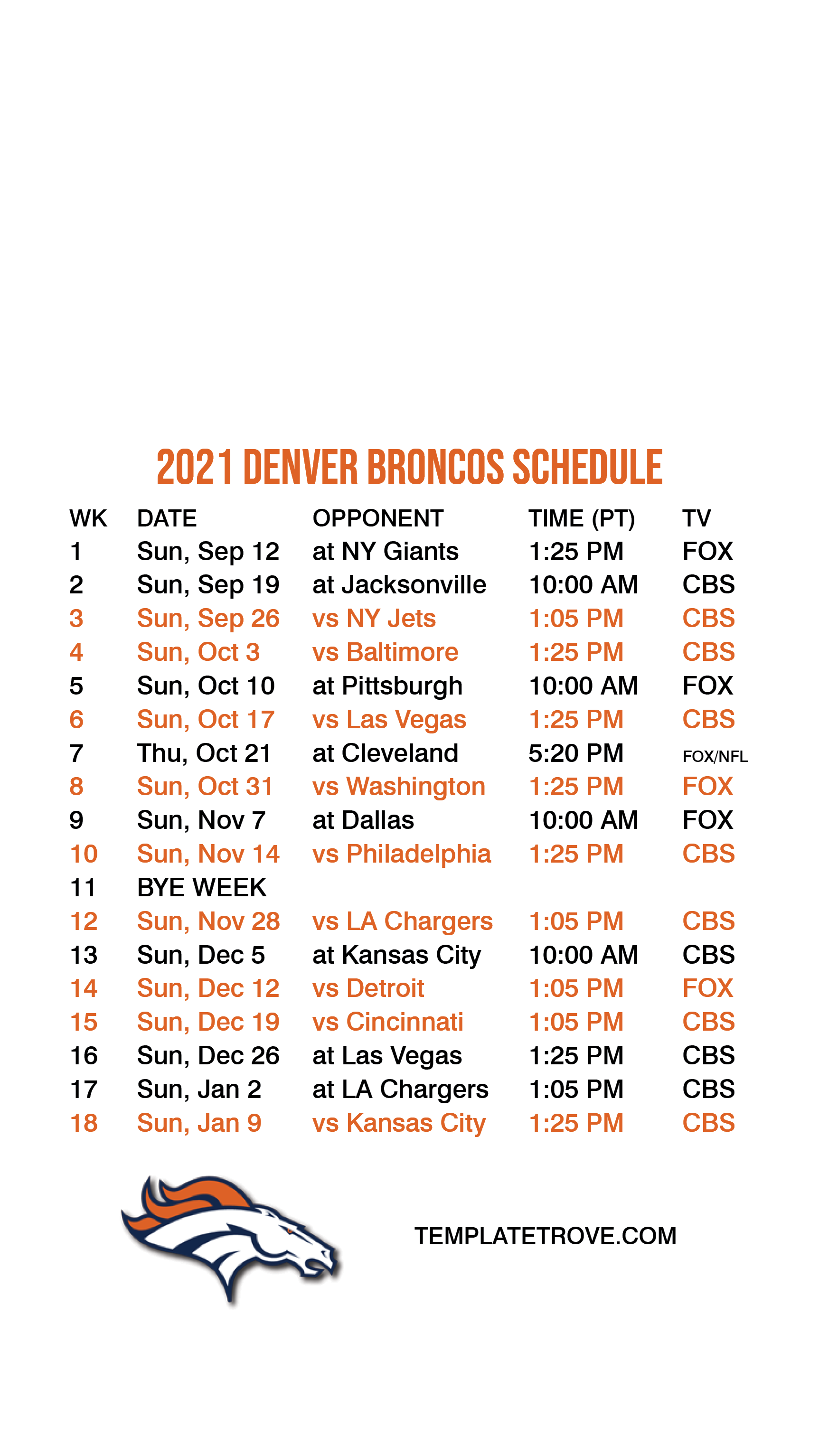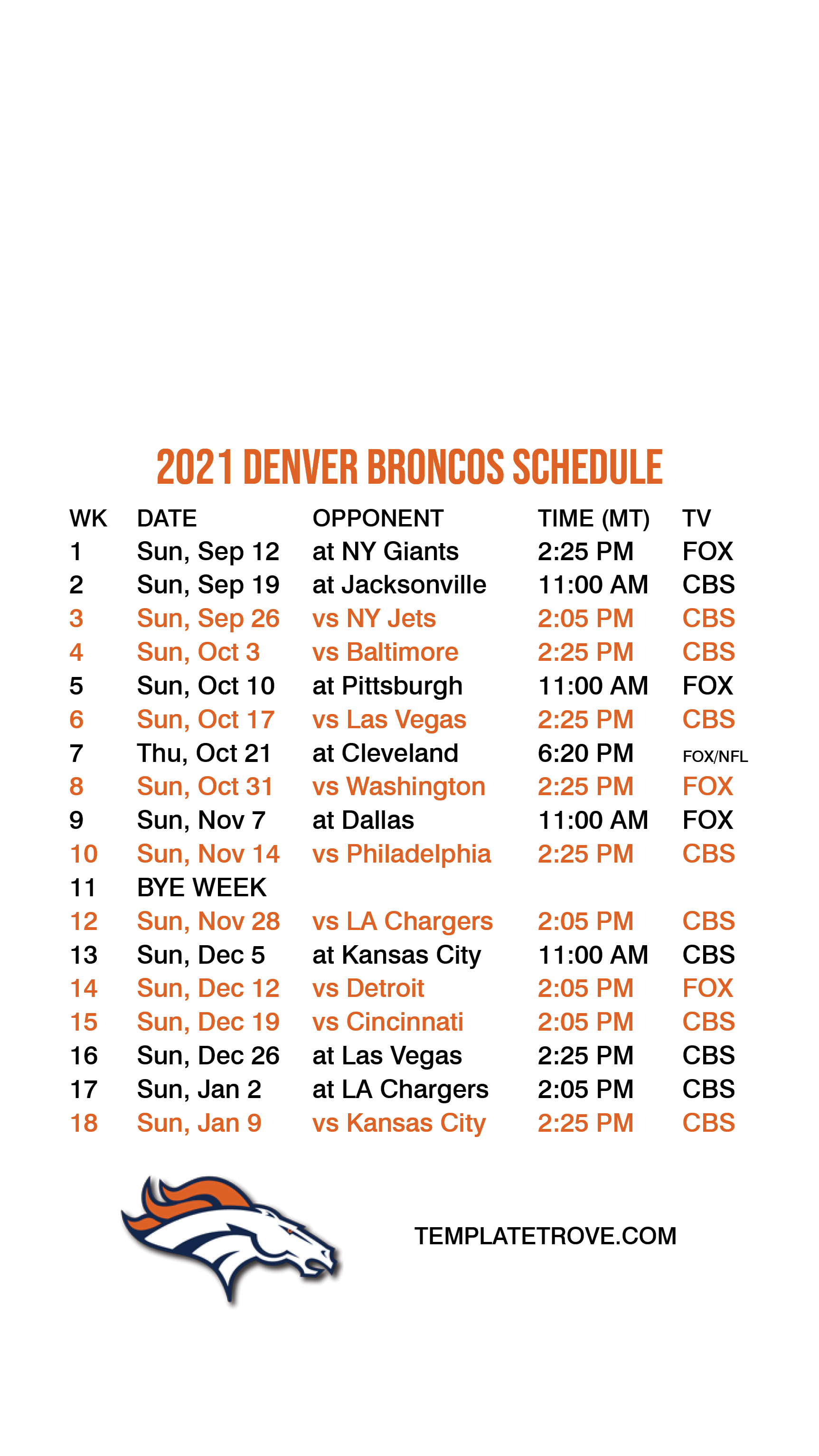 Denver Broncos Lock Screen Schedule for iPhone 6, 7, 8 Plus
