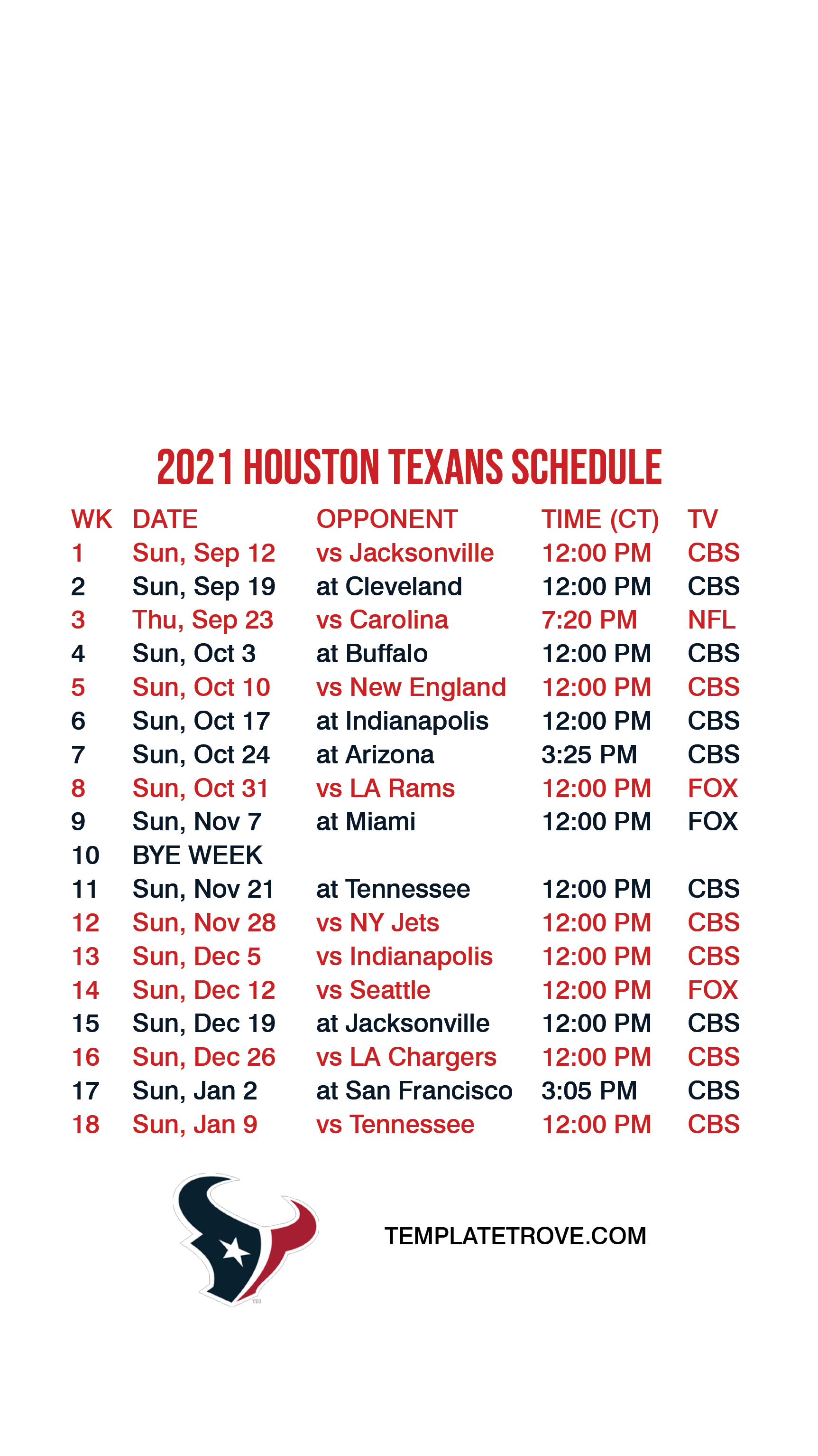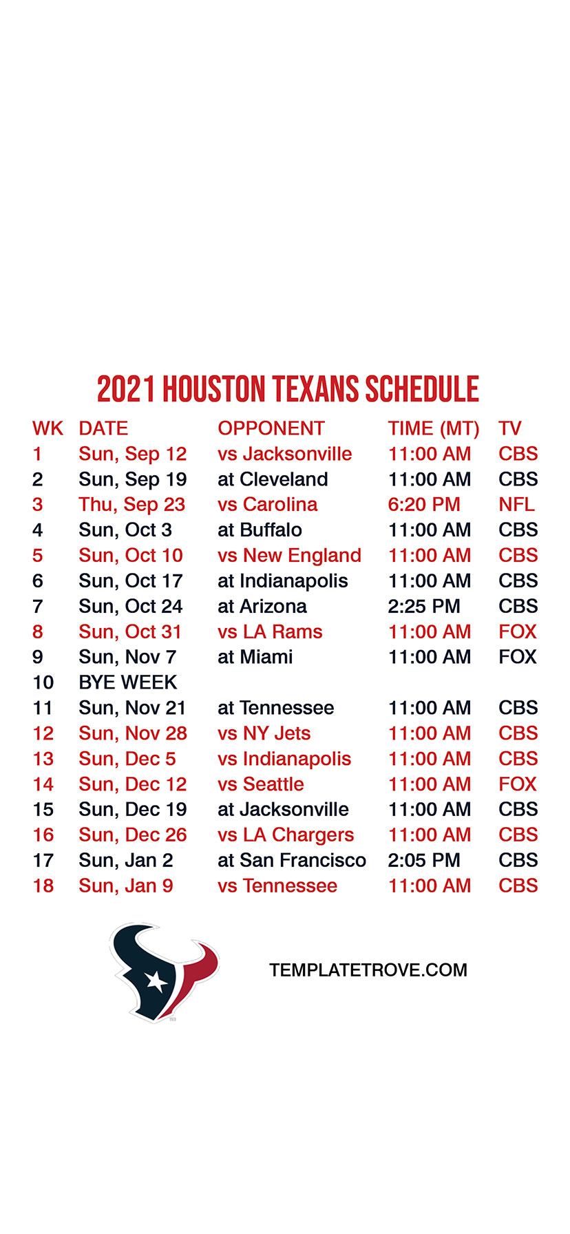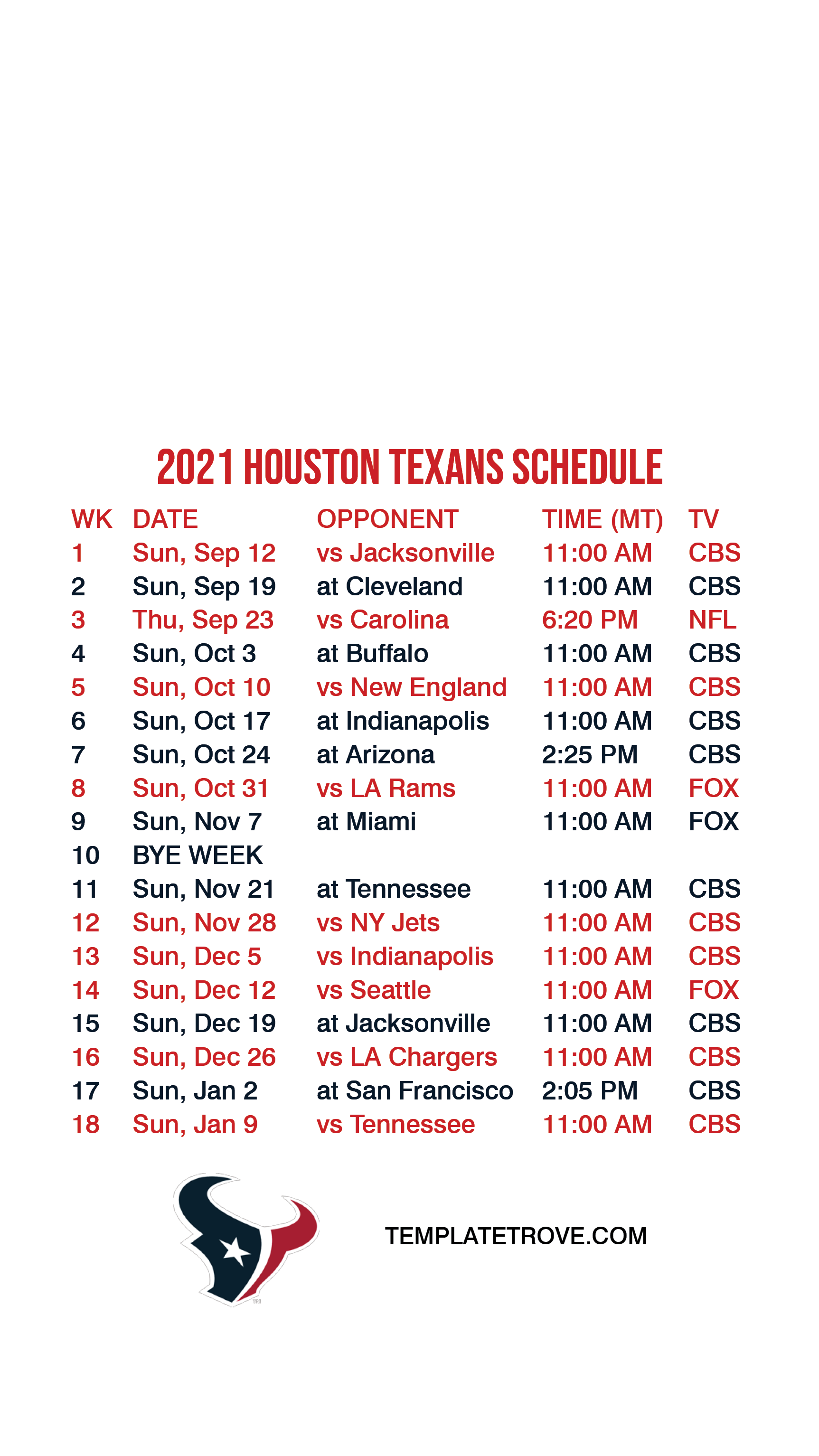 Houston Texans Lock Screen Schedule for iPhone 6, 7, 8 Plus