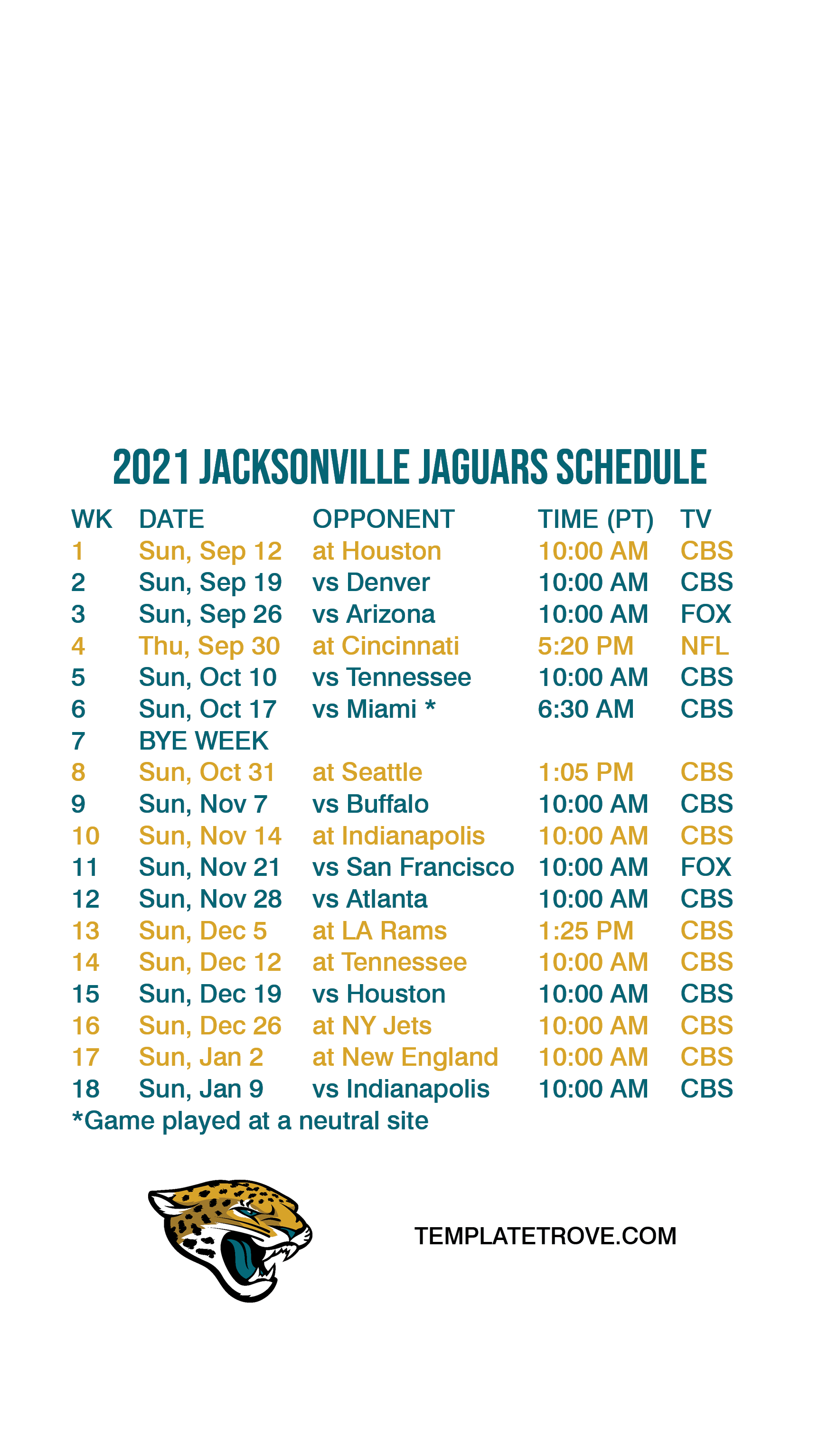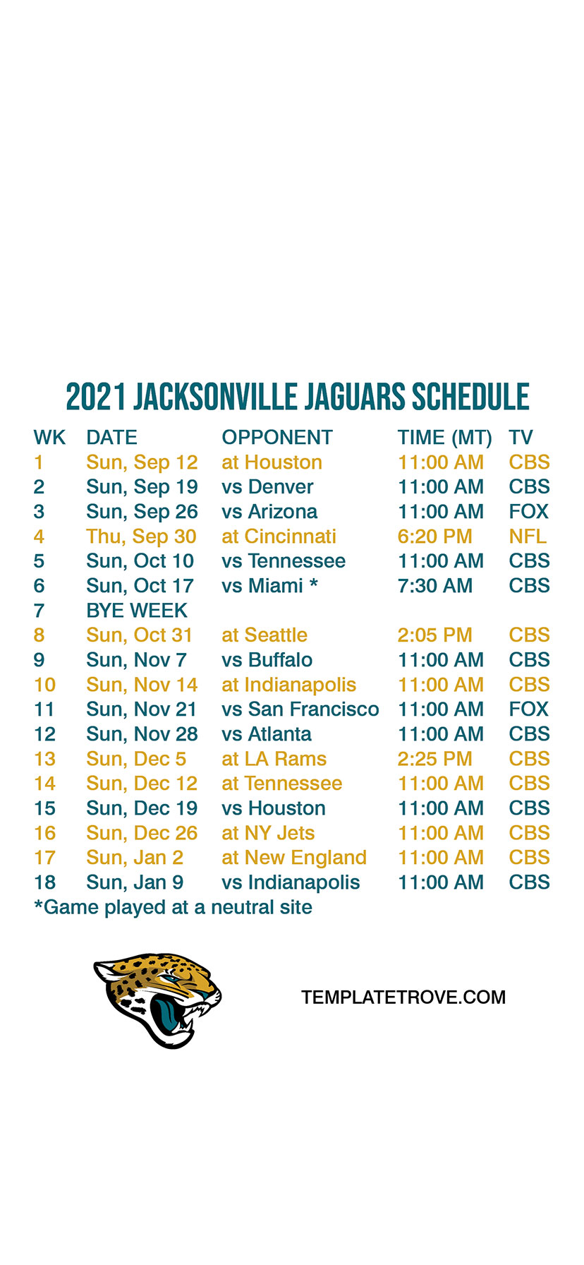 2021 Jacksonville Jaguars Lock Screen Schedule
