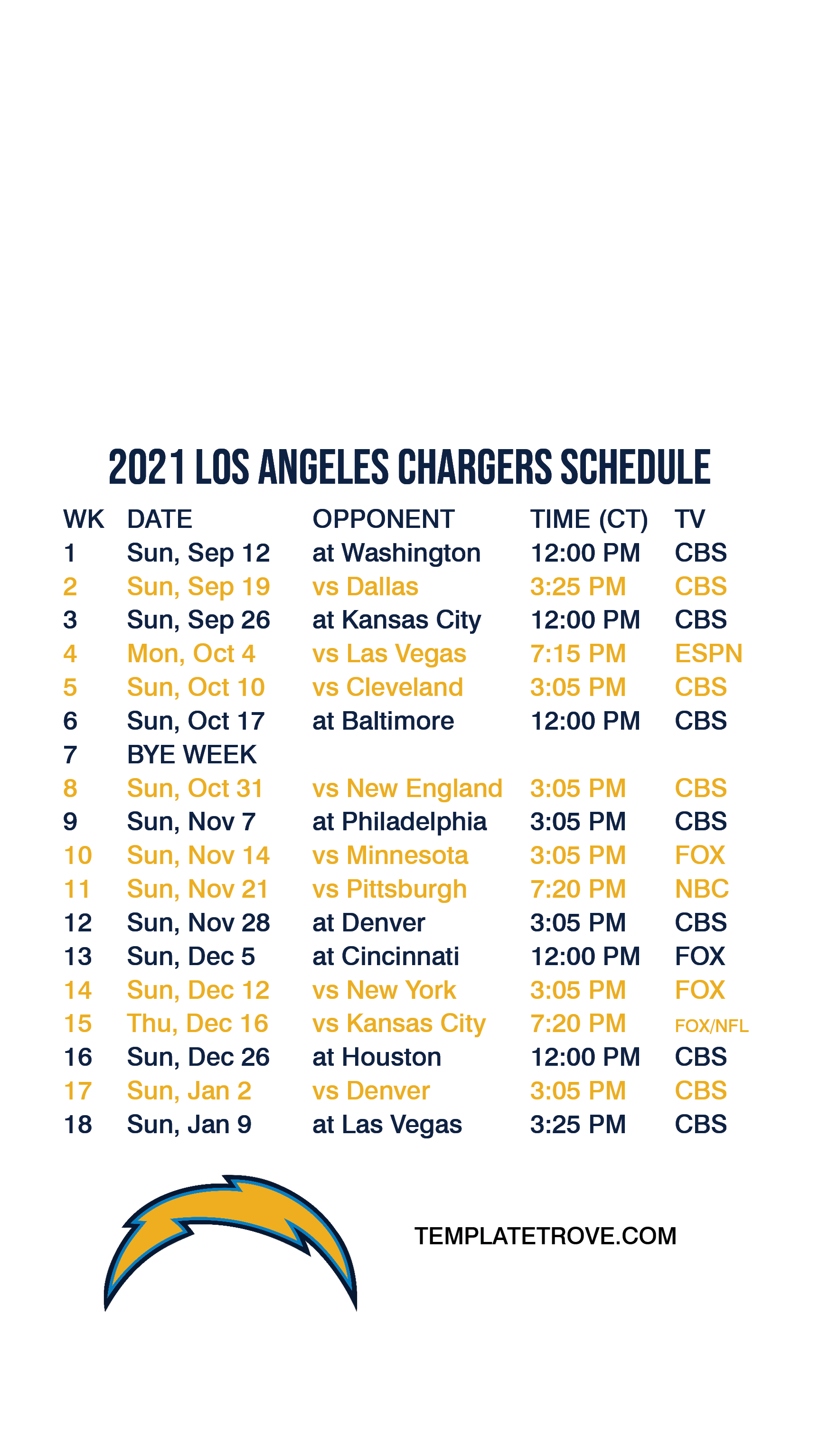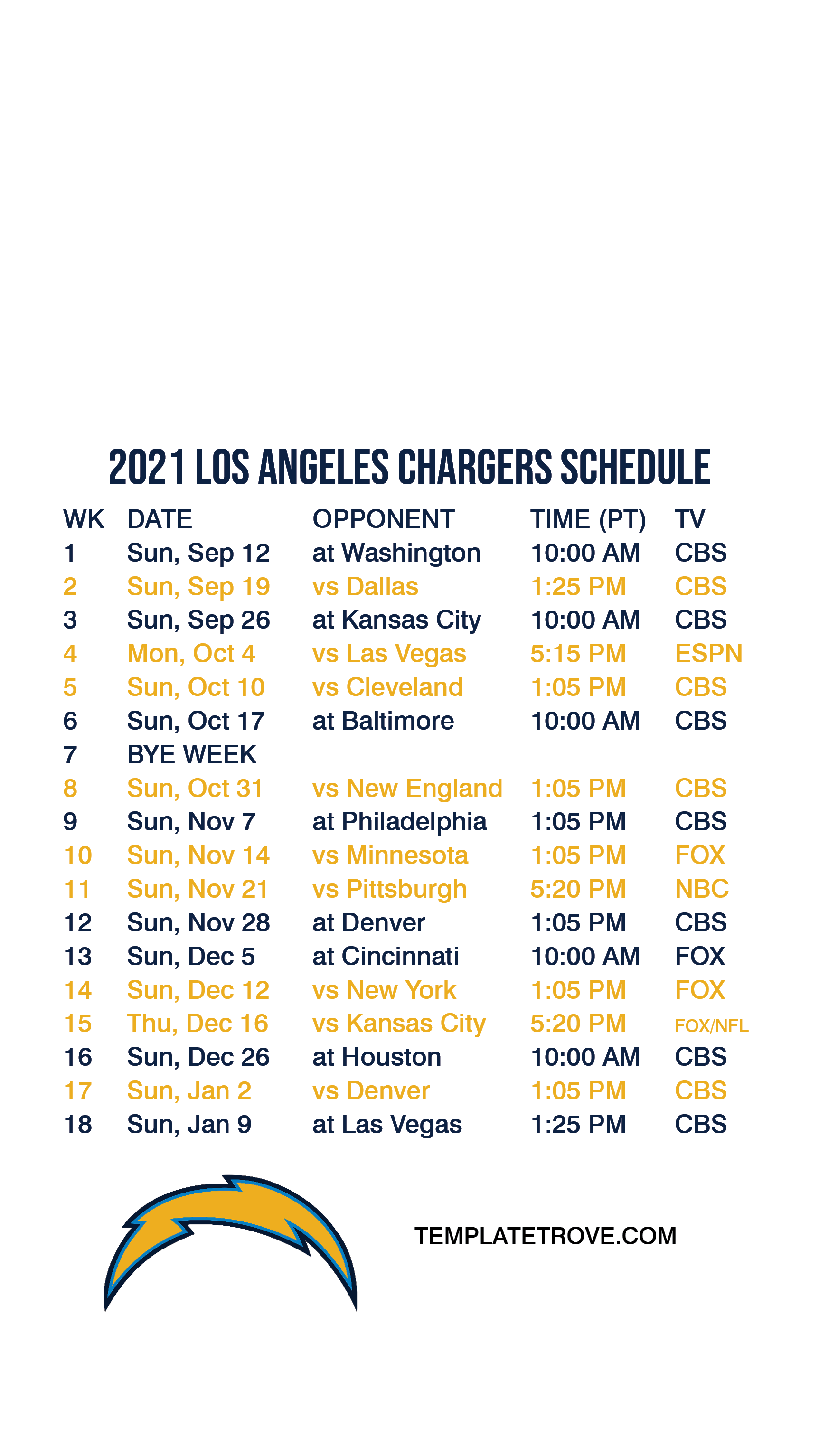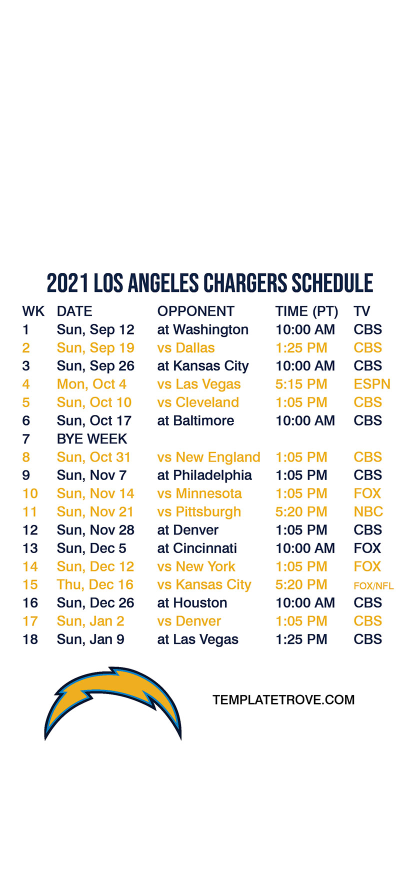 2021-22 Los Angeles Chargers Lock Screen Schedule