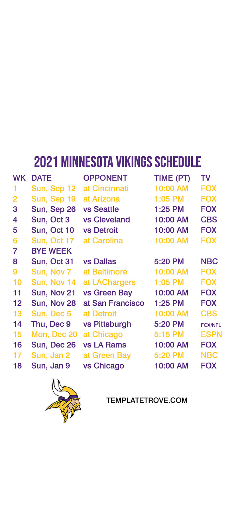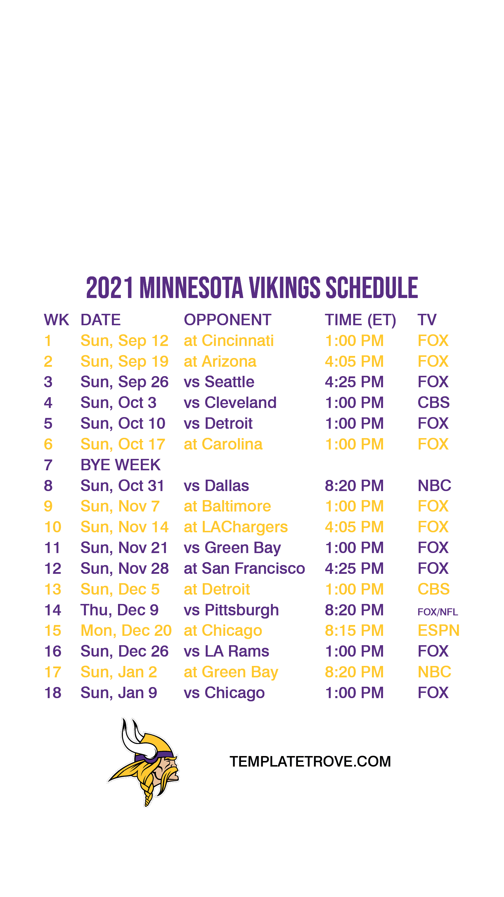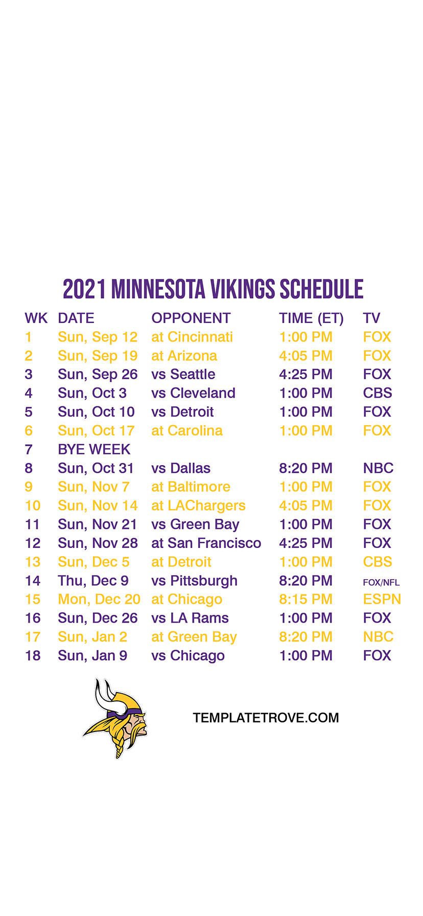 2021-22 Minnesota Vikings Lock Screen Schedule