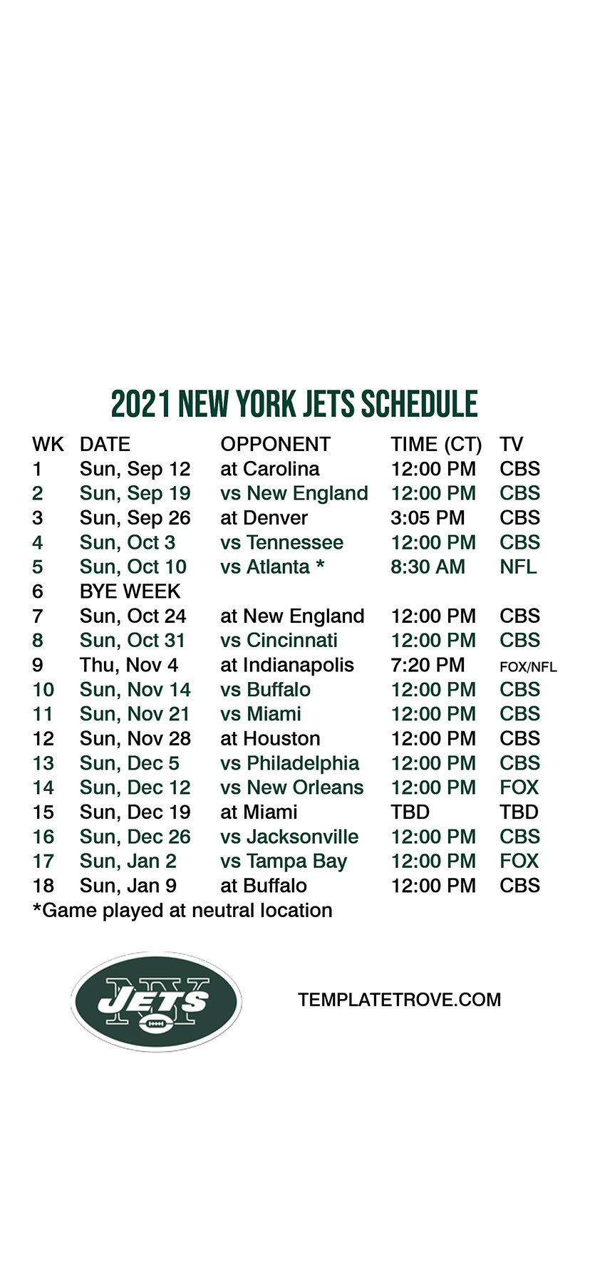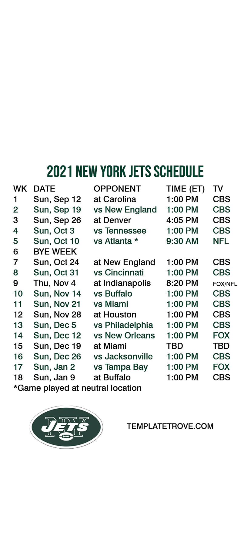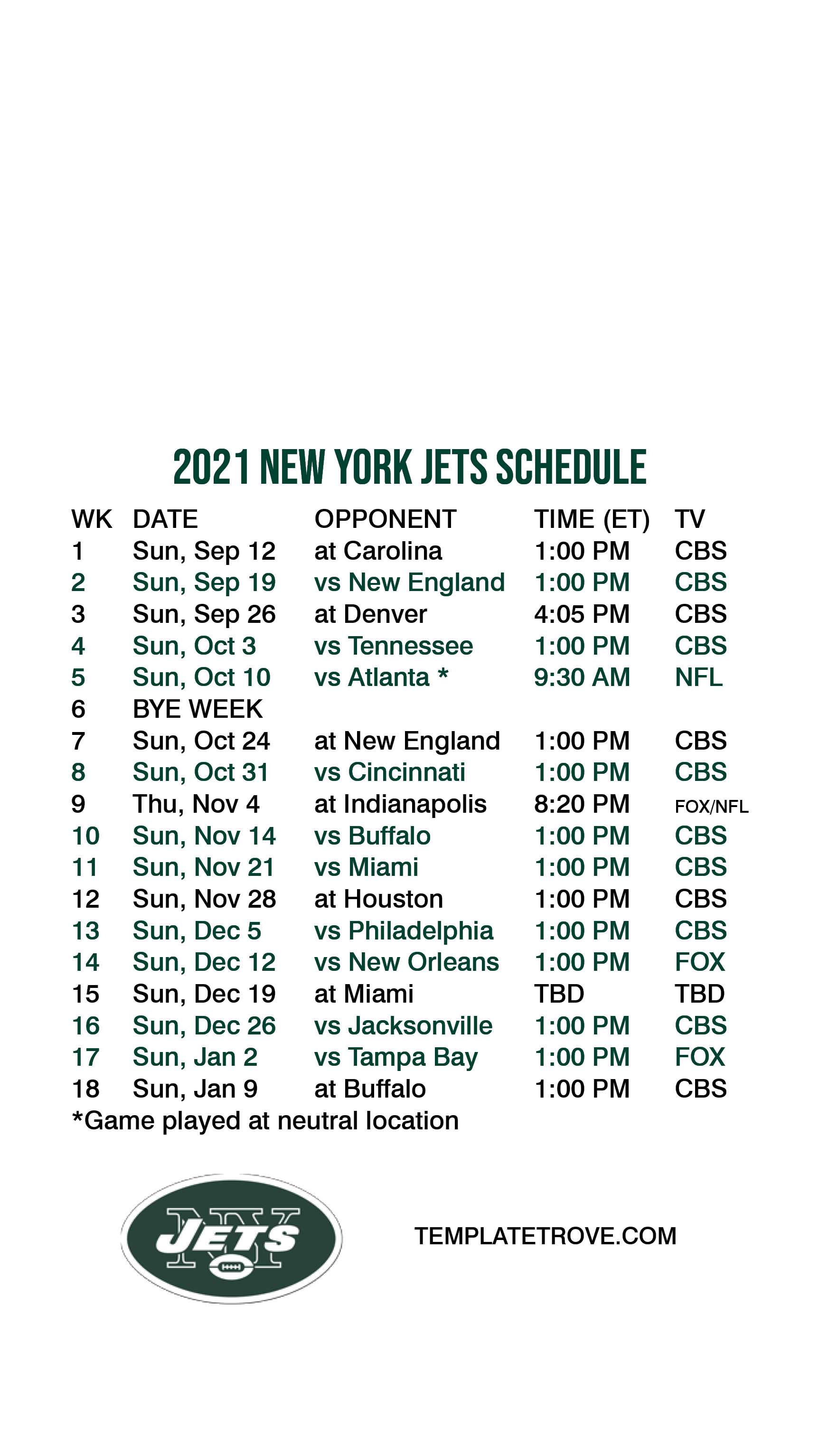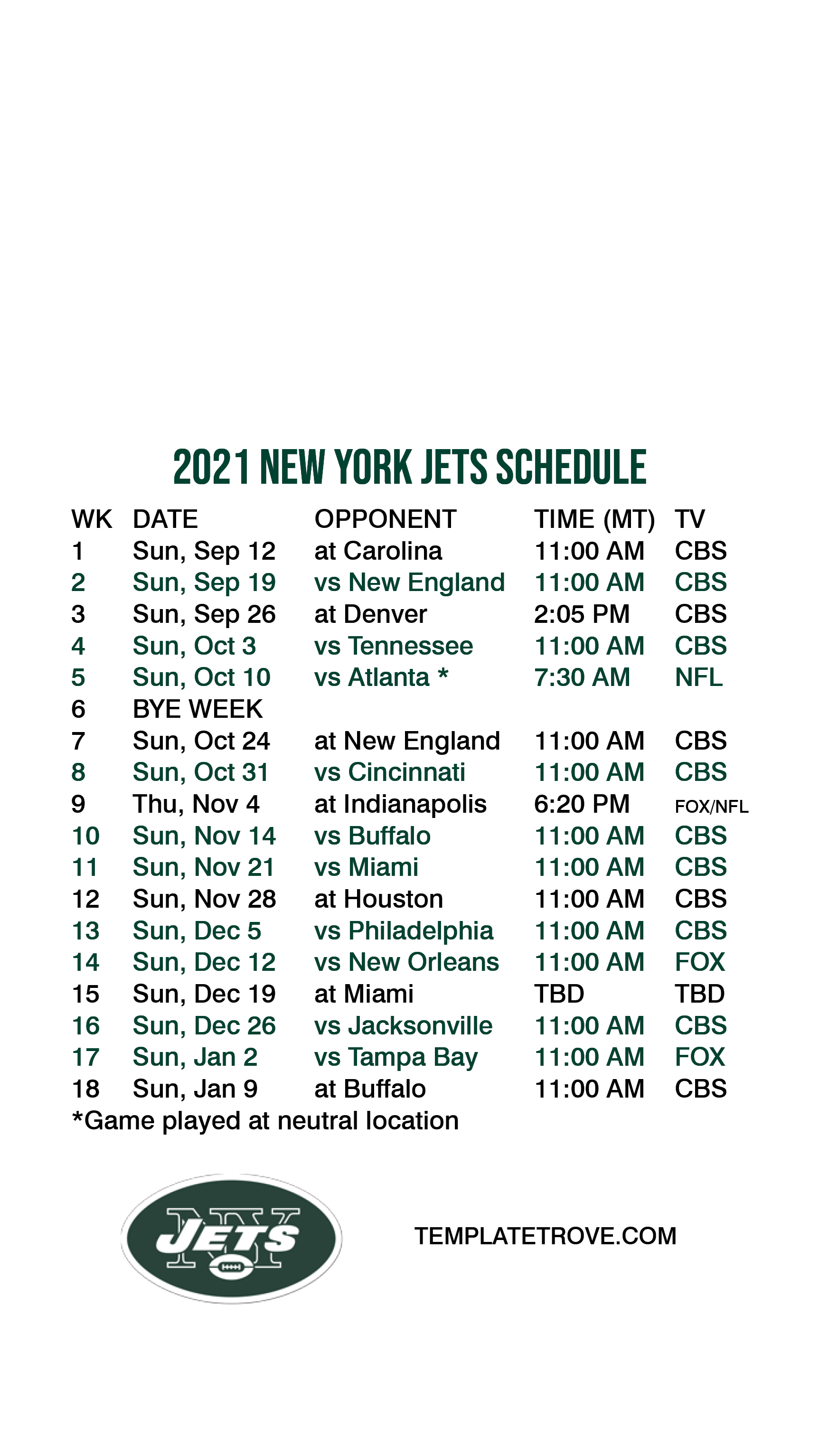 New York Jets Lock Screen Schedule for iPhone 6, 7, 8 Plus