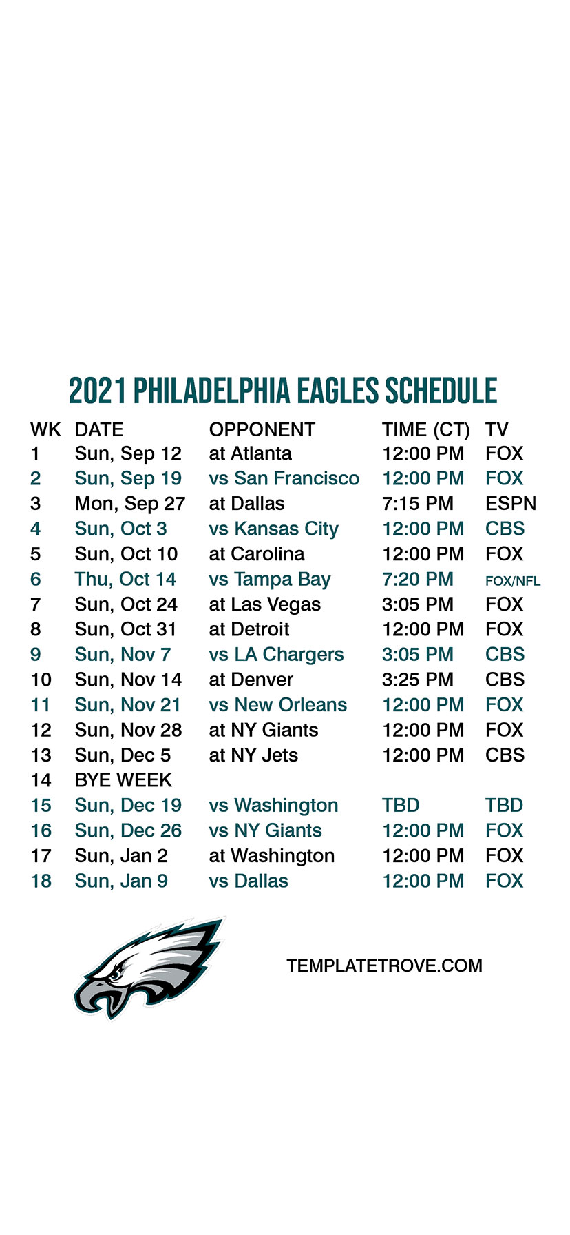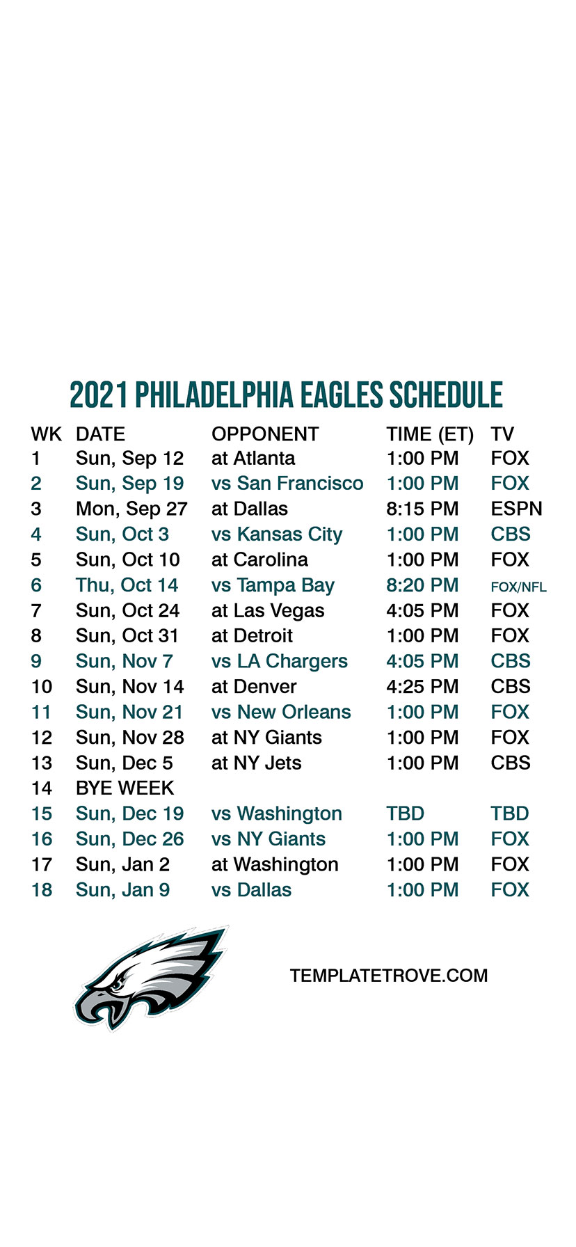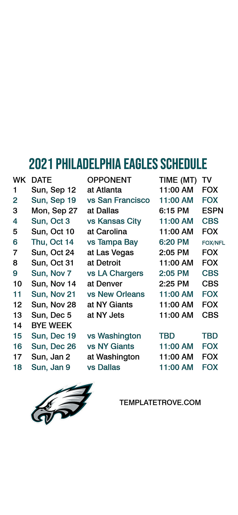 2021 Philadelphia Eagles Lock Screen Schedule
