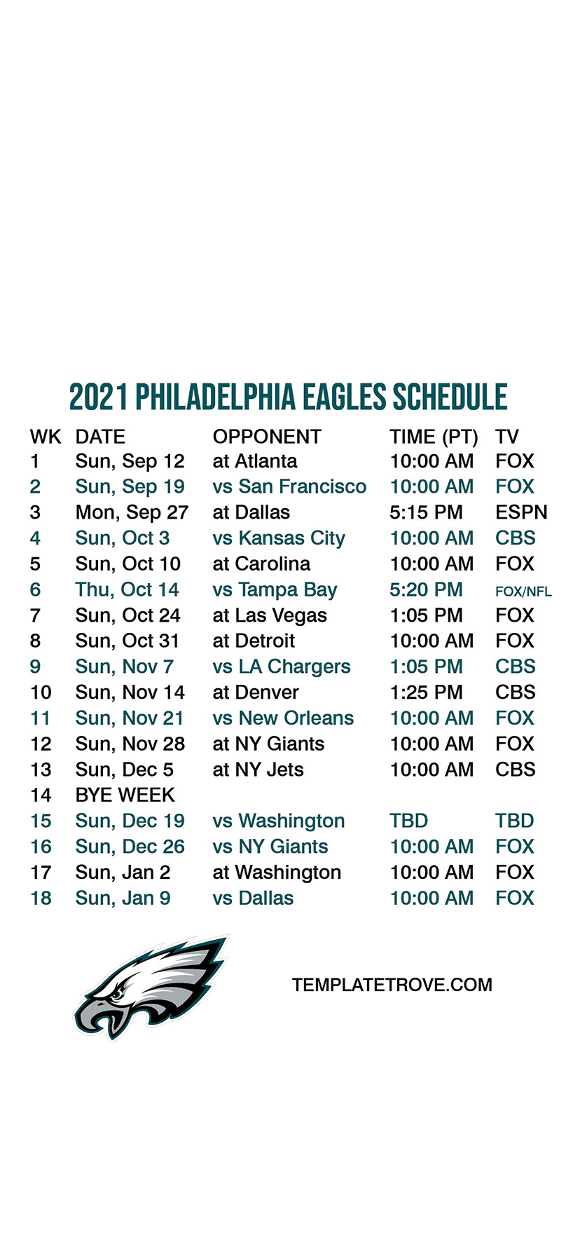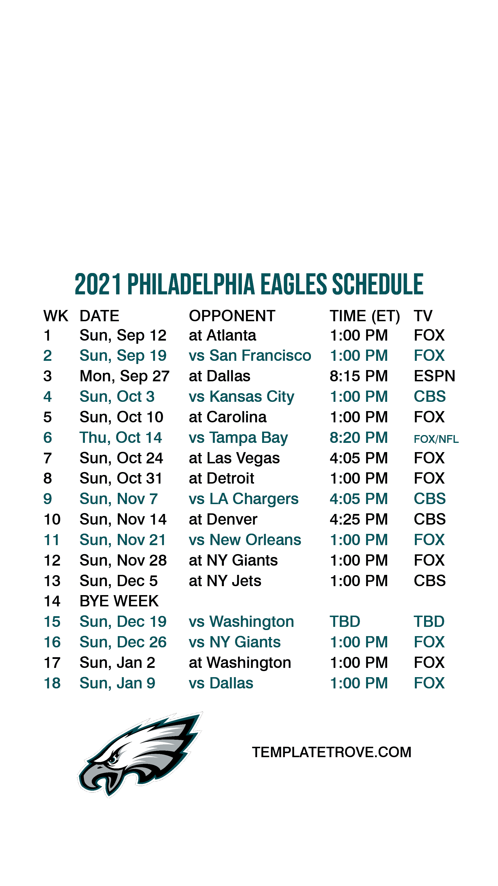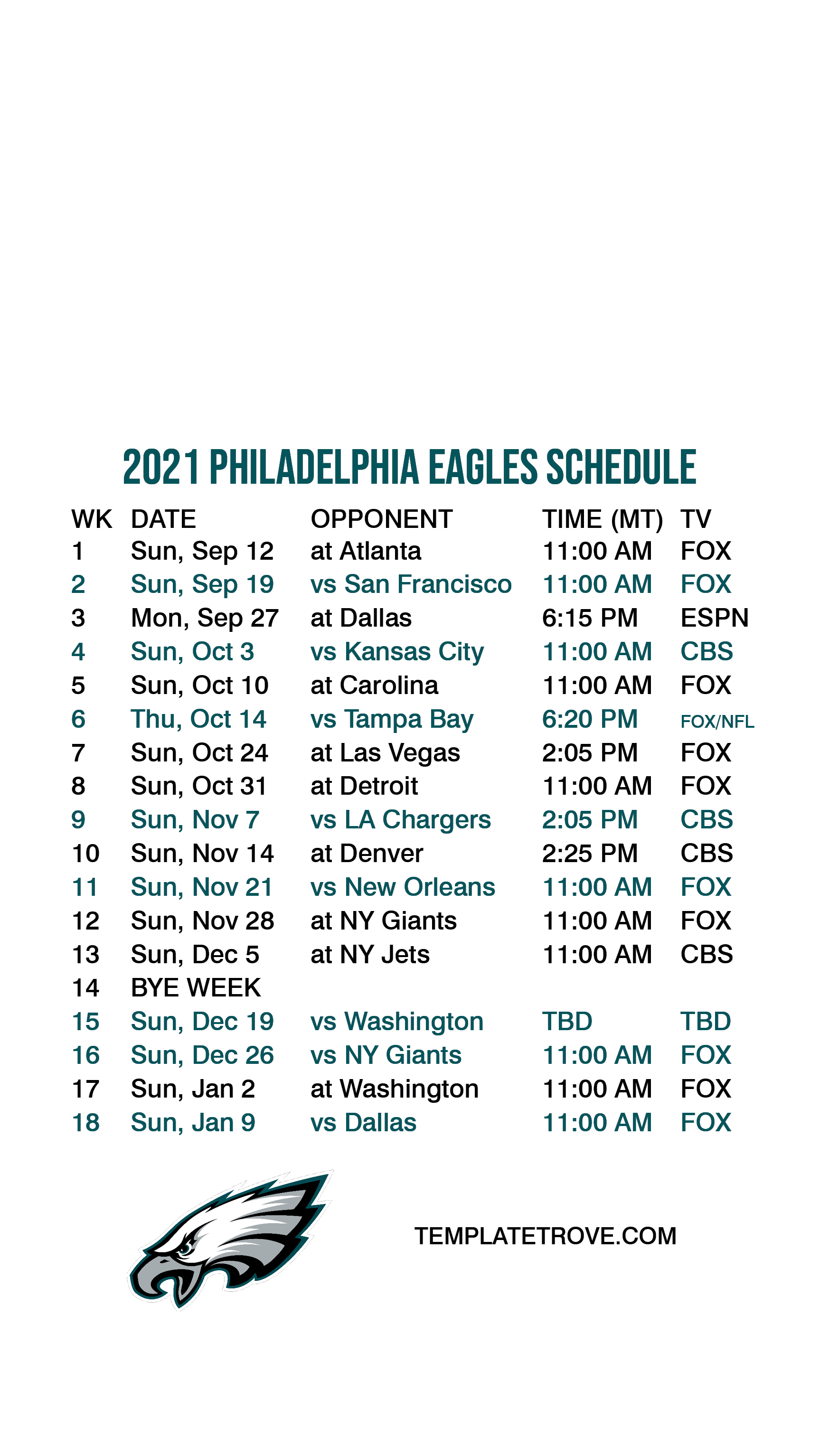 2021 Philadelphia Eagles Lock Screen Schedule