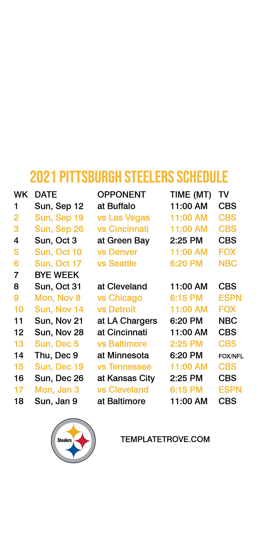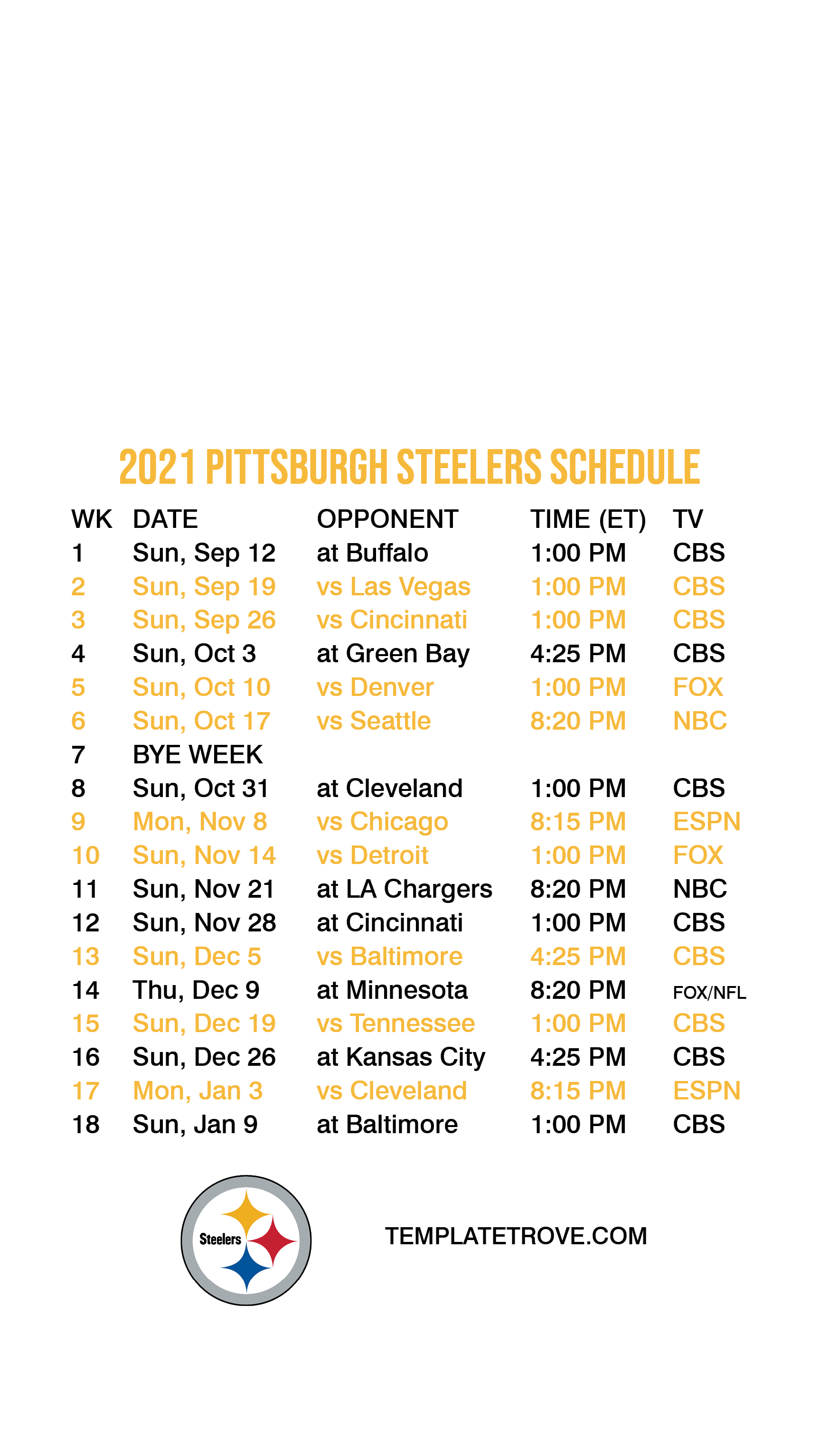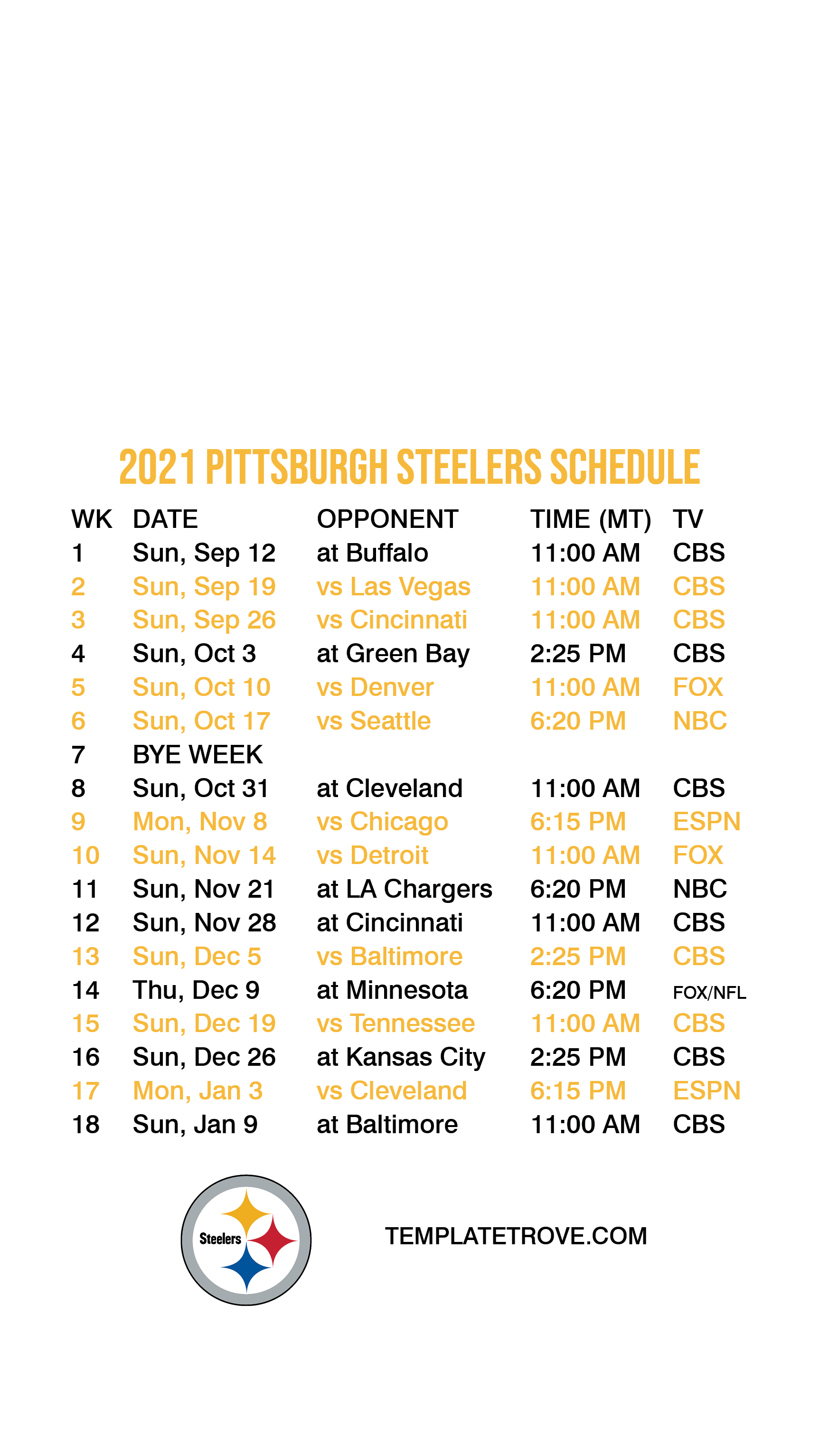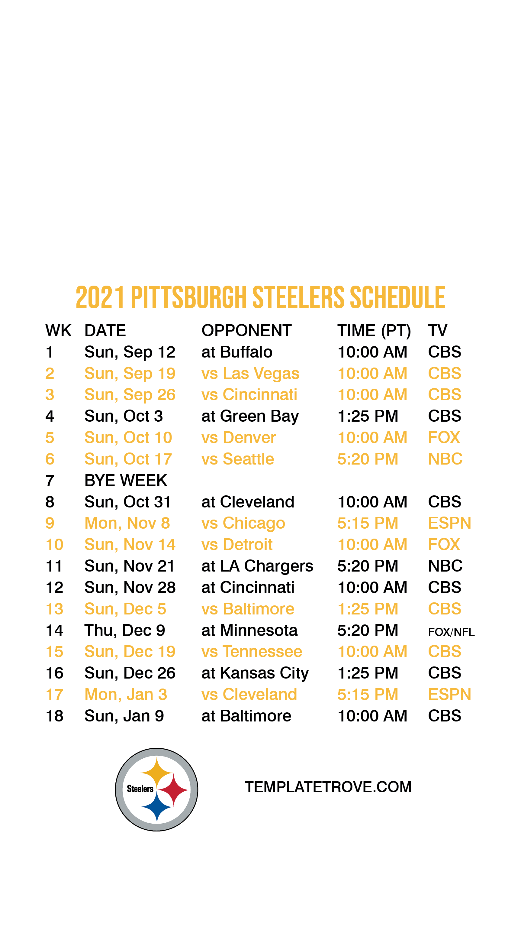 2021 Pittsburgh Steelers Lock Screen Schedule