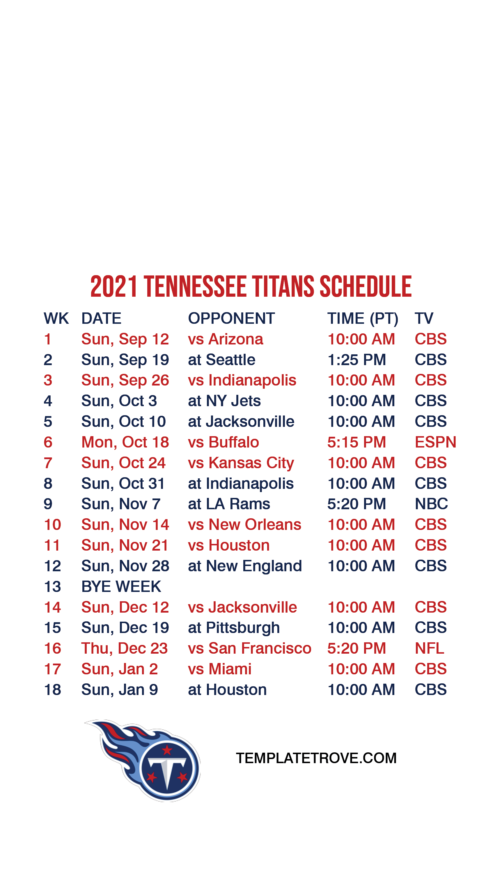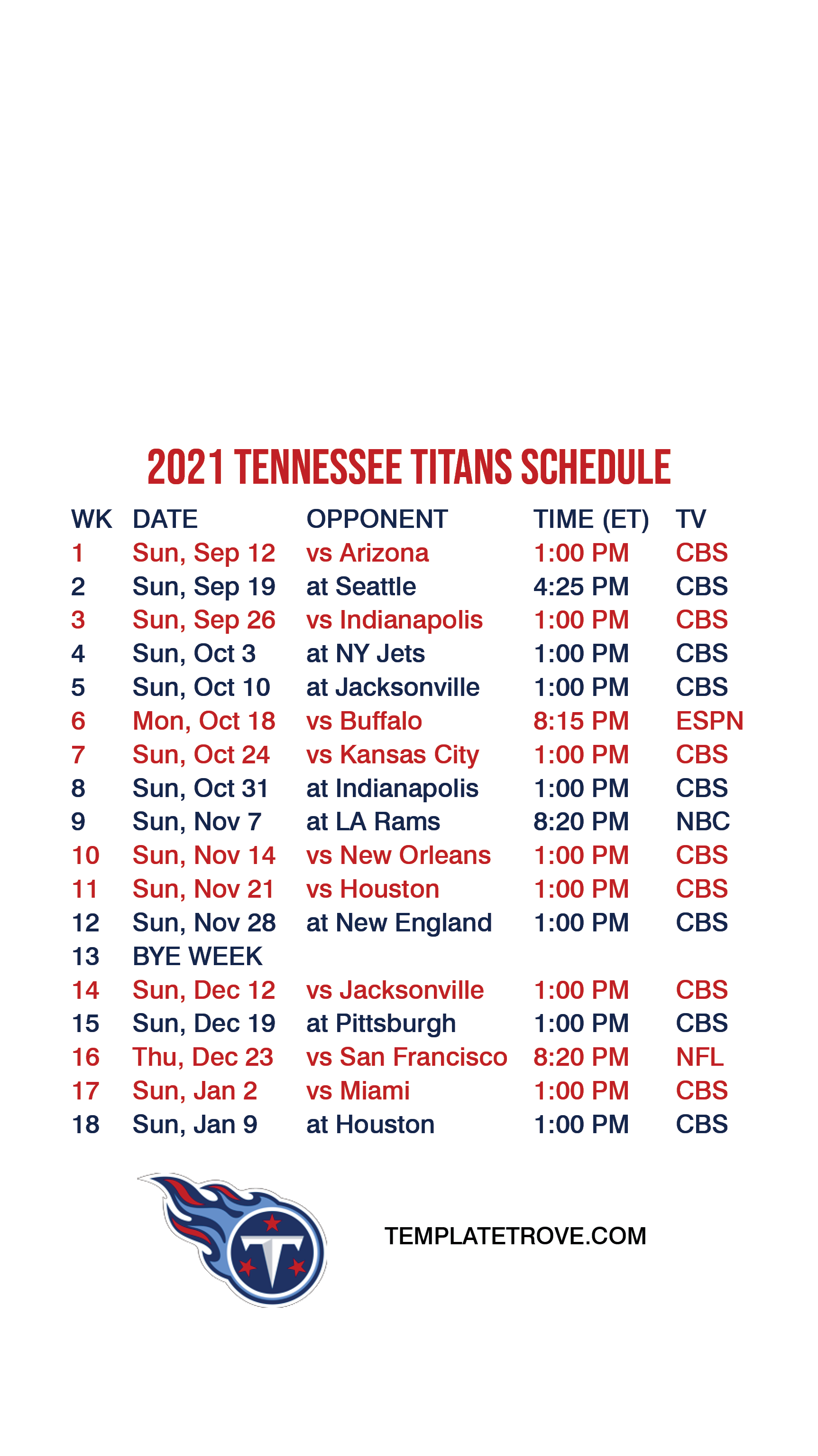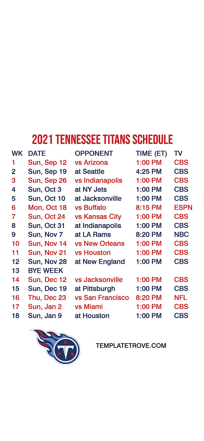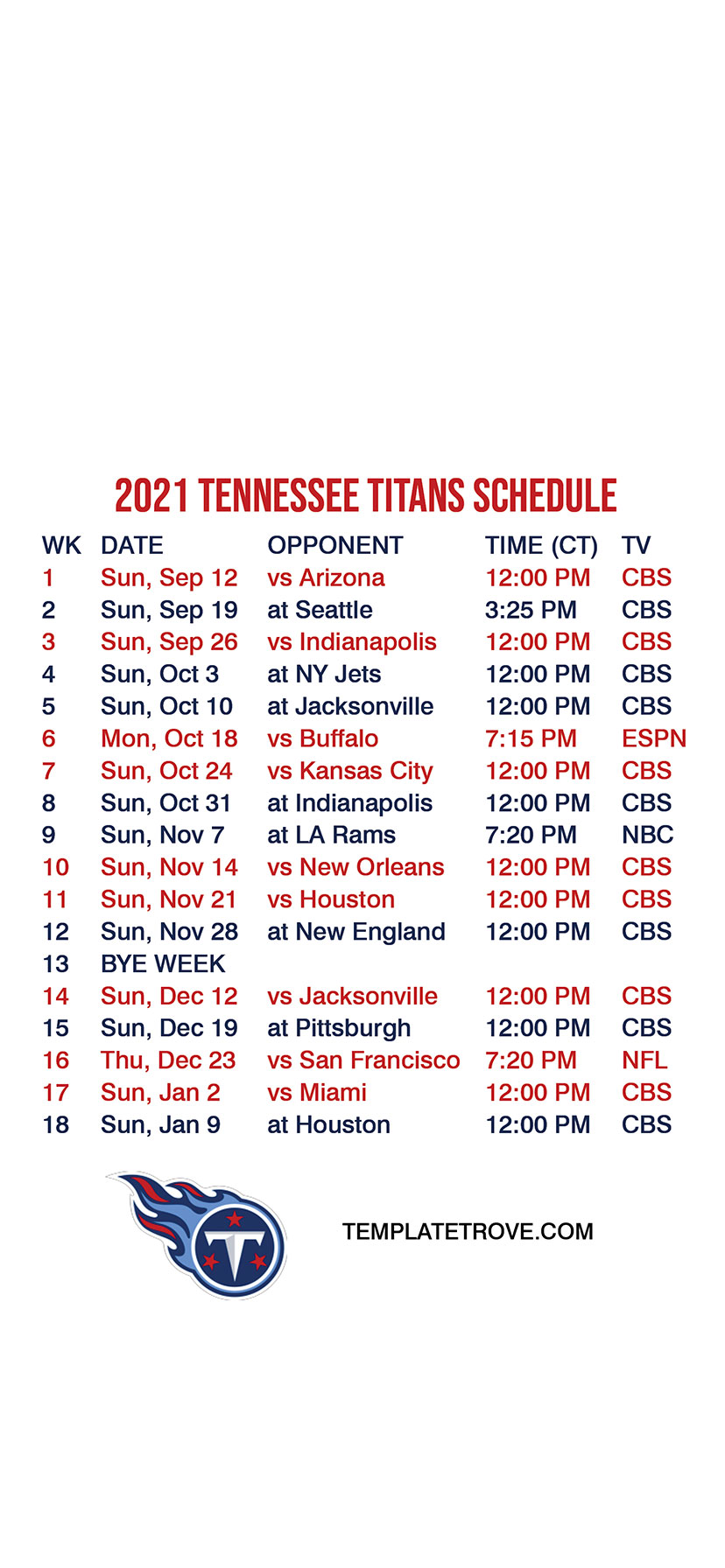 Tennessee Titans Lock Screen Schedule for iPhone 6, 7, 8 Plus