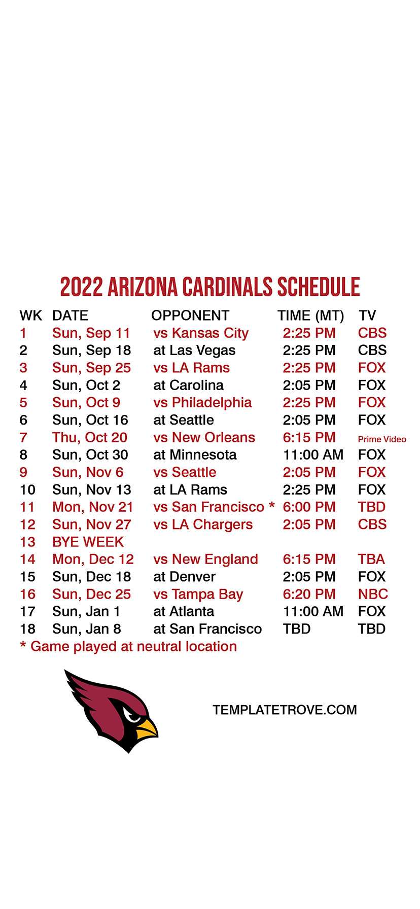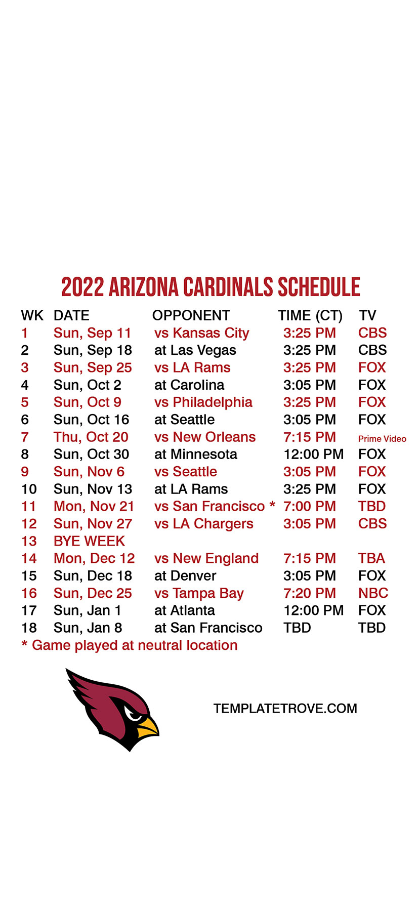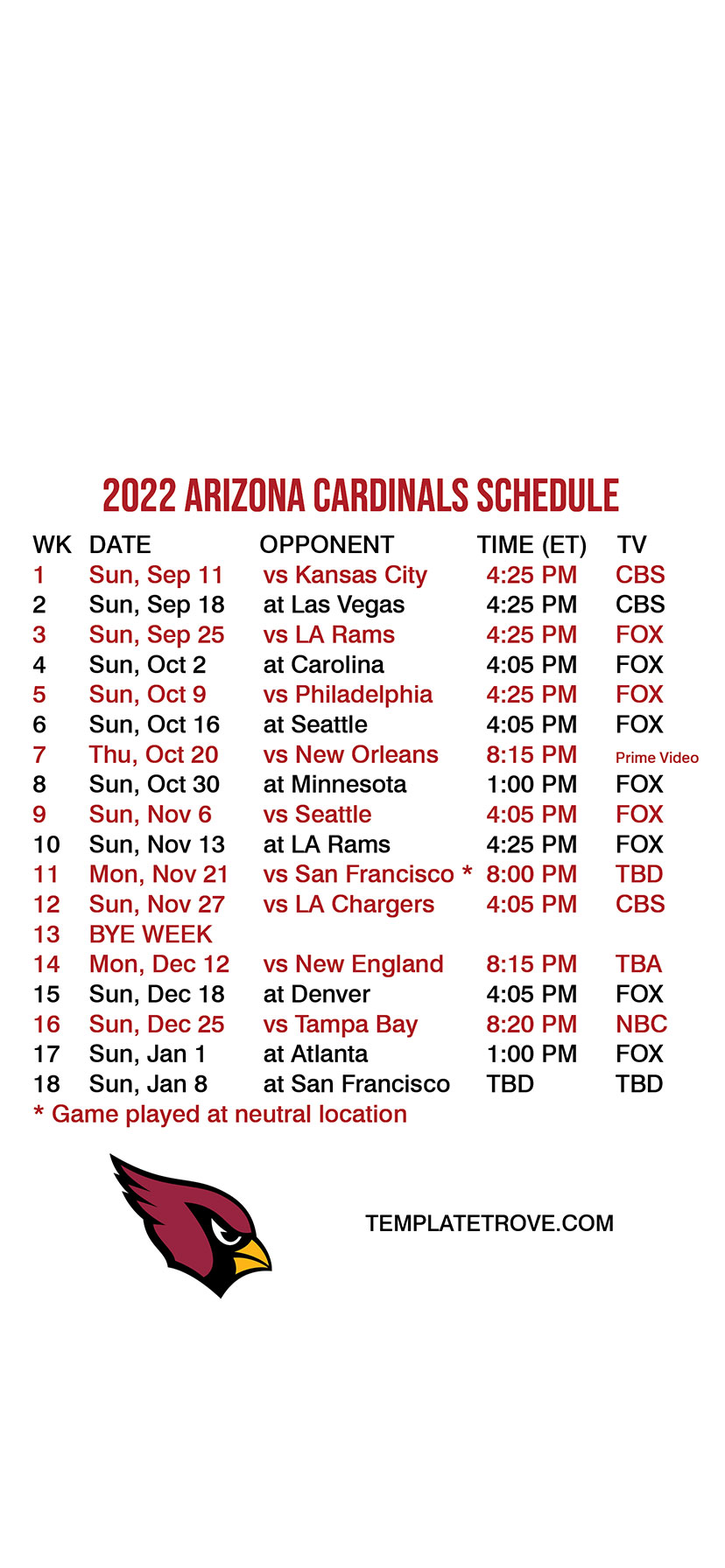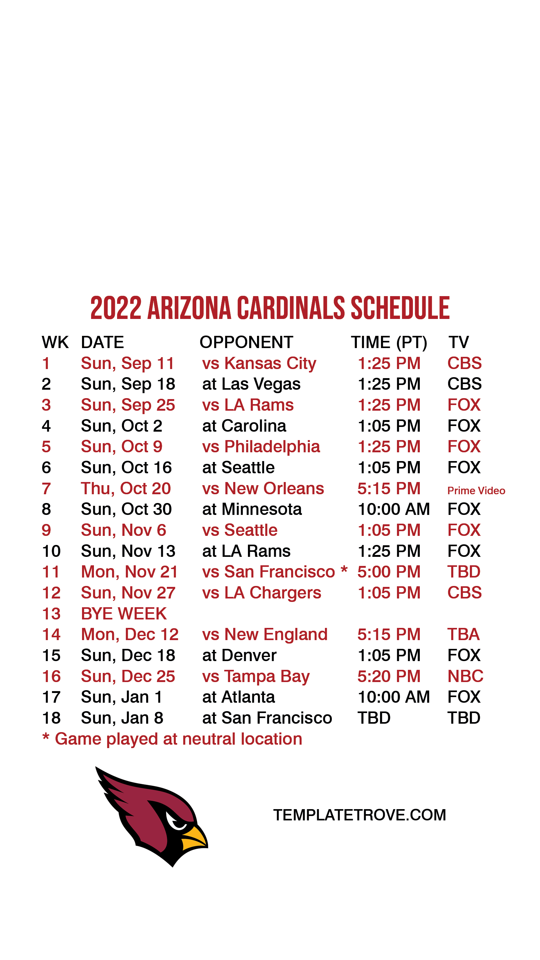 2022-23 Arizona Cardinals Lock Screen Schedule