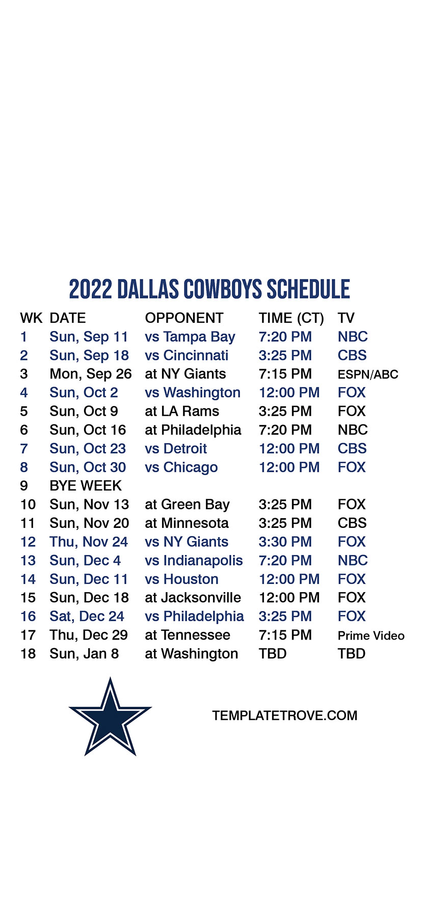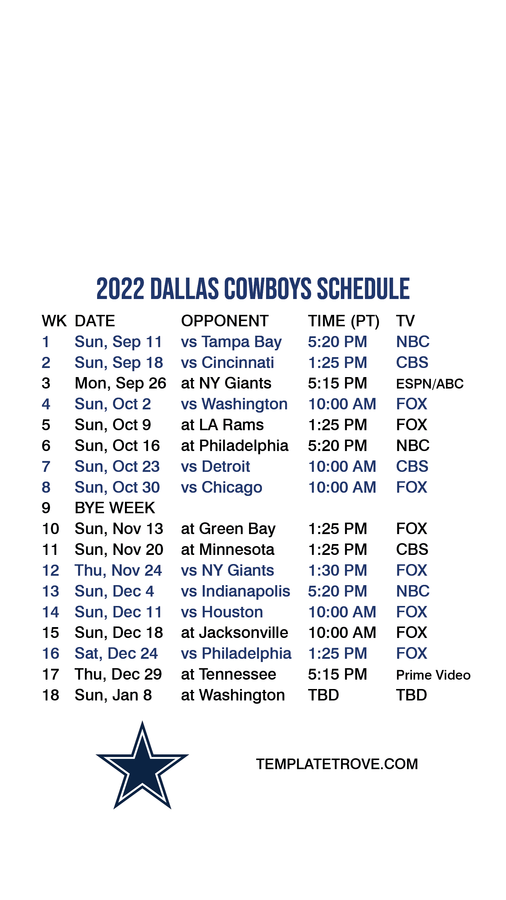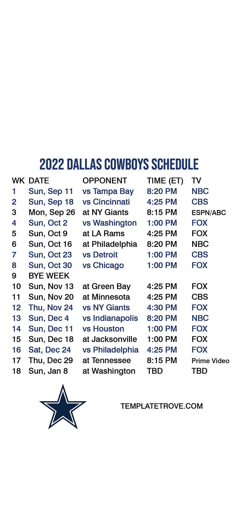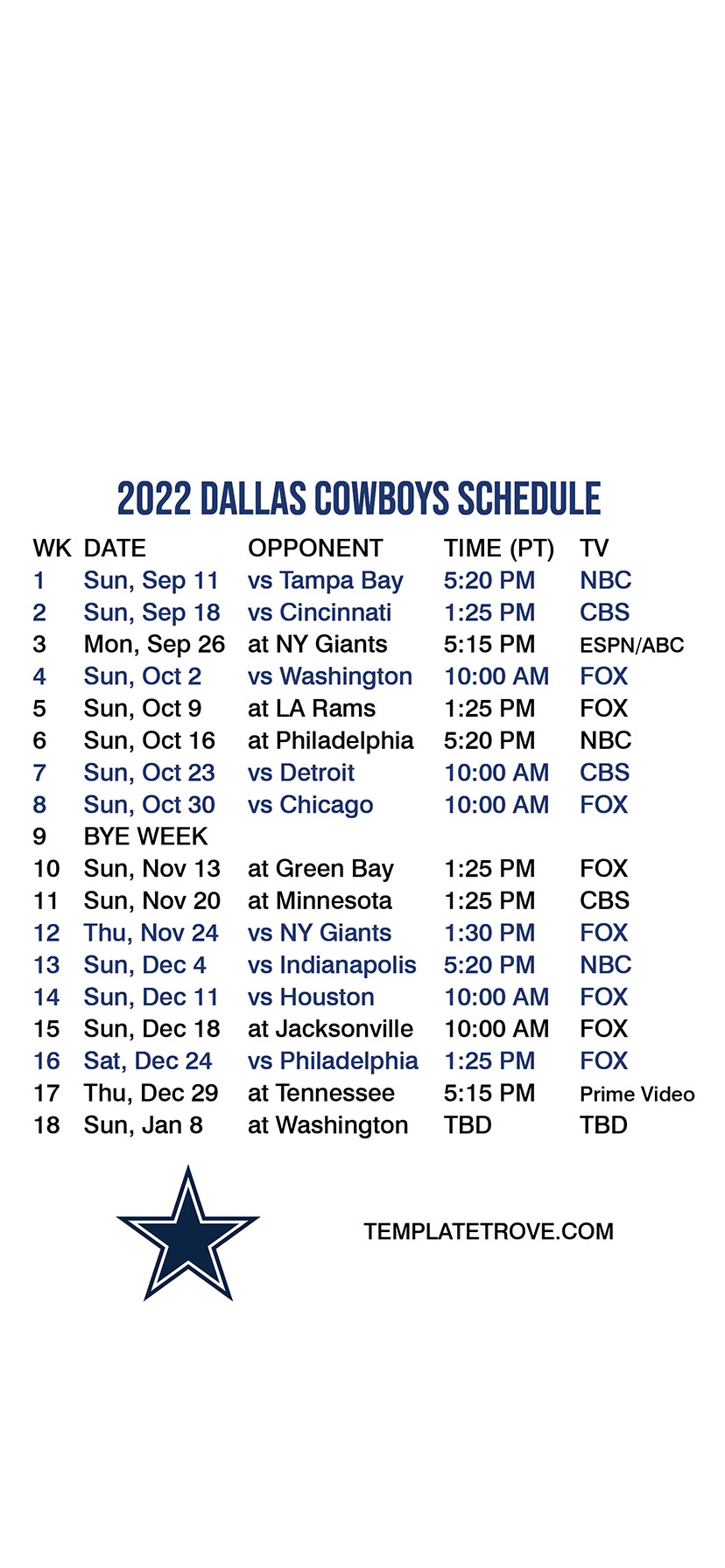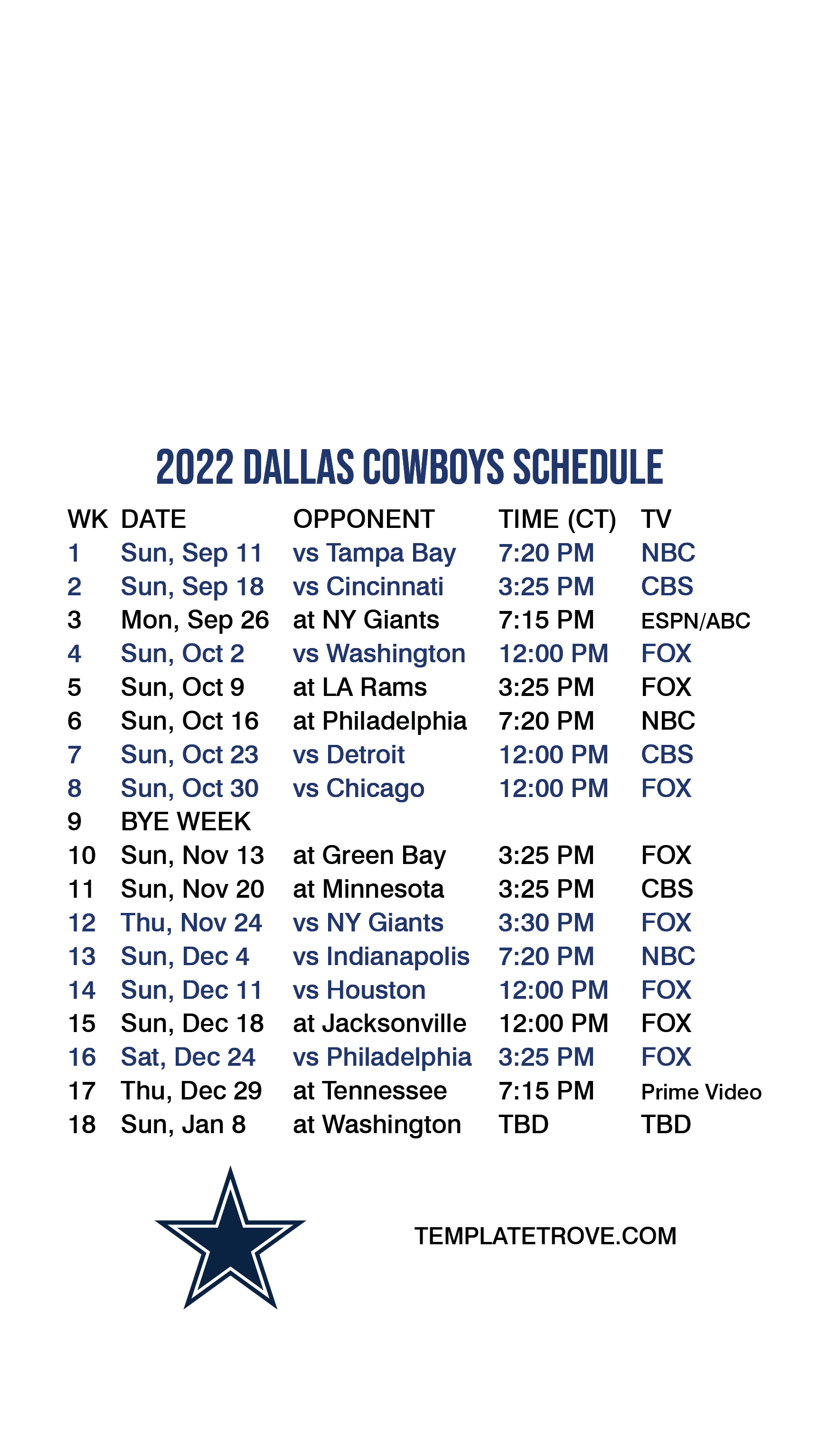 2022-23 Dallas Cowboys Lock Screen Schedule