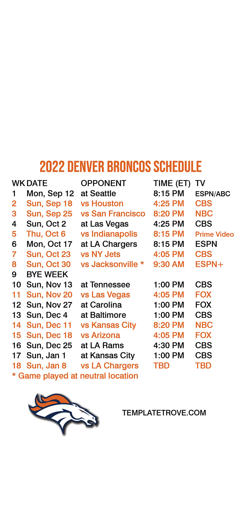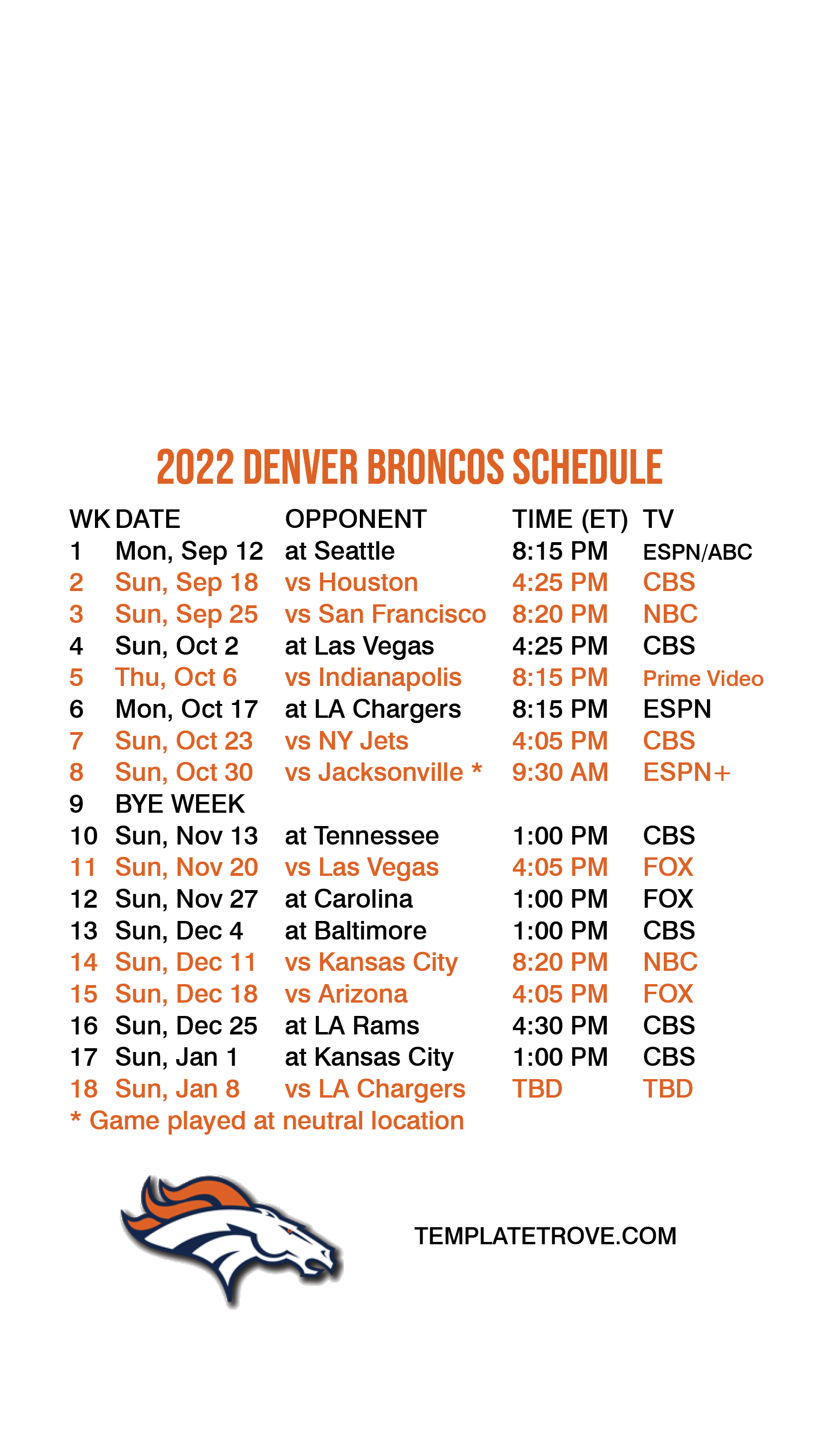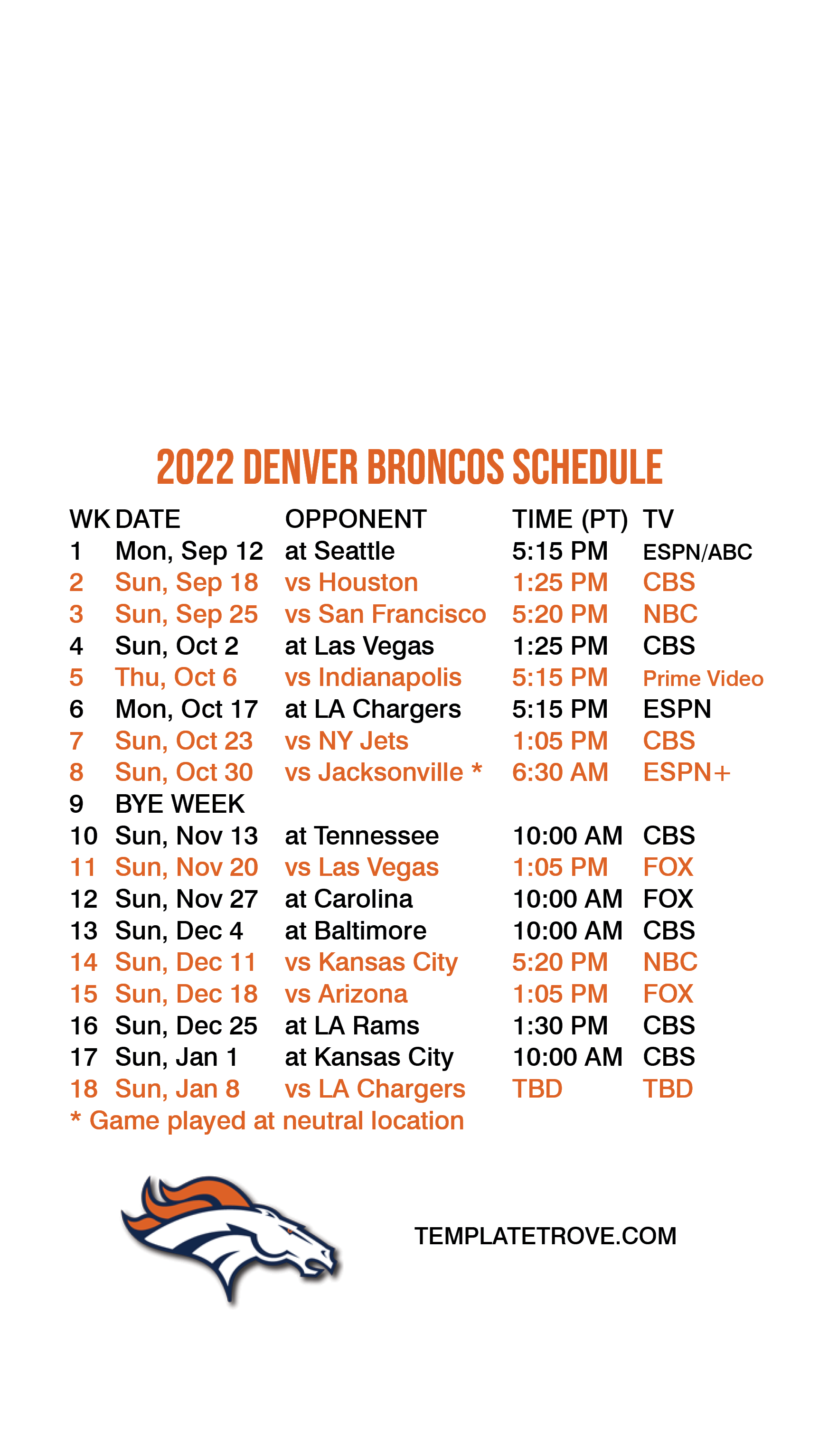 Denver Broncos Lock Screen Schedule for iPhone 6, 7, 8 Plus
