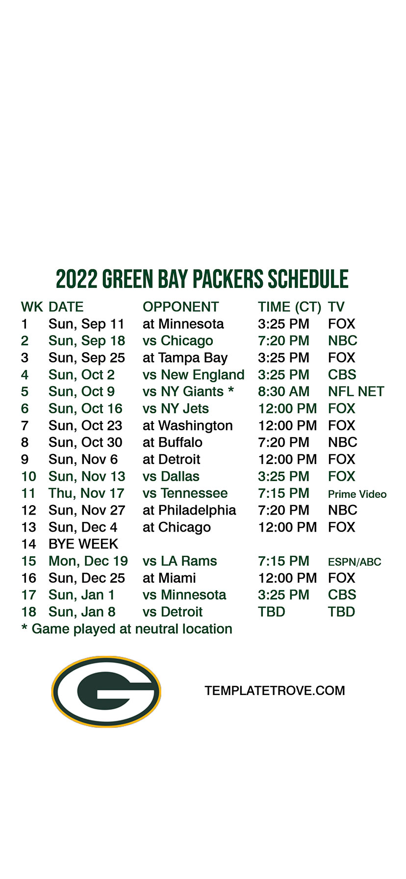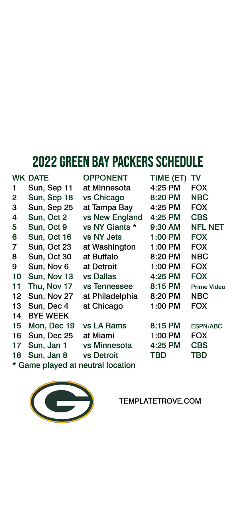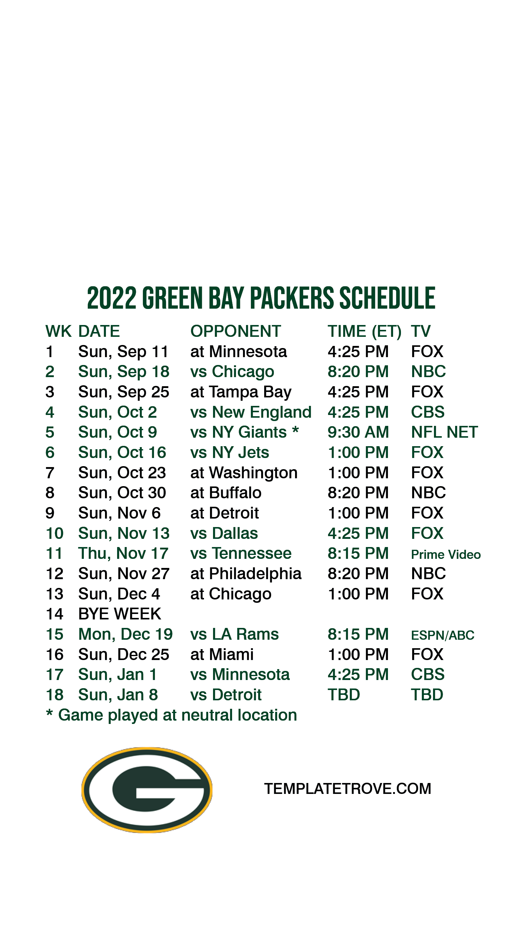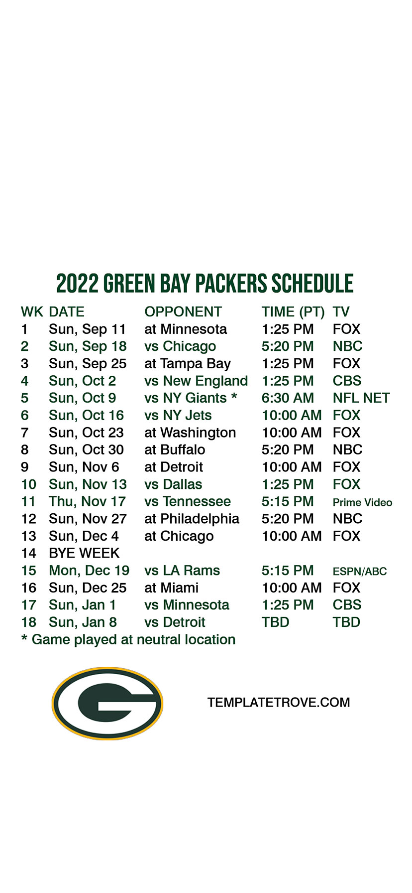 Green Bay Packers Lock Screen Schedule for iPhone 6, 7, 8 Plus