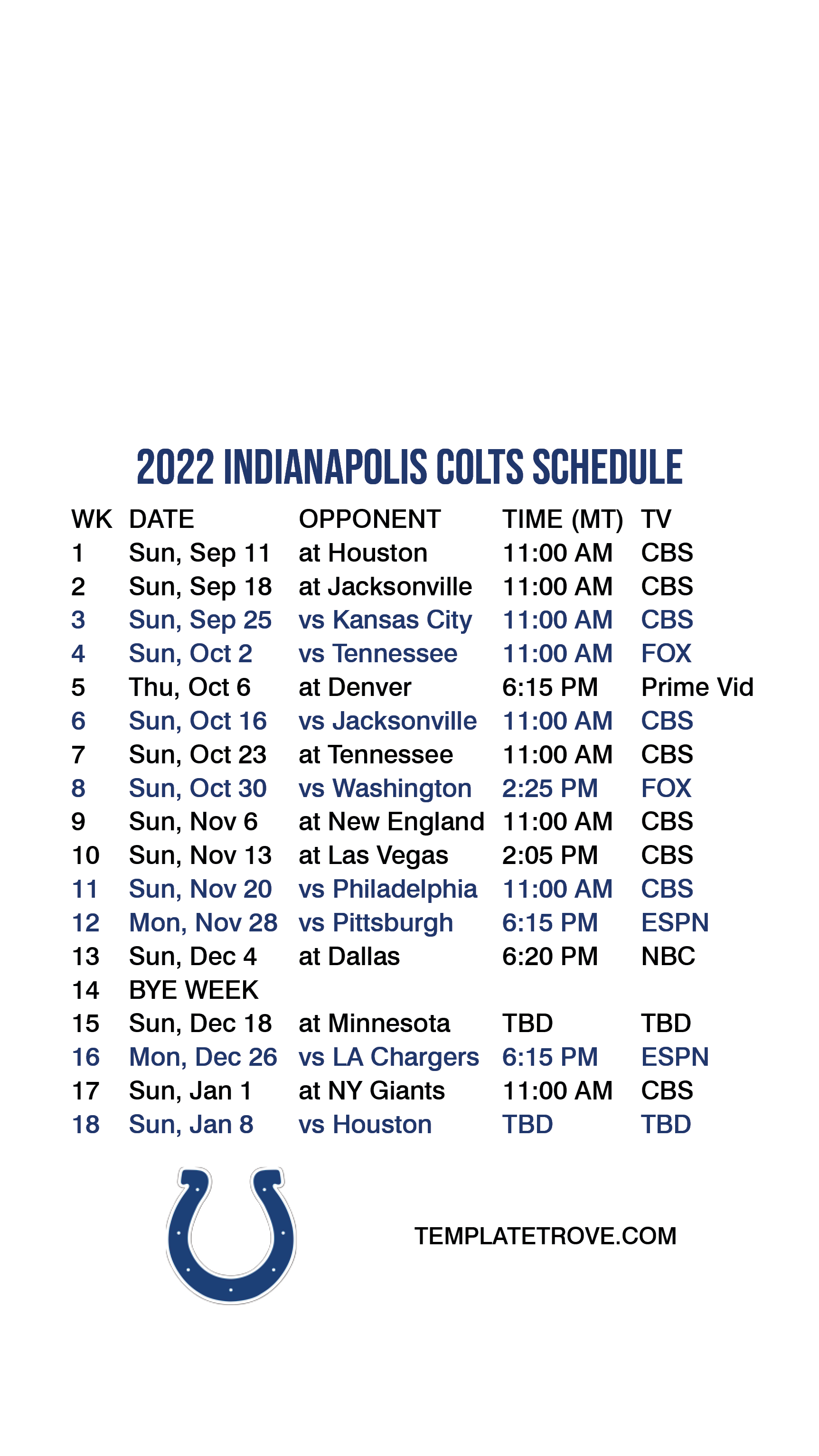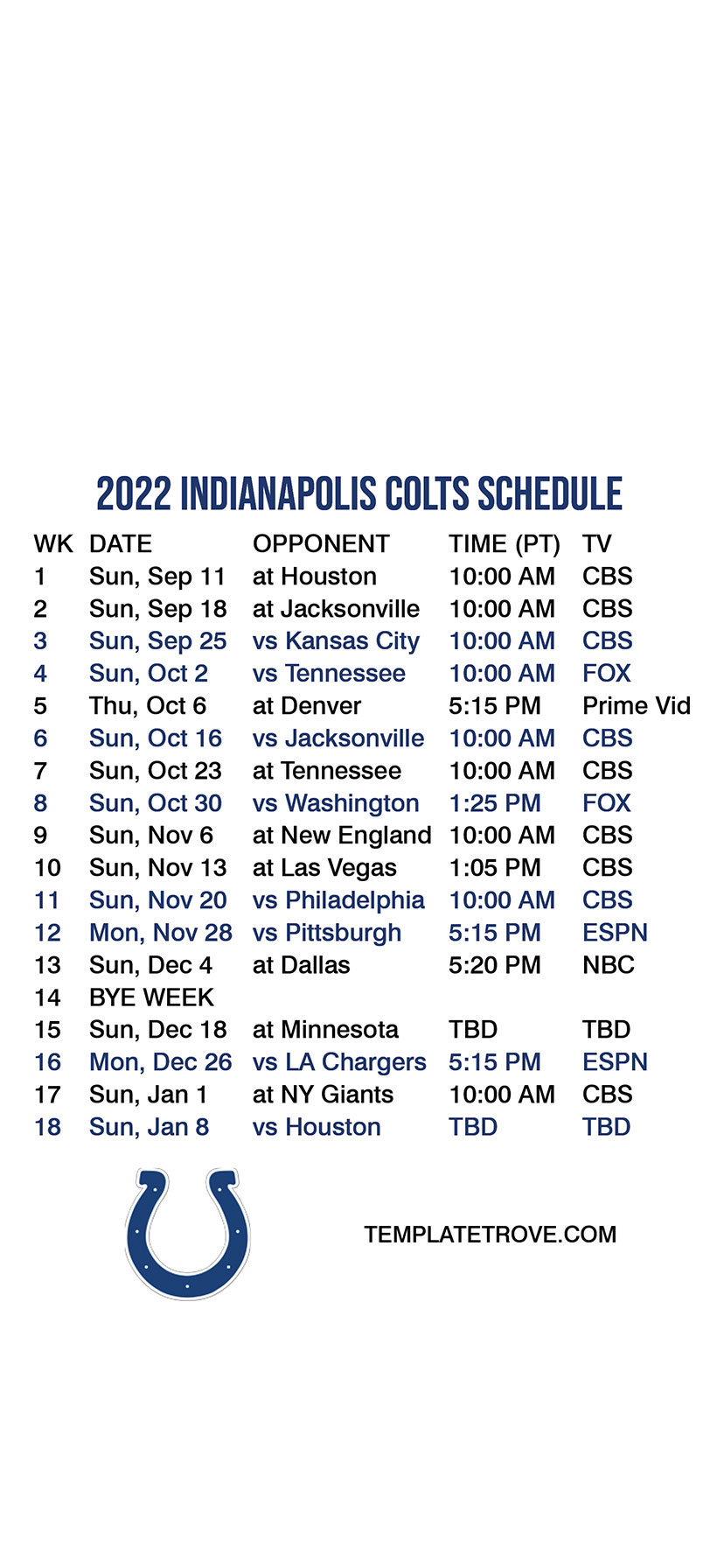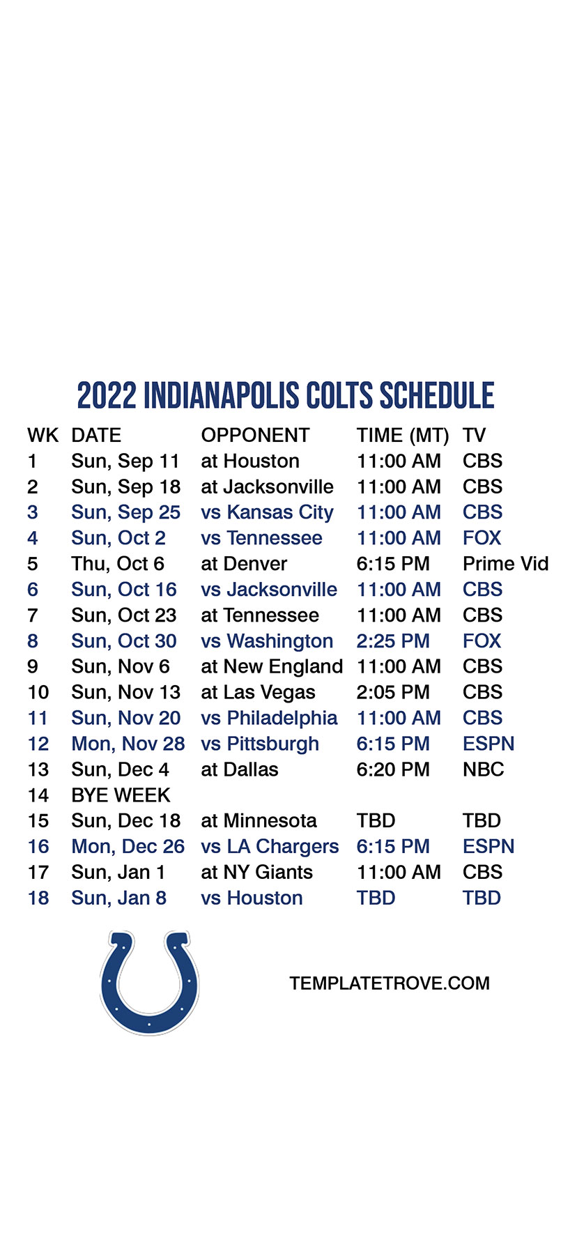 2022-23 Indianapolis Colts Lock Screen Schedule