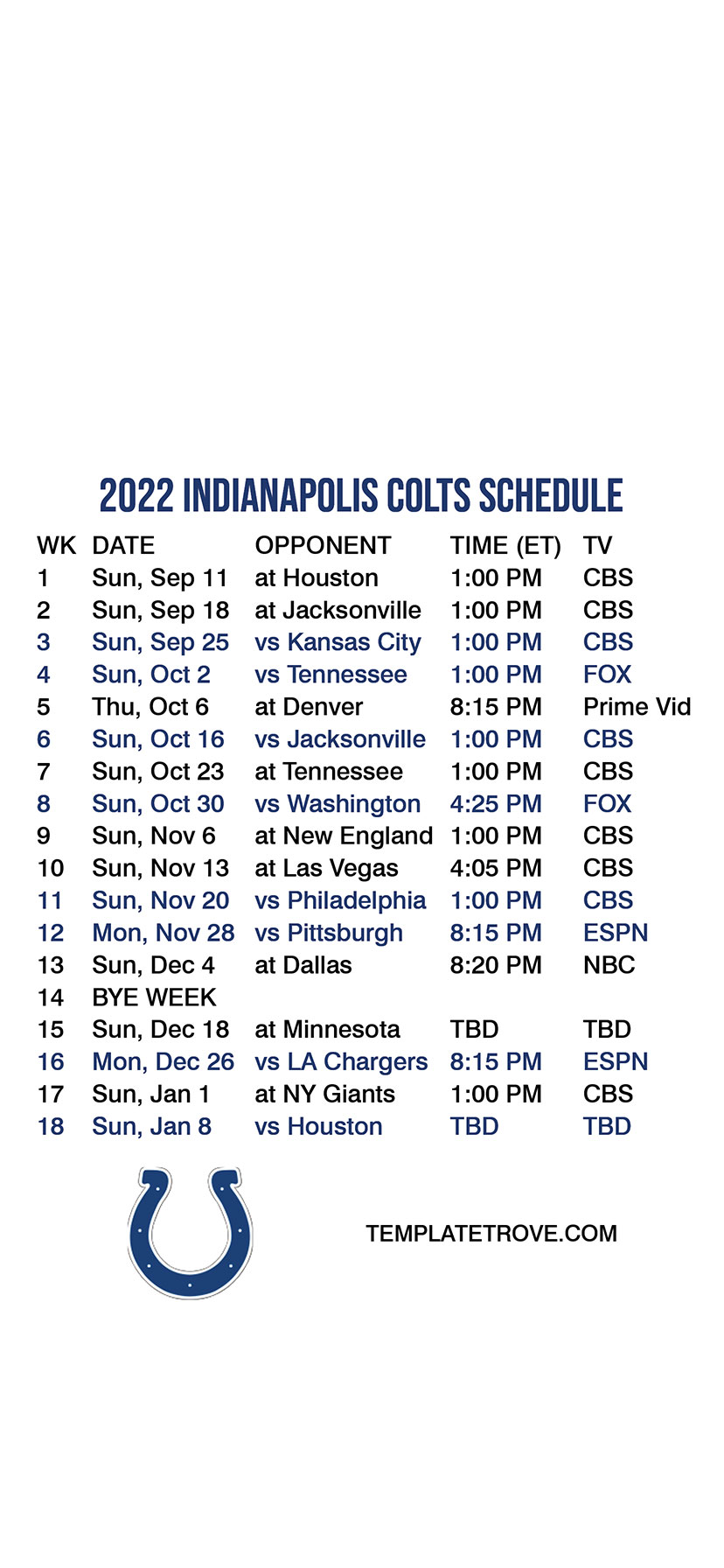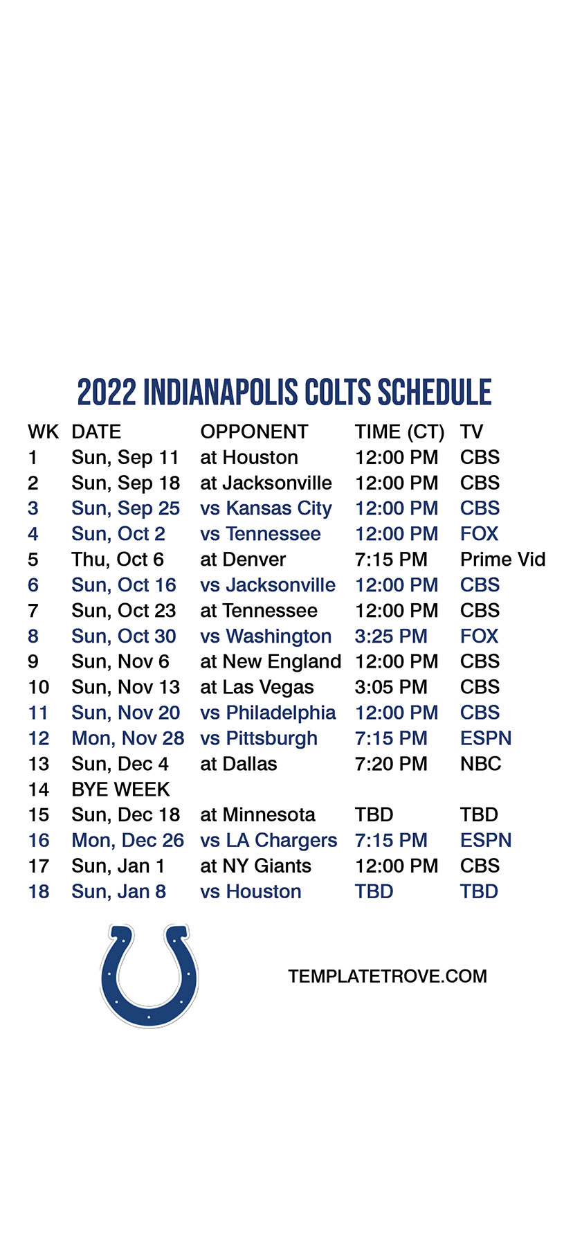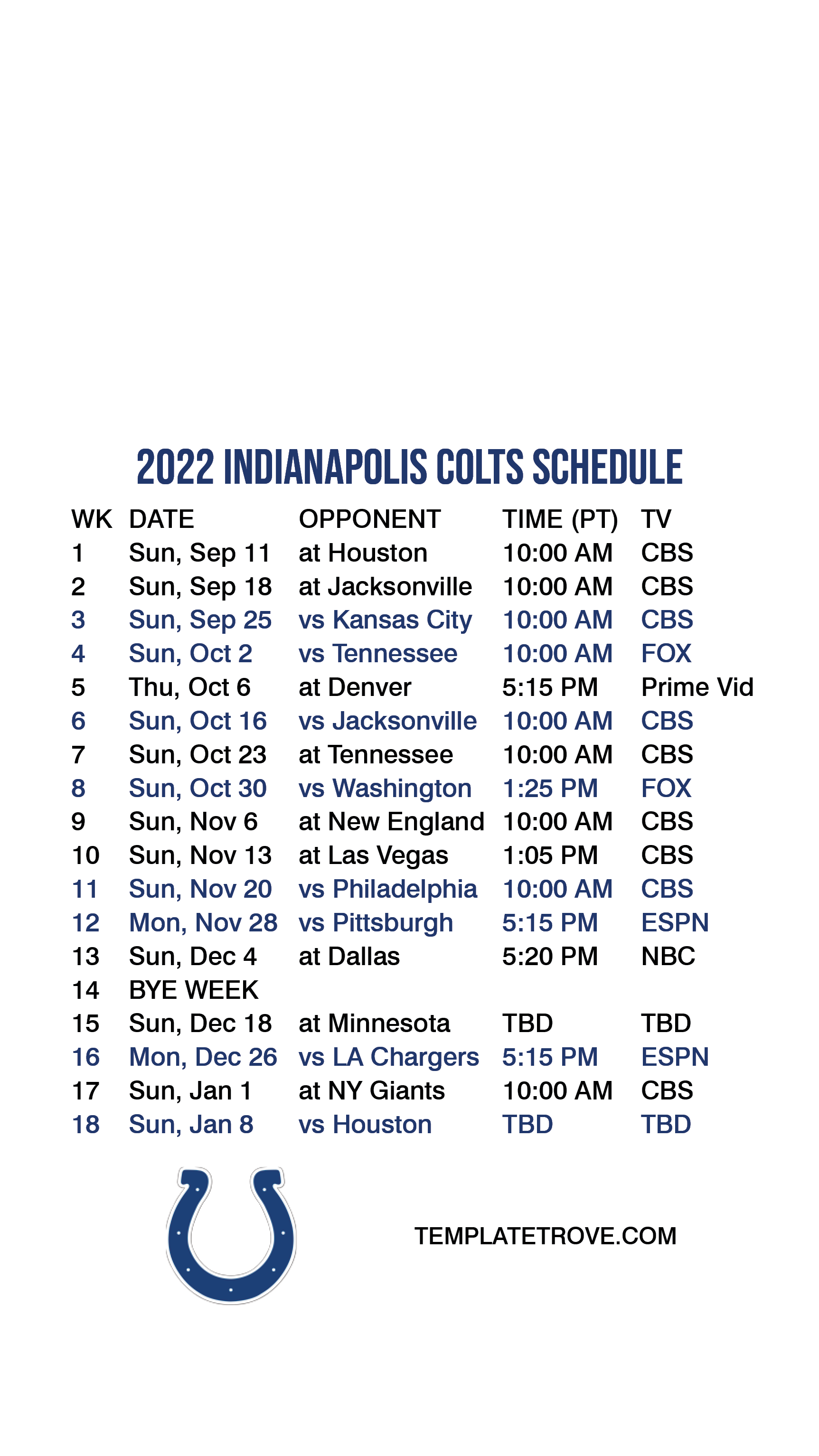 2022-23 Indianapolis Colts Lock Screen Schedule