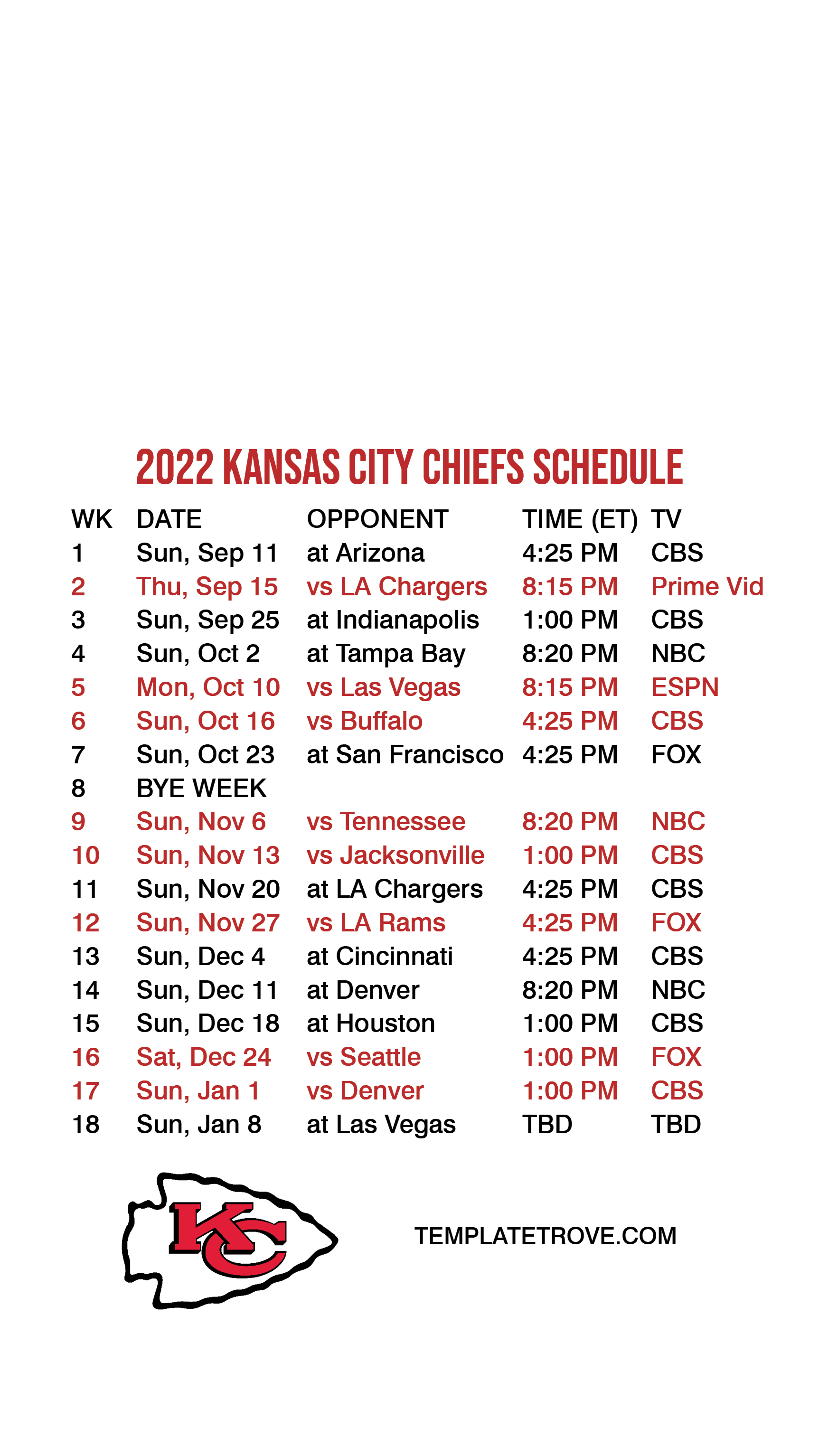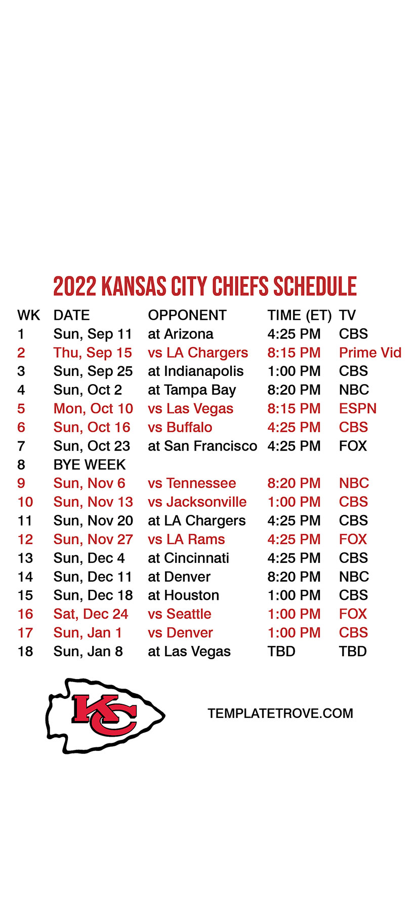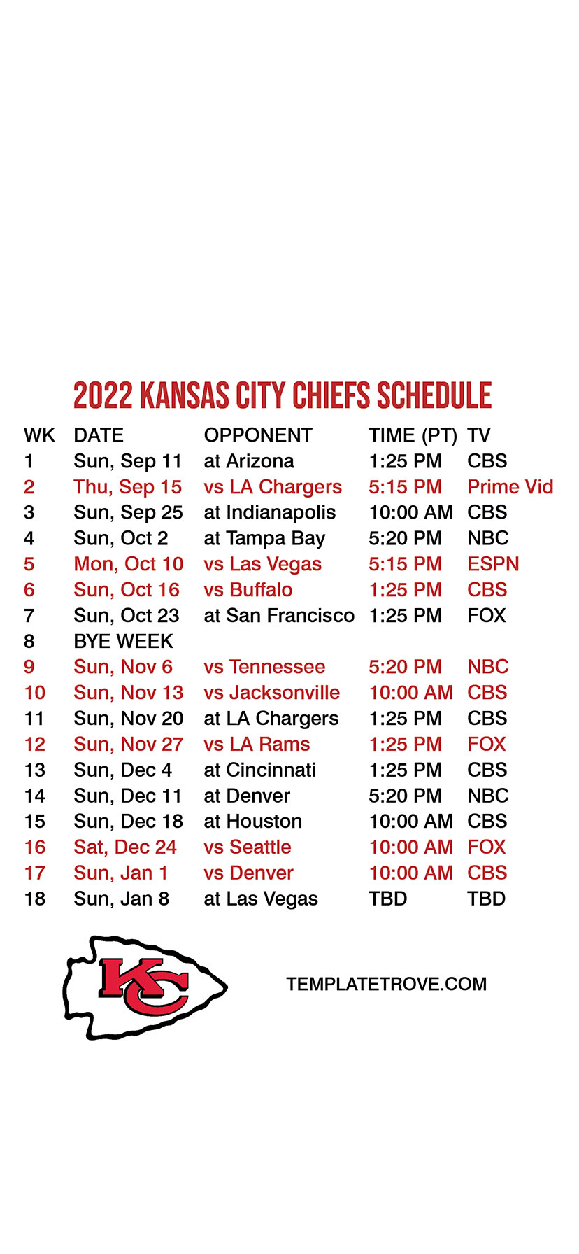 2022-23 Kansas City Chiefs Lock Screen Schedule