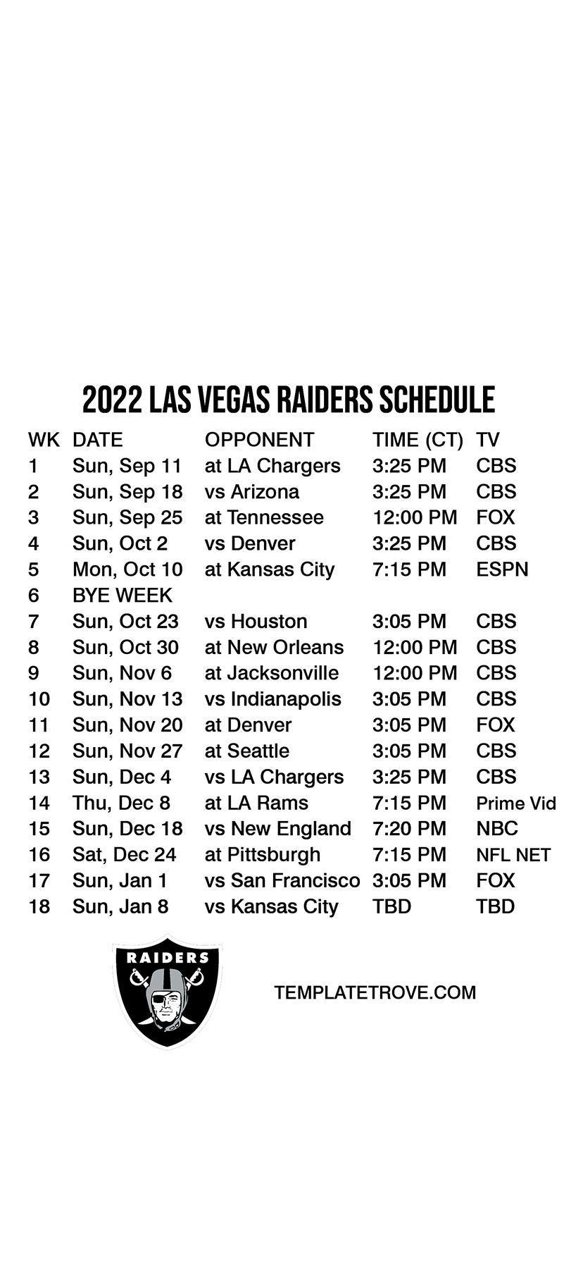 2022 Las Vegas Raiders Lock Screen Schedule