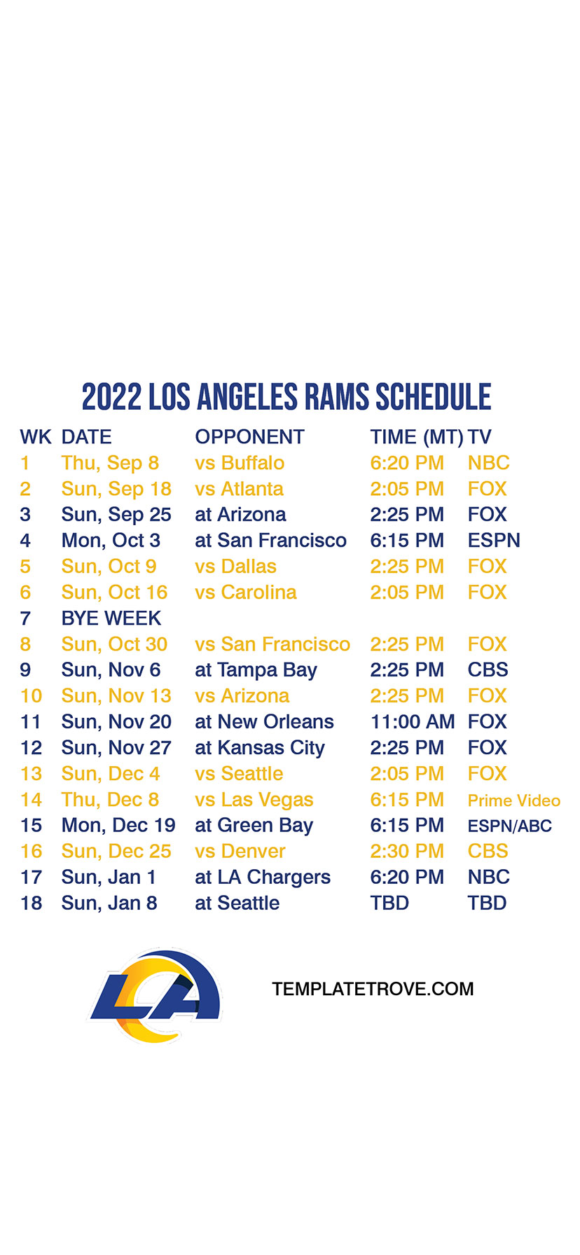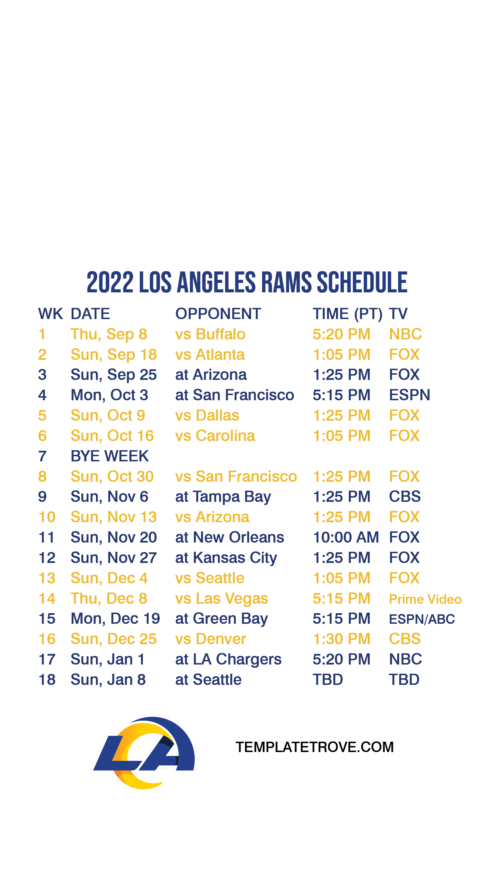 2022-23 Los Angeles Rams Lock Screen Schedule