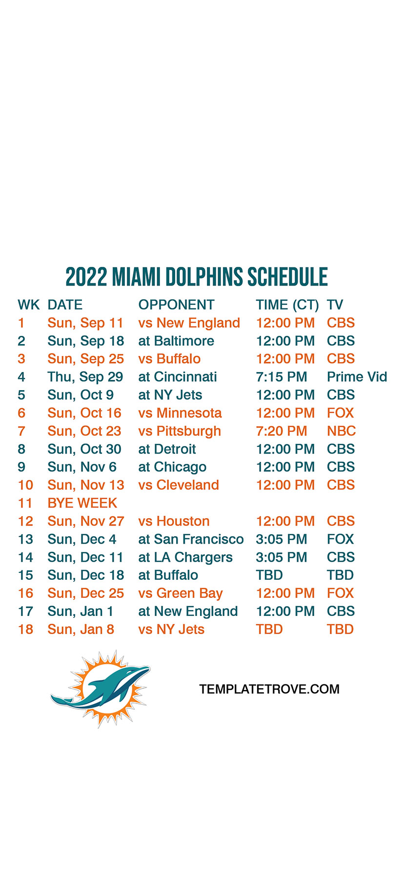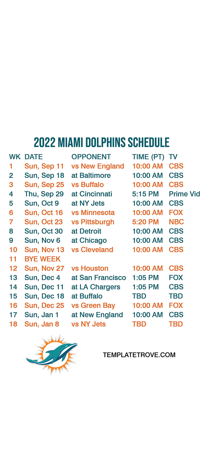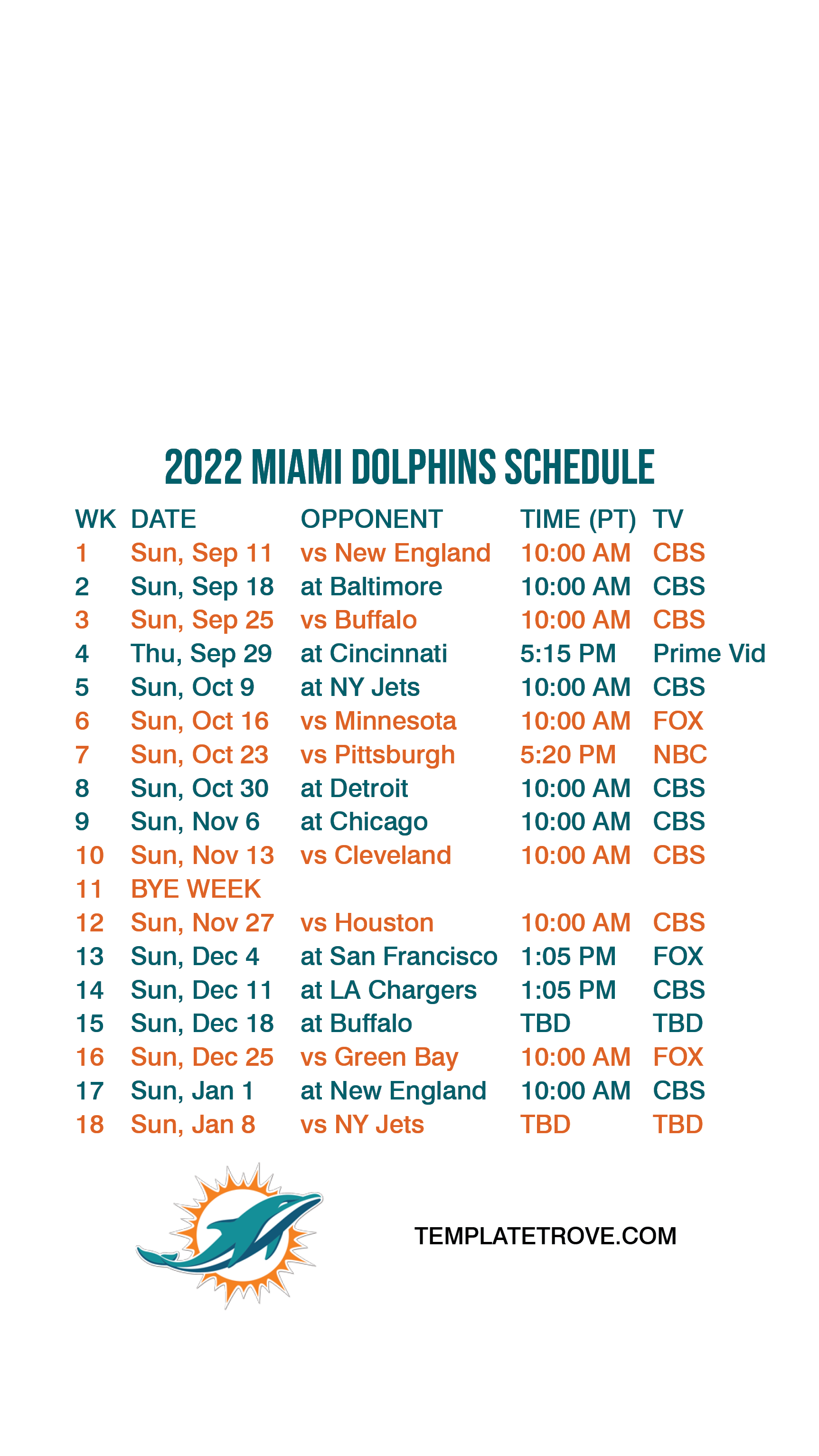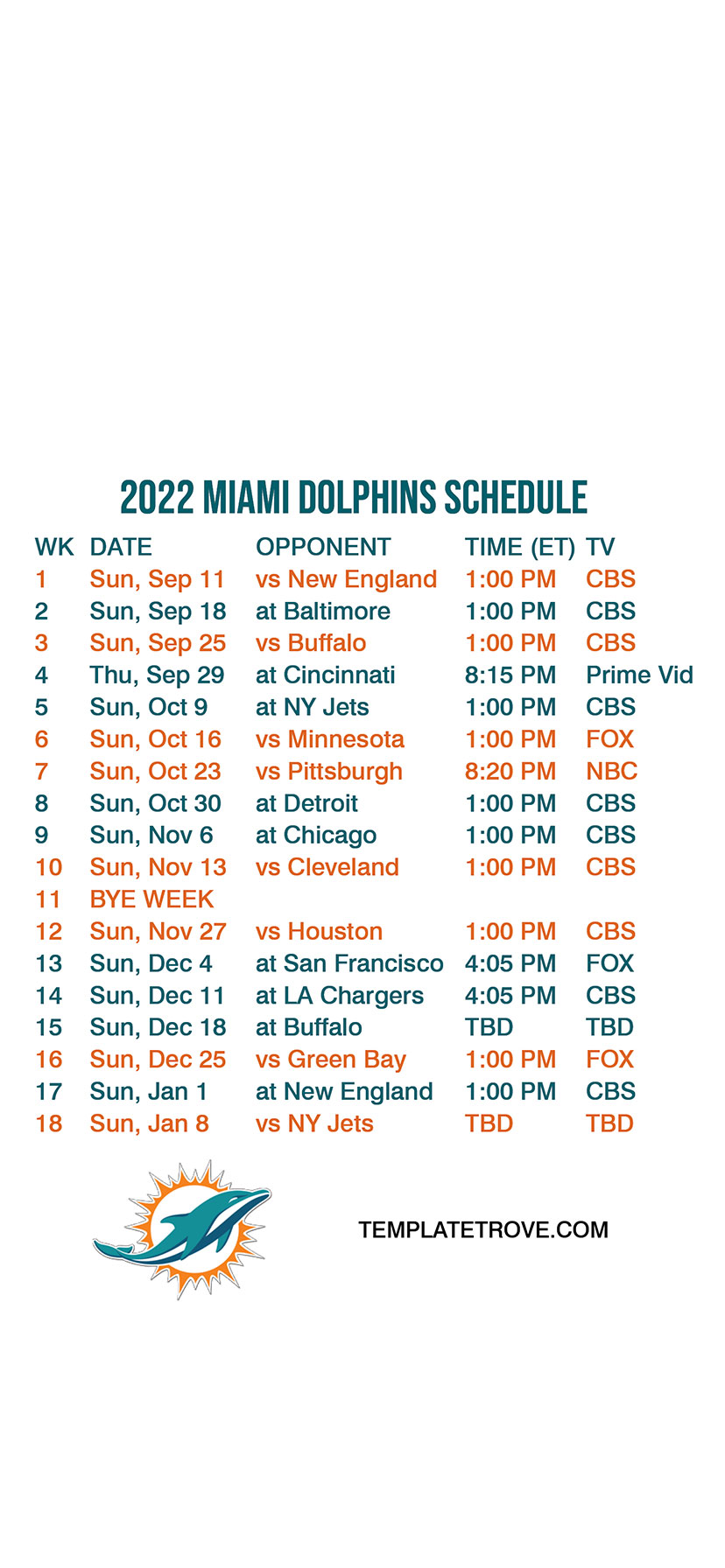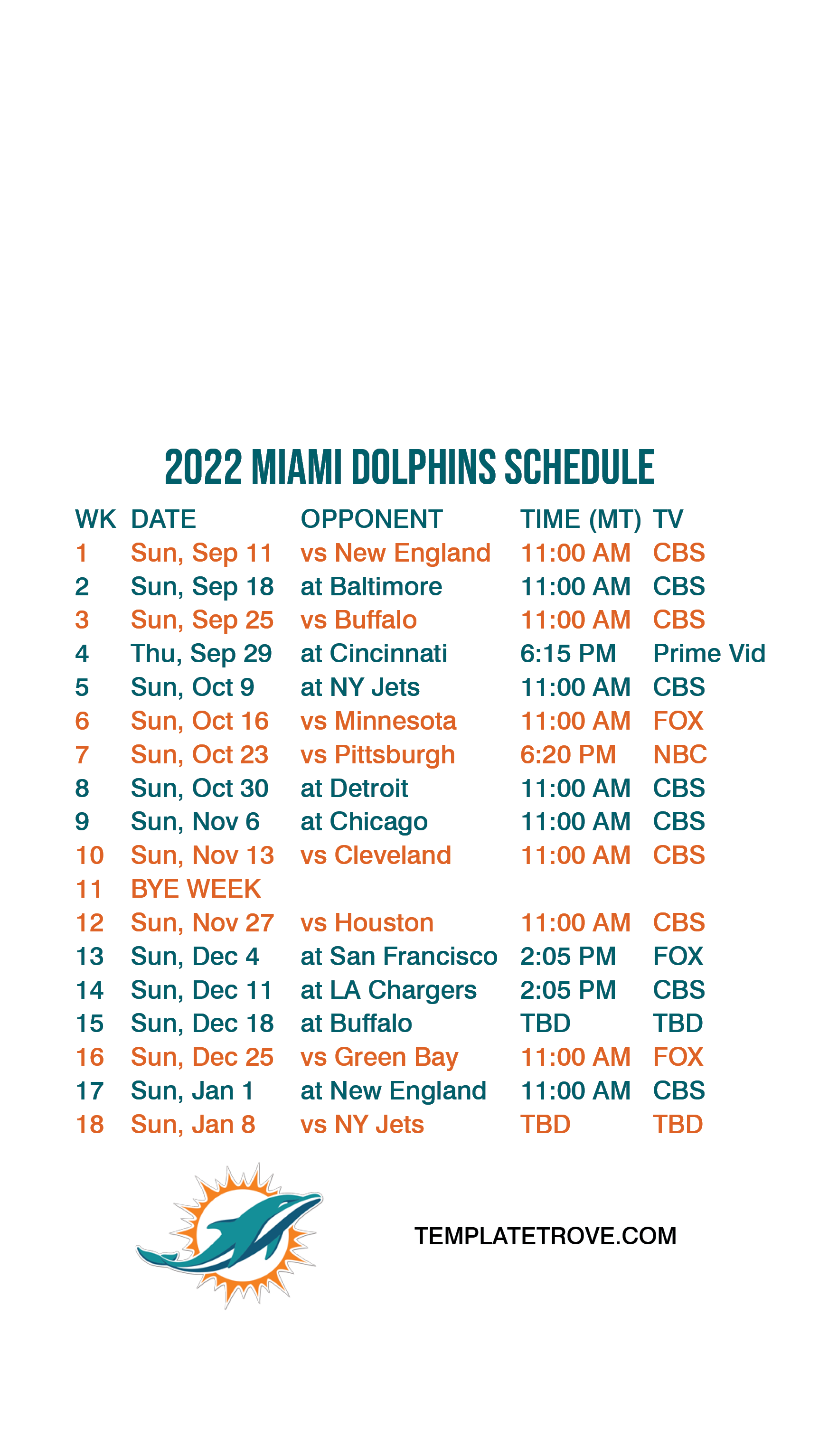 Miami Dolphins Lock Screen Schedule for iPhone 6, 7, 8 Plus