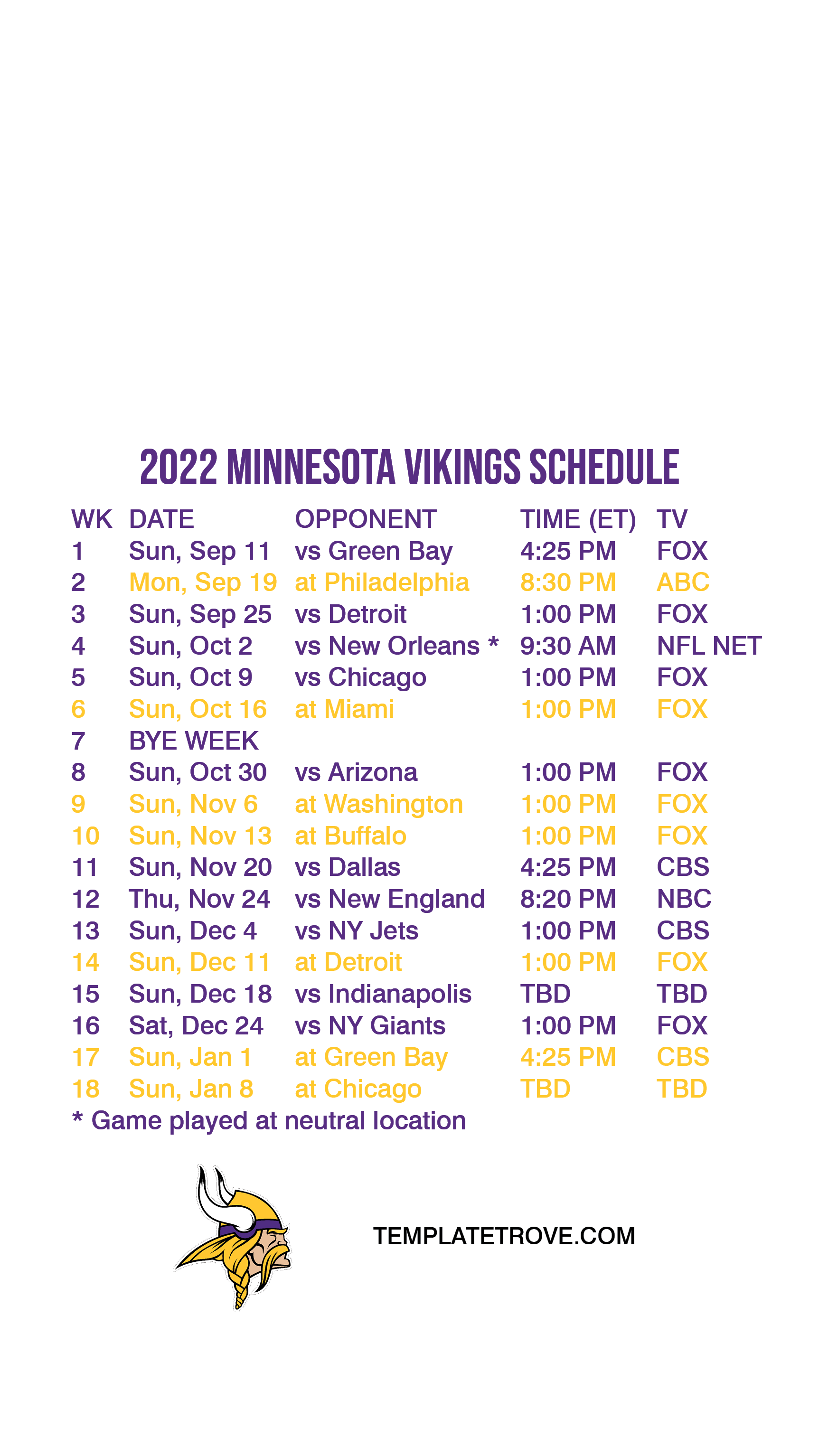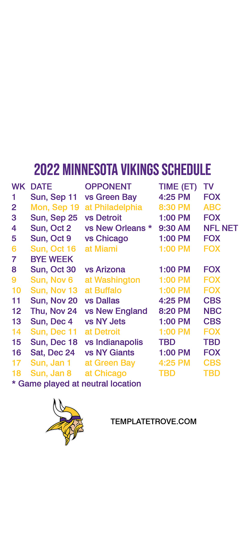 2022-23 Minnesota Vikings Lock Screen Schedule