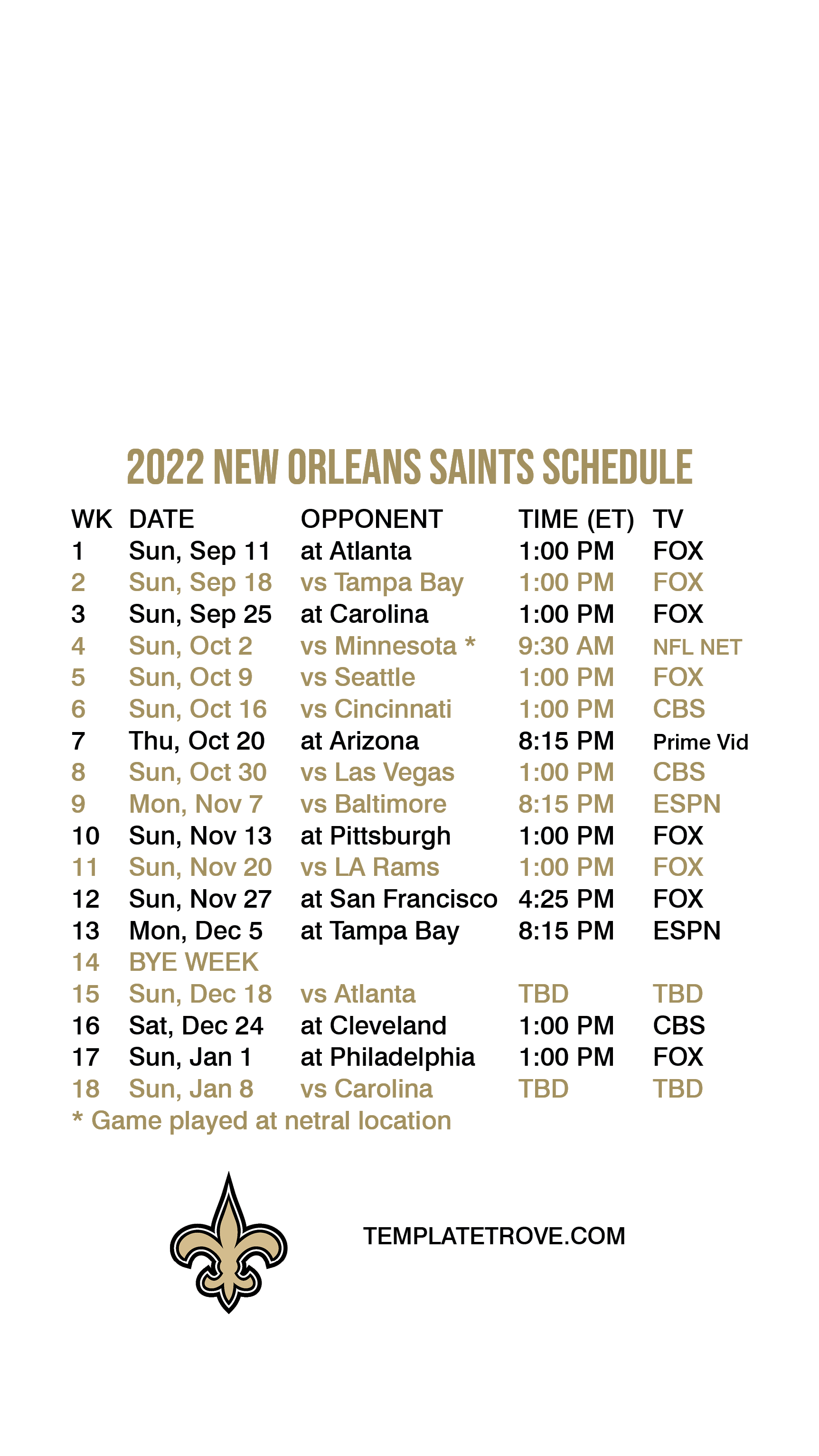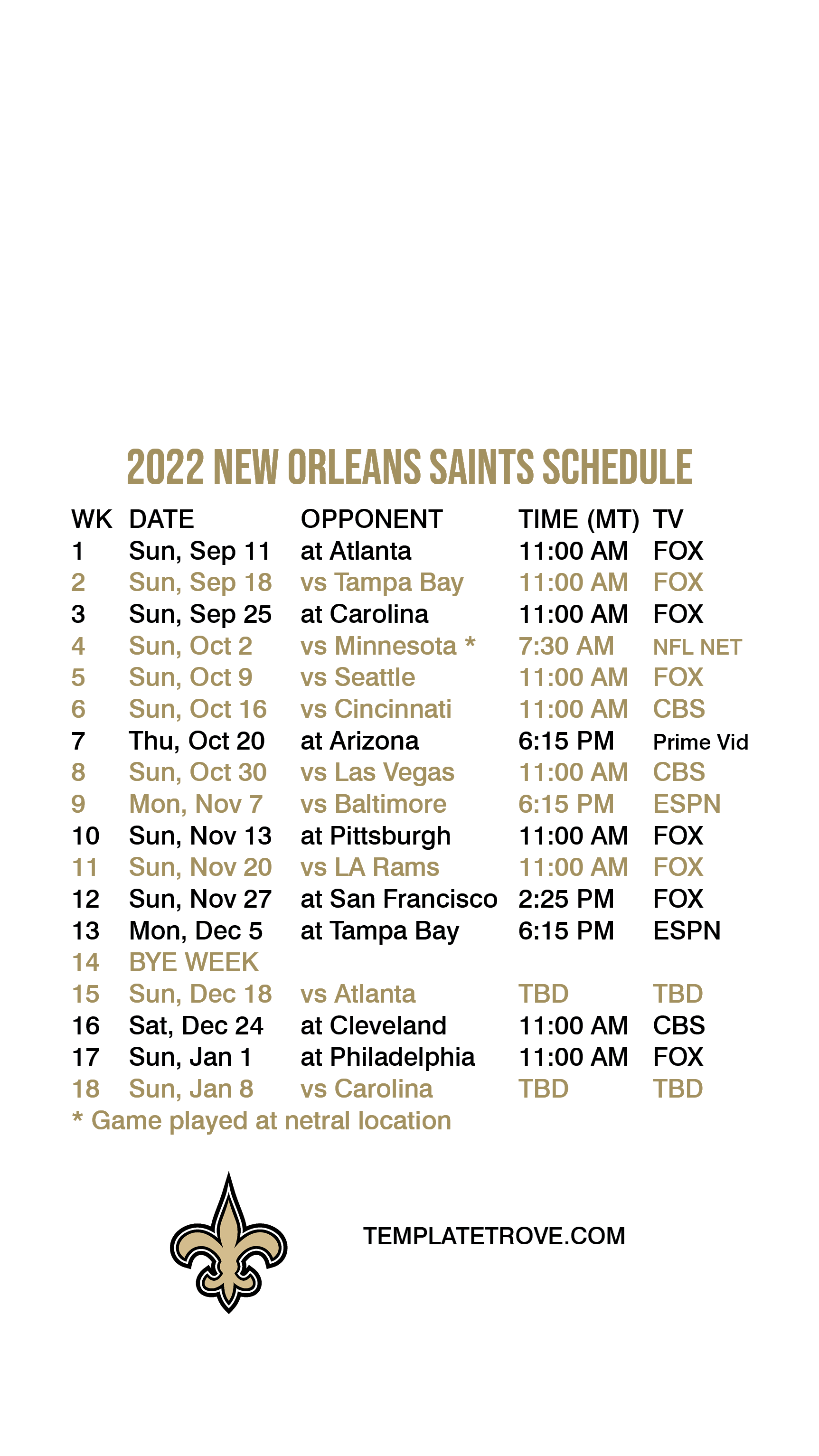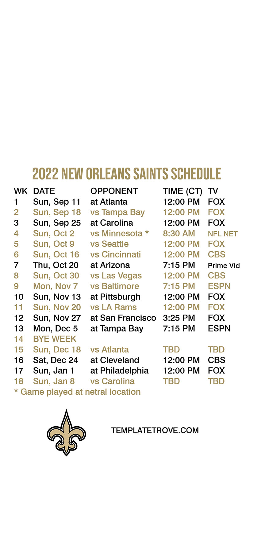 New Orleans Saints Lock Screen Schedule for iPhone 6, 7, 8