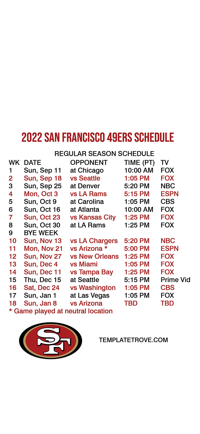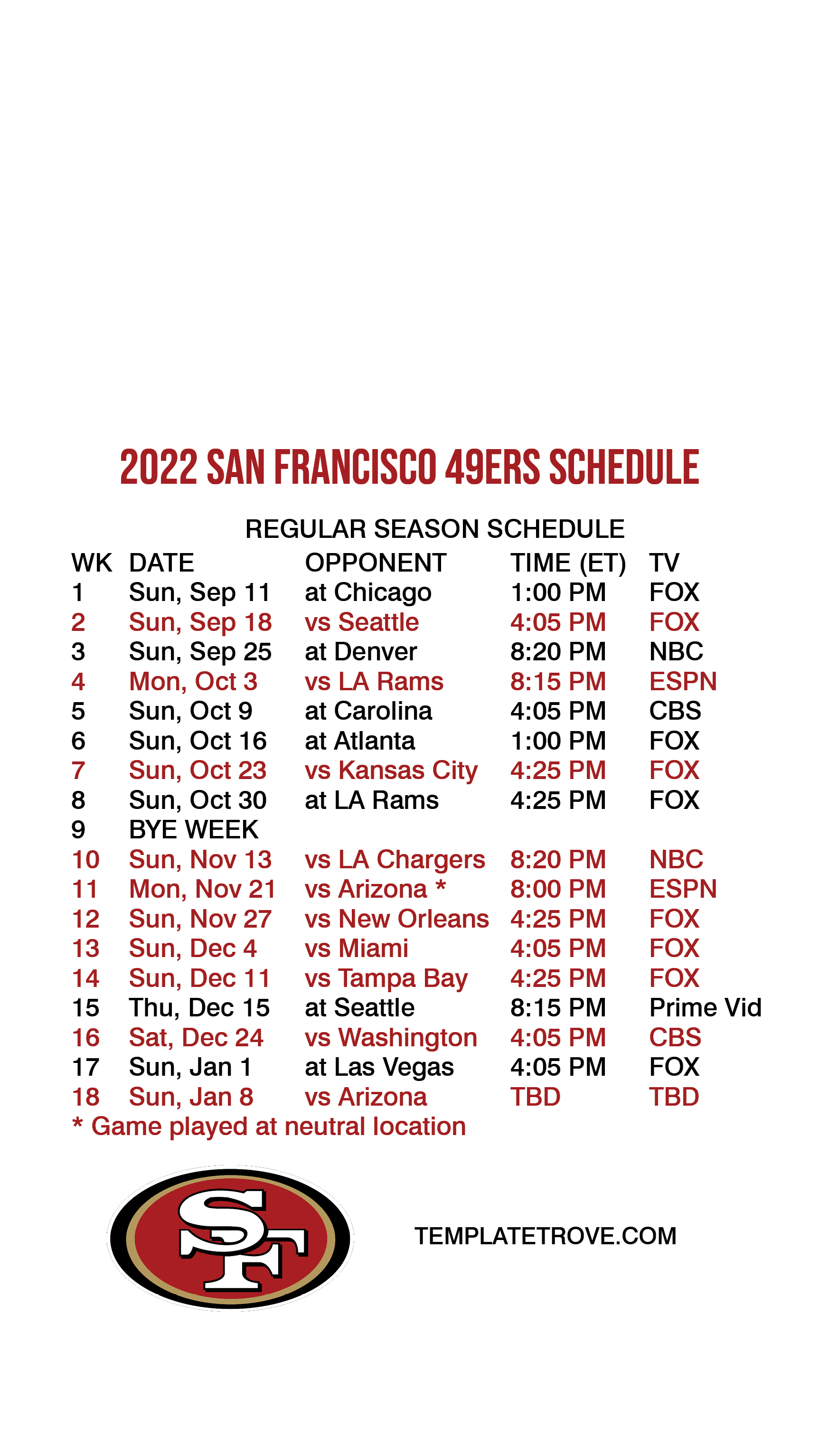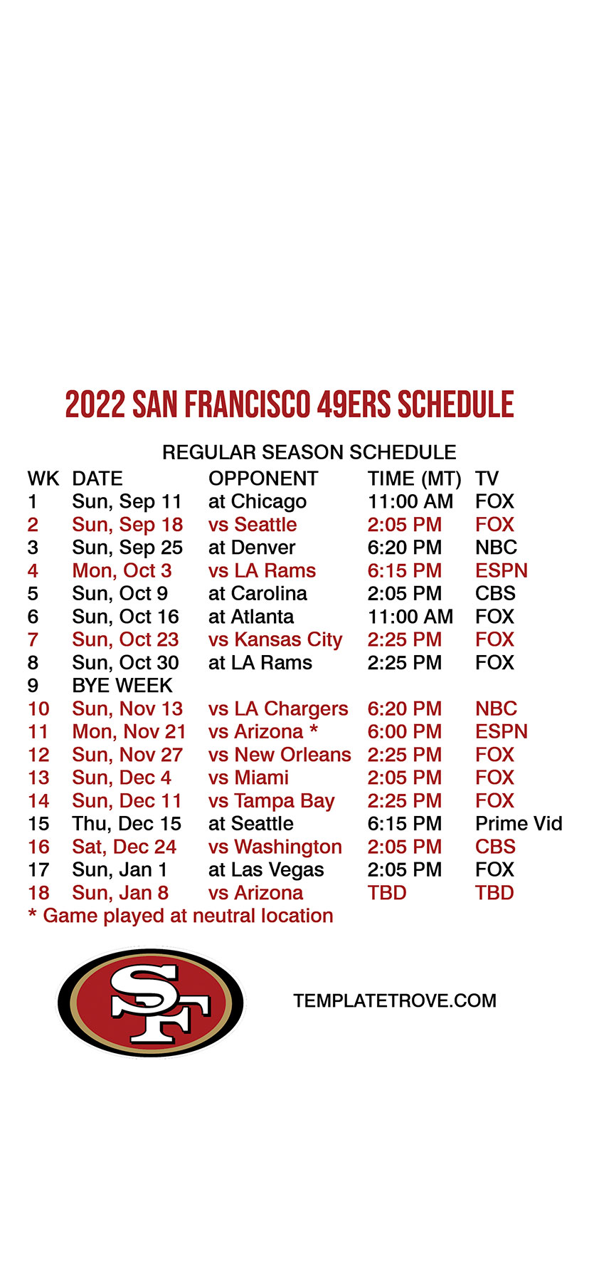 2022-23 San Francisco 49ers Lock Screen Schedule