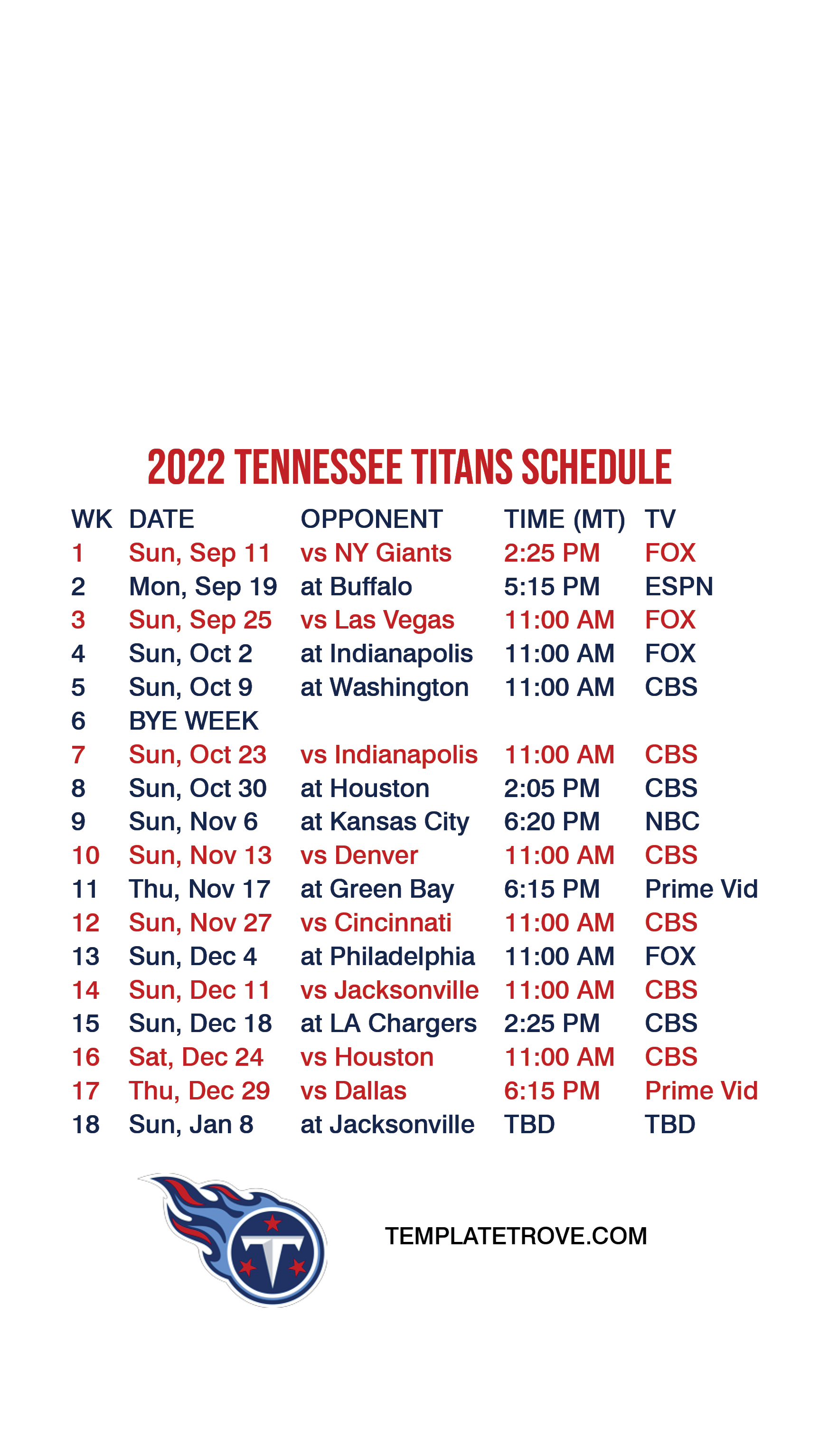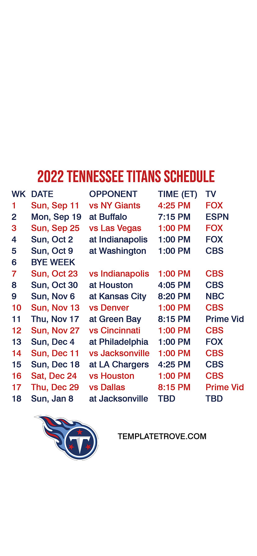 Tennessee Titans Lock Screen Schedule for iPhone 6, 7, 8 Plus