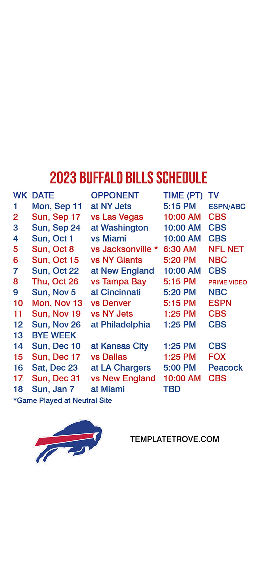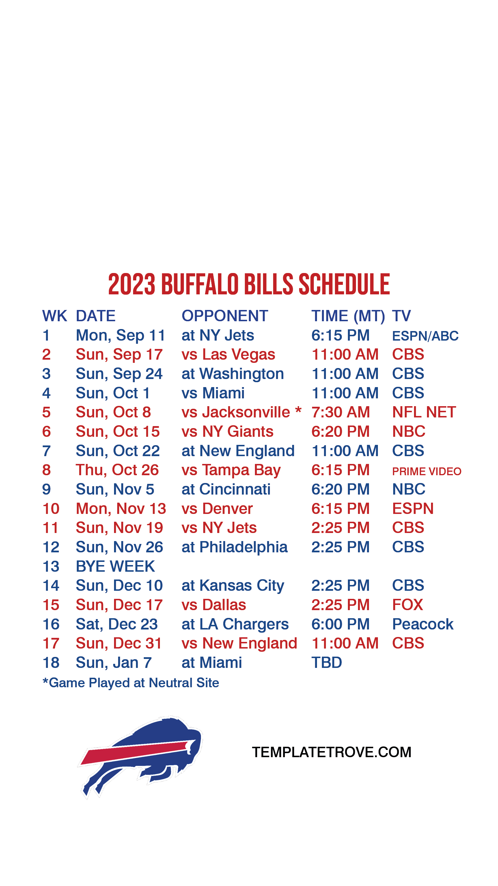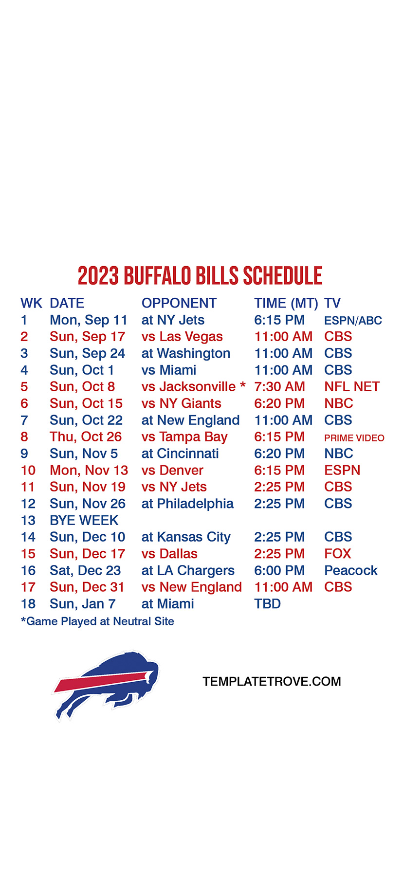 Buffalo Bills Lock Screen Schedule for iPhone 6, 7, 8 Plus