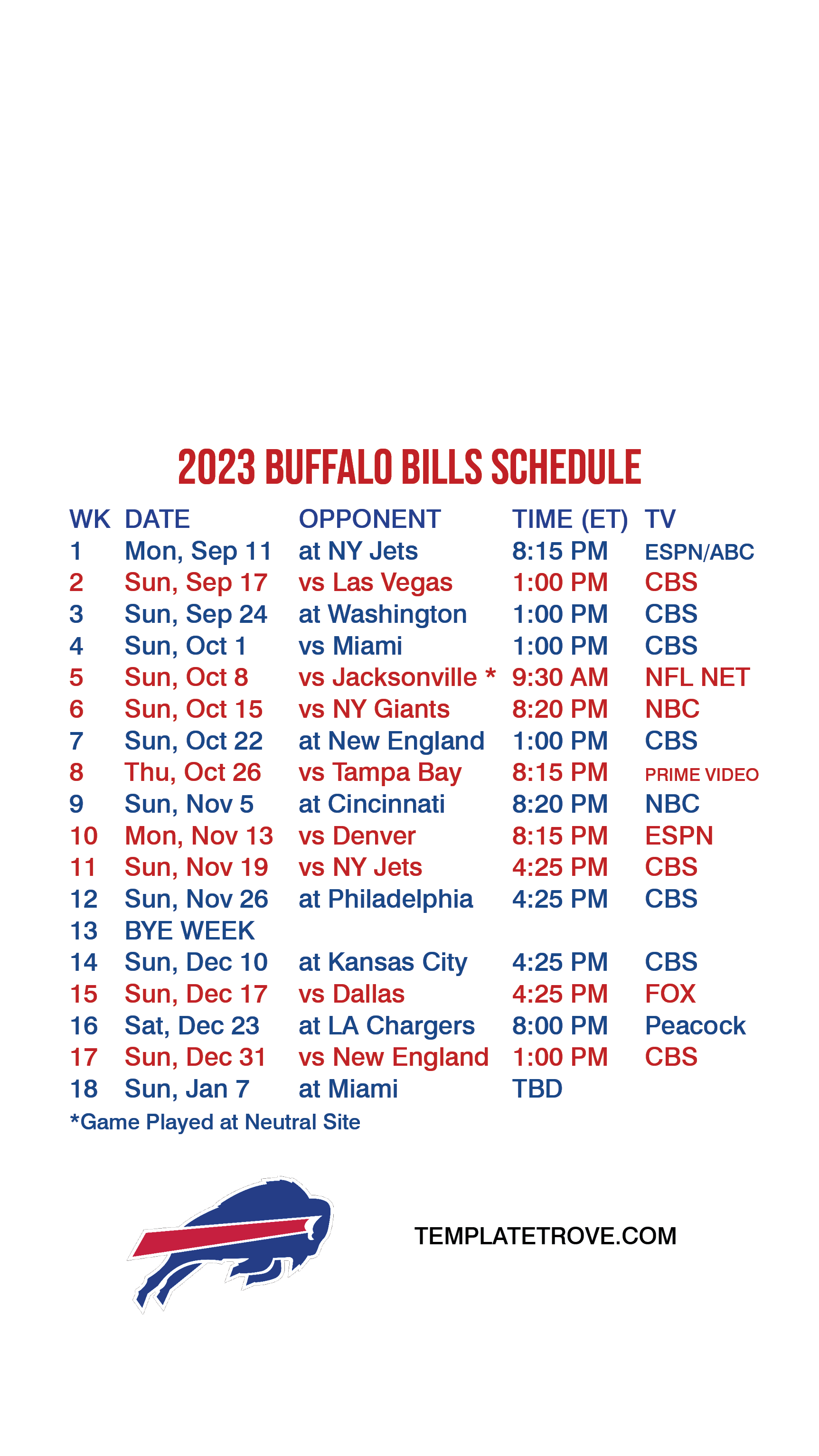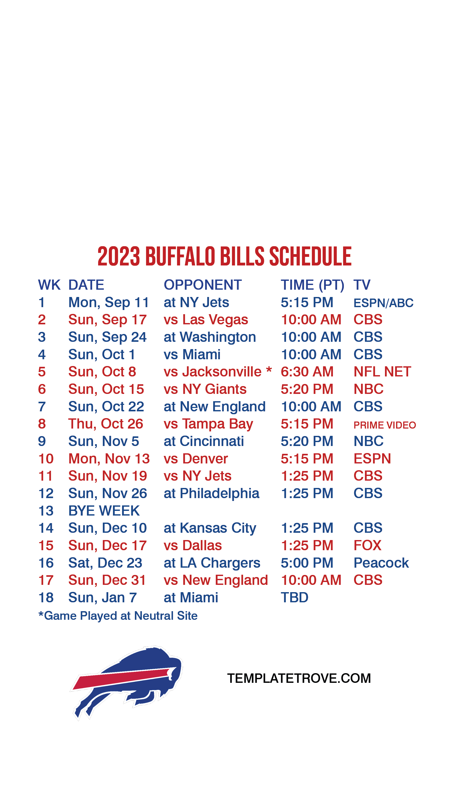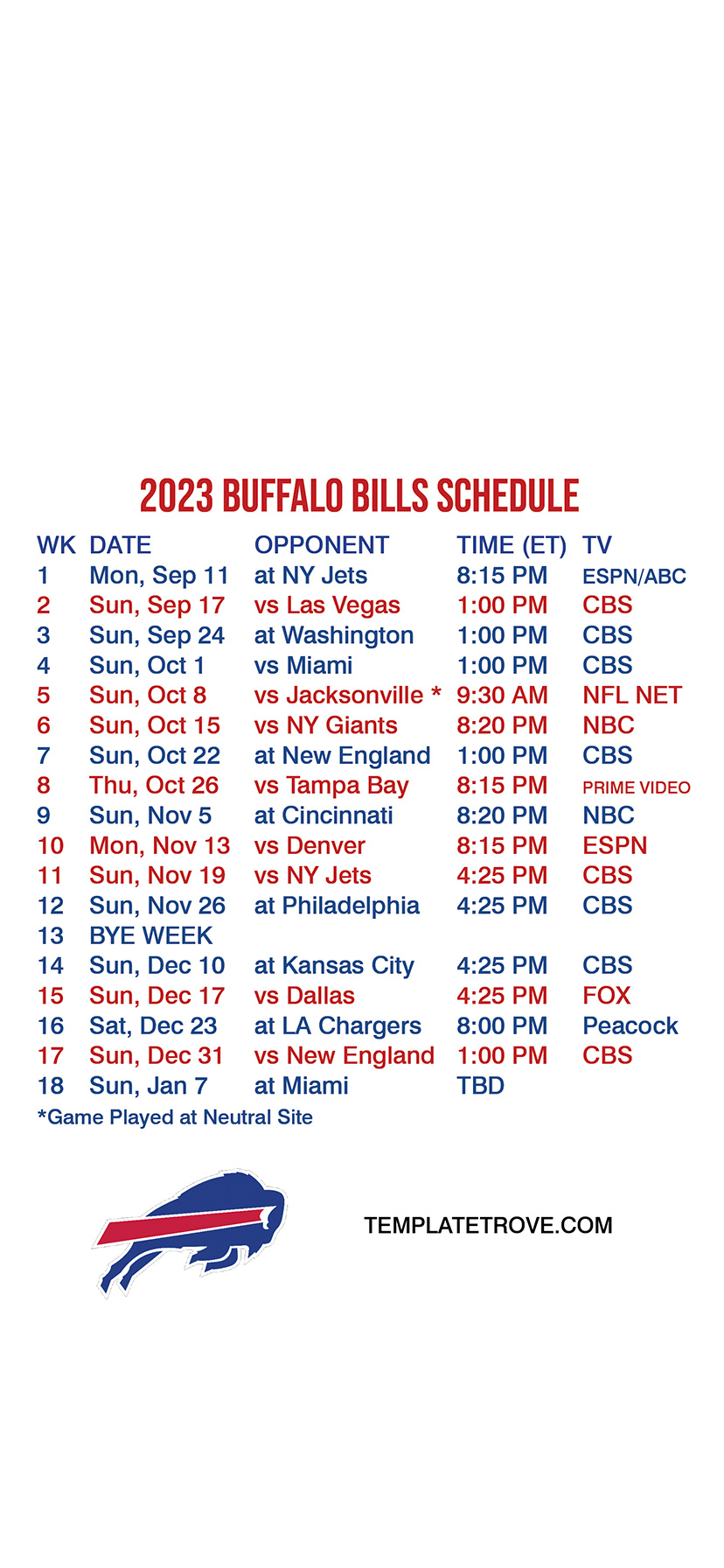 Buffalo Bills Lock Screen Schedule for iPhone 6, 7, 8 Plus