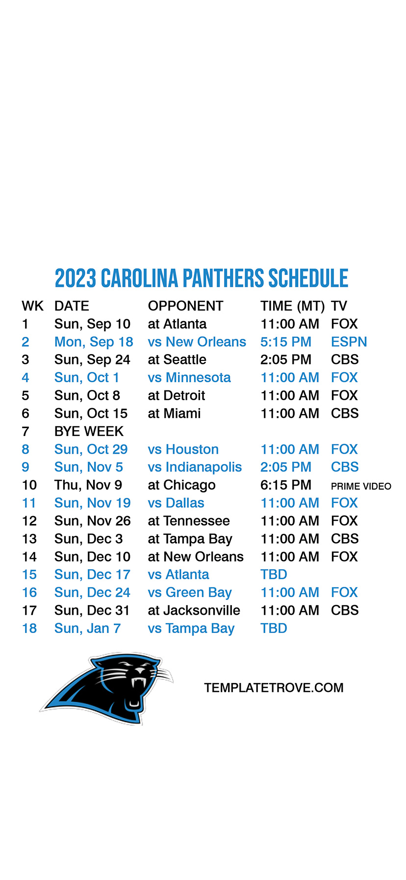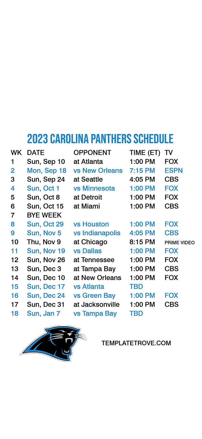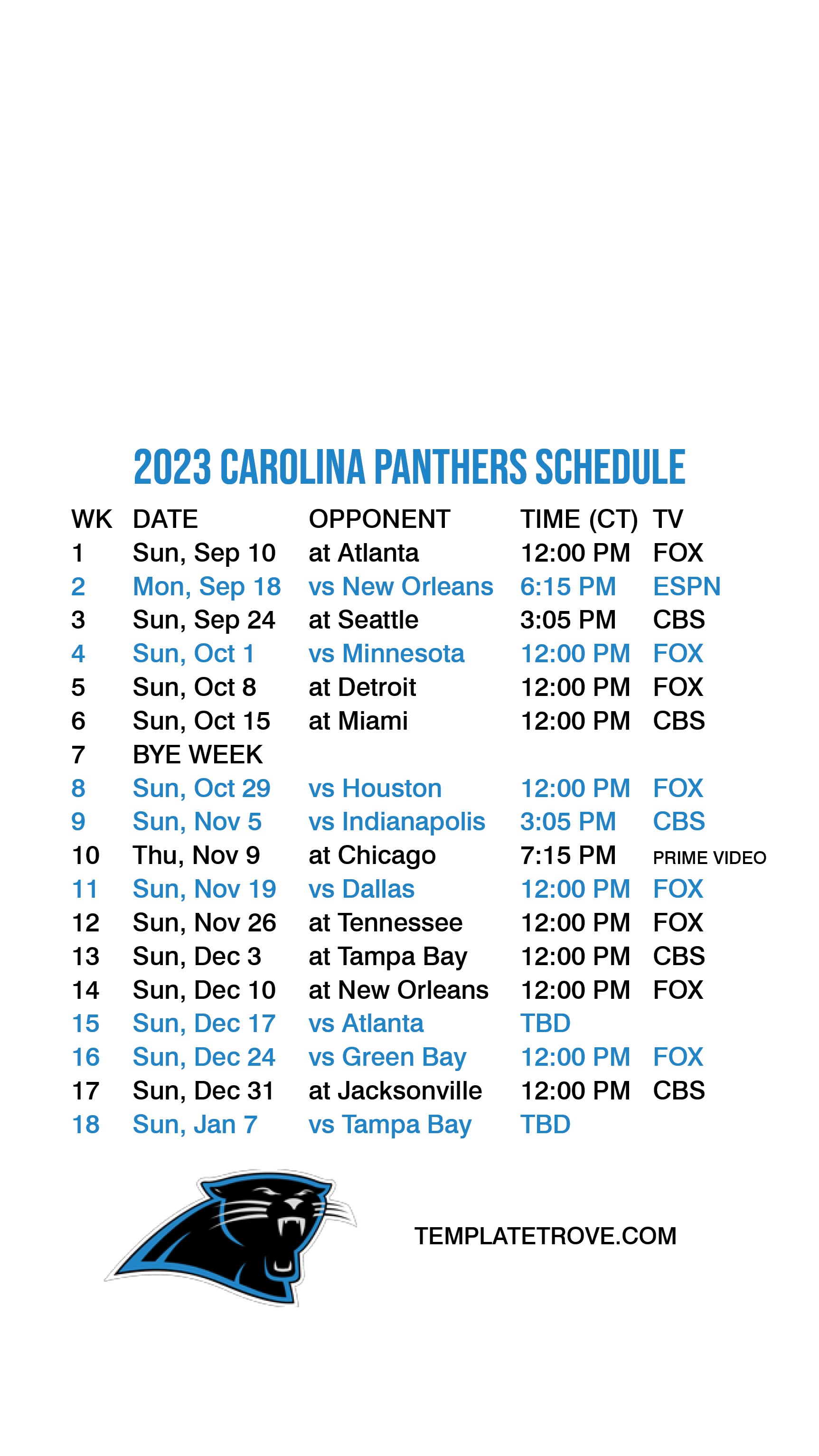 Carolina Panthers Lock Screen Schedule for iPhone 6, 7, 8 Plus