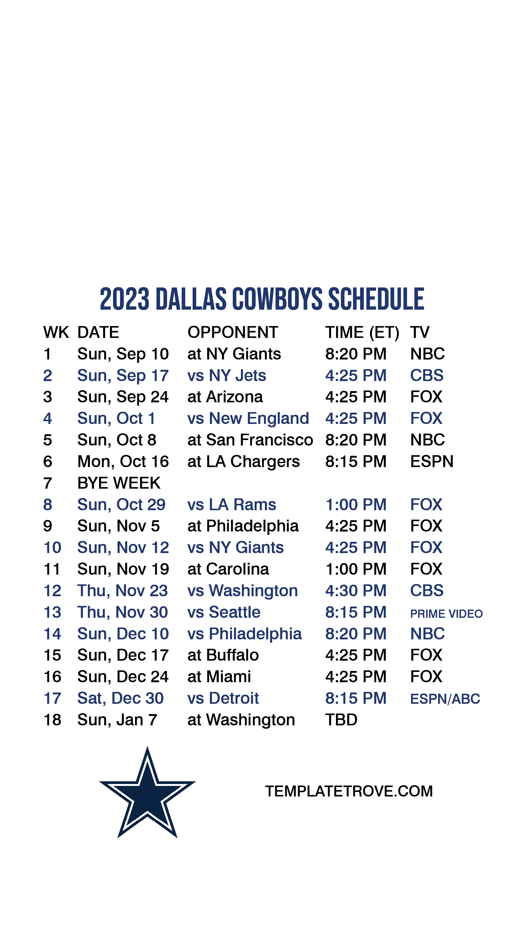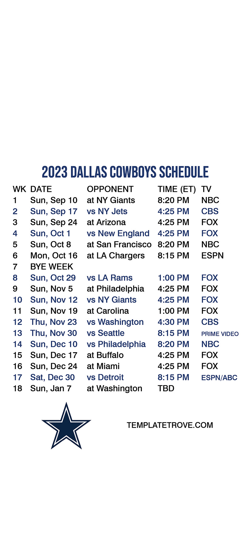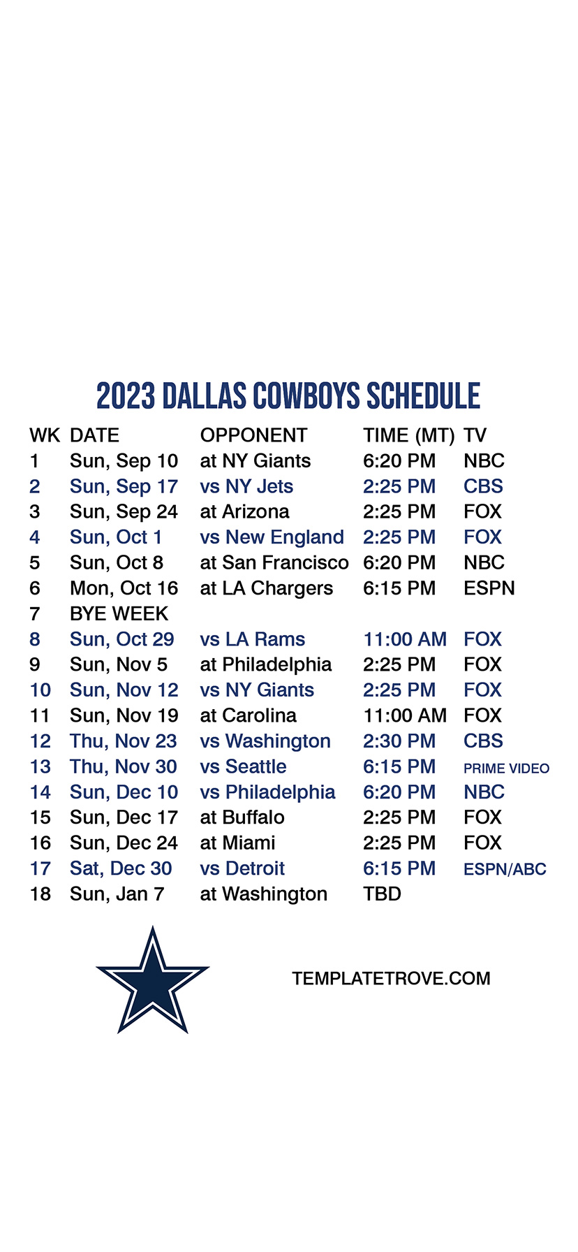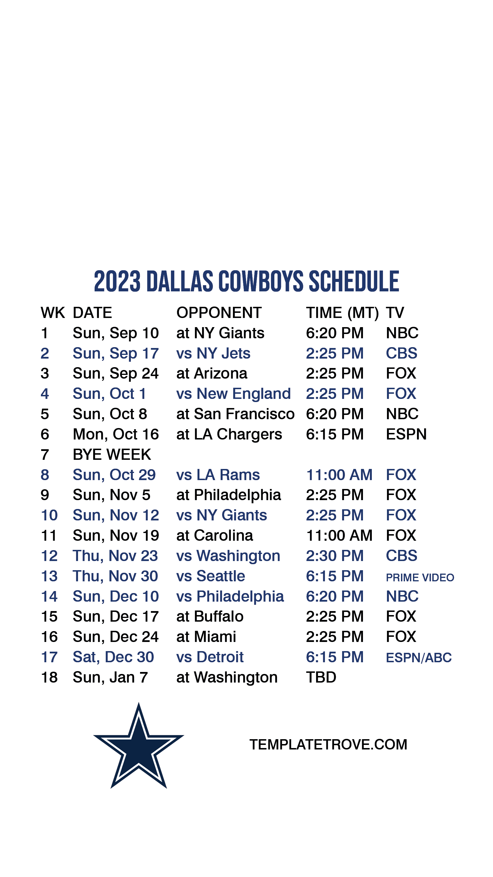 2023-24 Dallas Cowboys Lock Screen Schedule