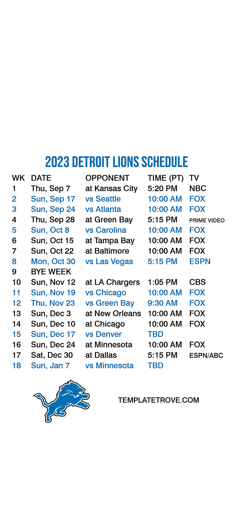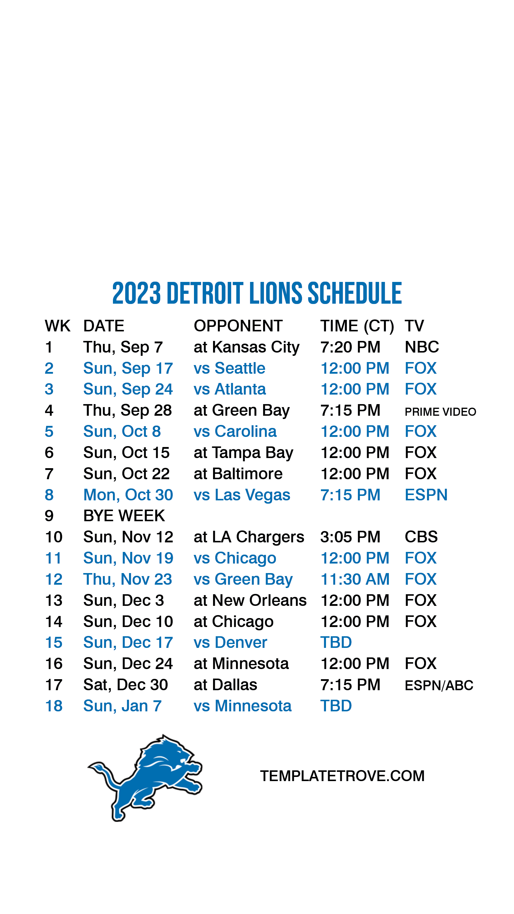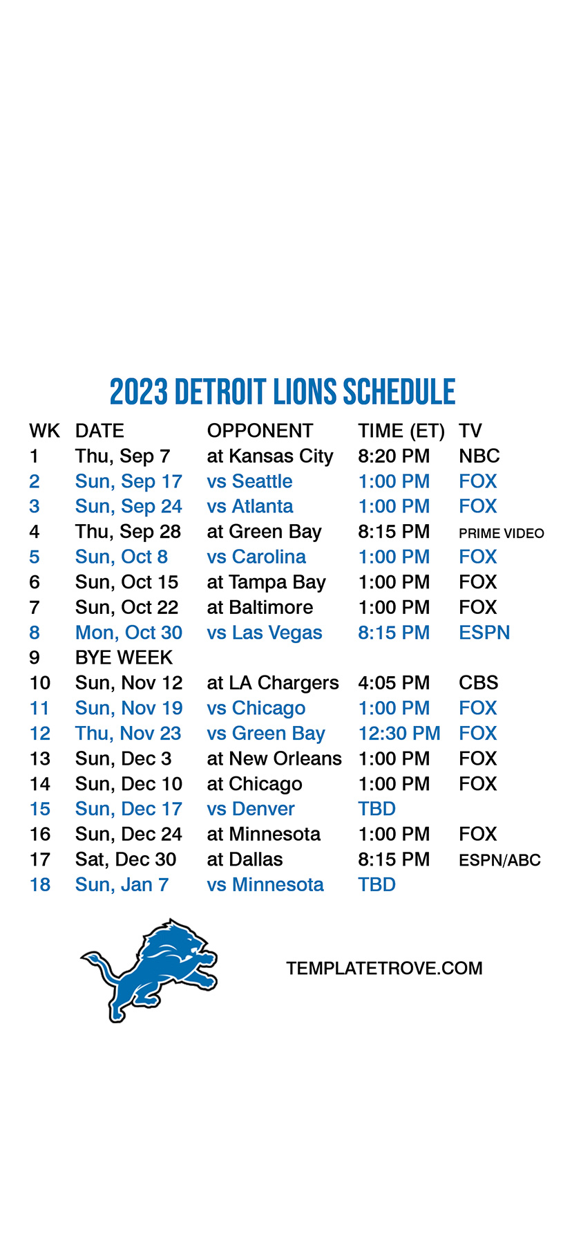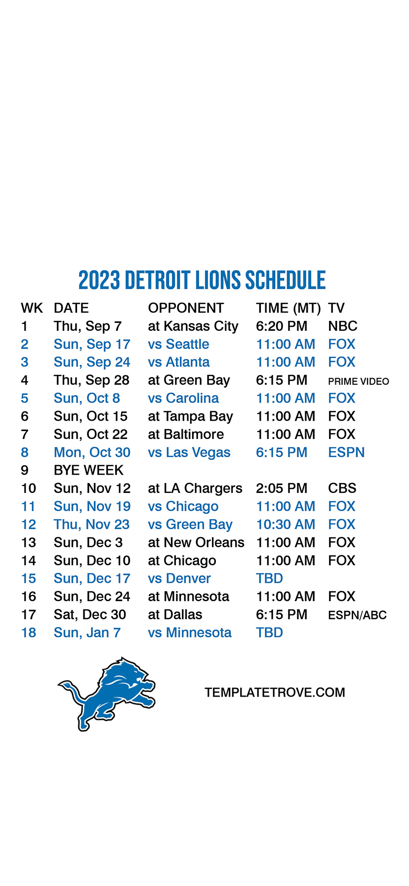 Detroit Lions Lock Screen Schedule for iPhone 6, 7, 8 Plus