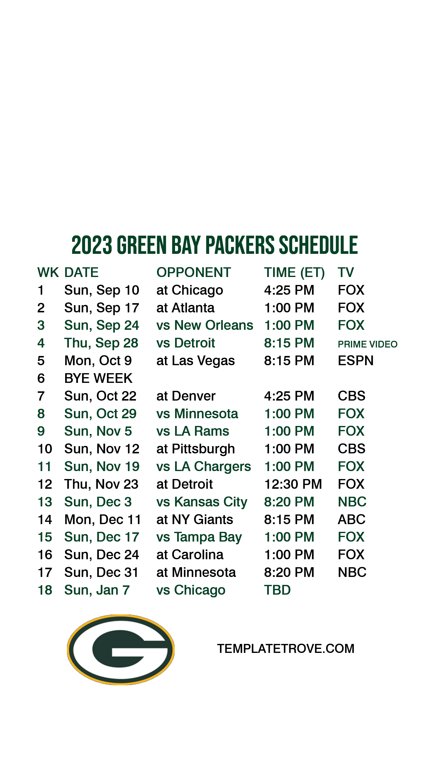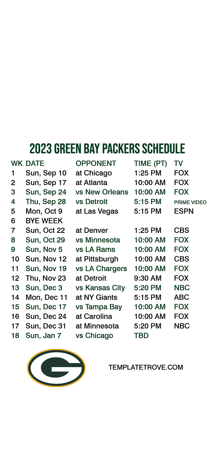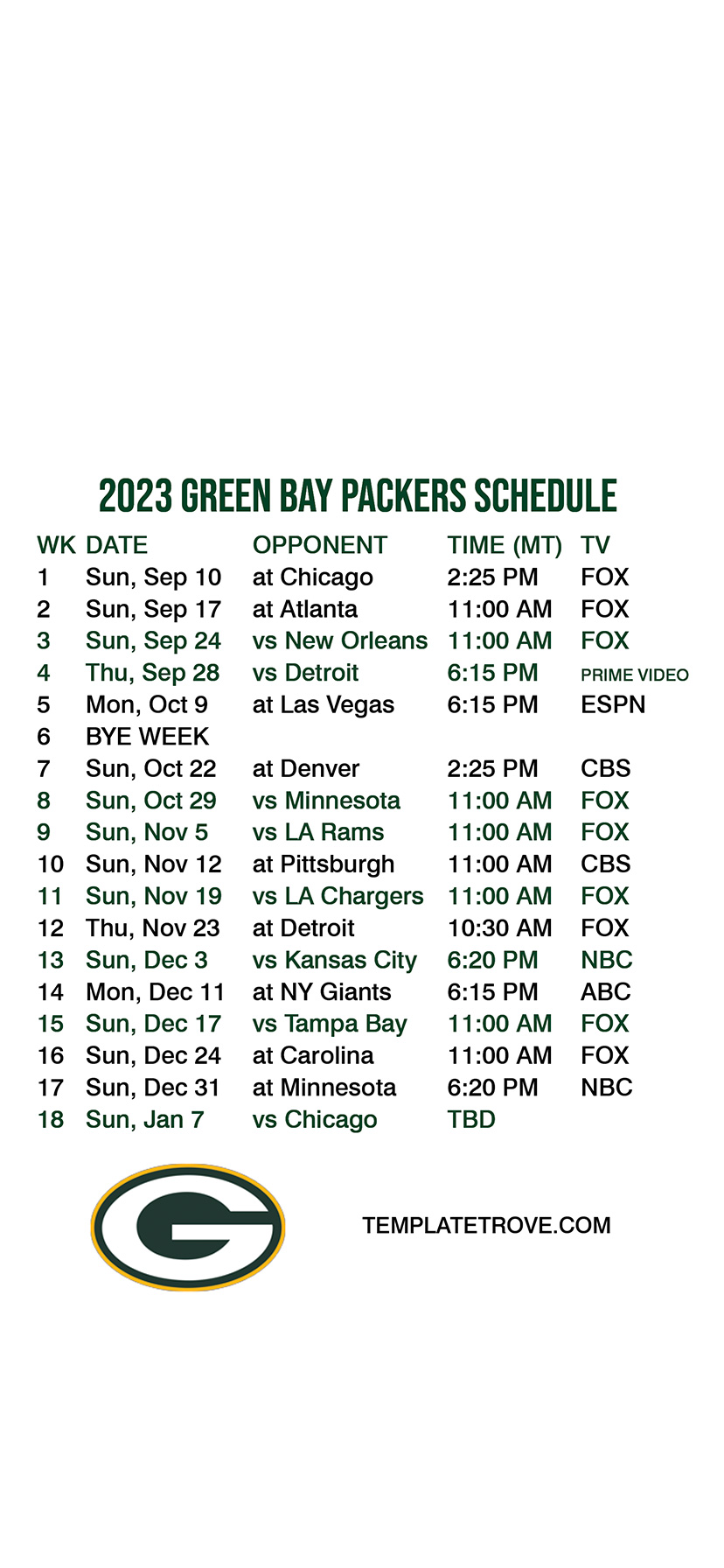 2023 Green Bay Packers Lock Screen Schedule
