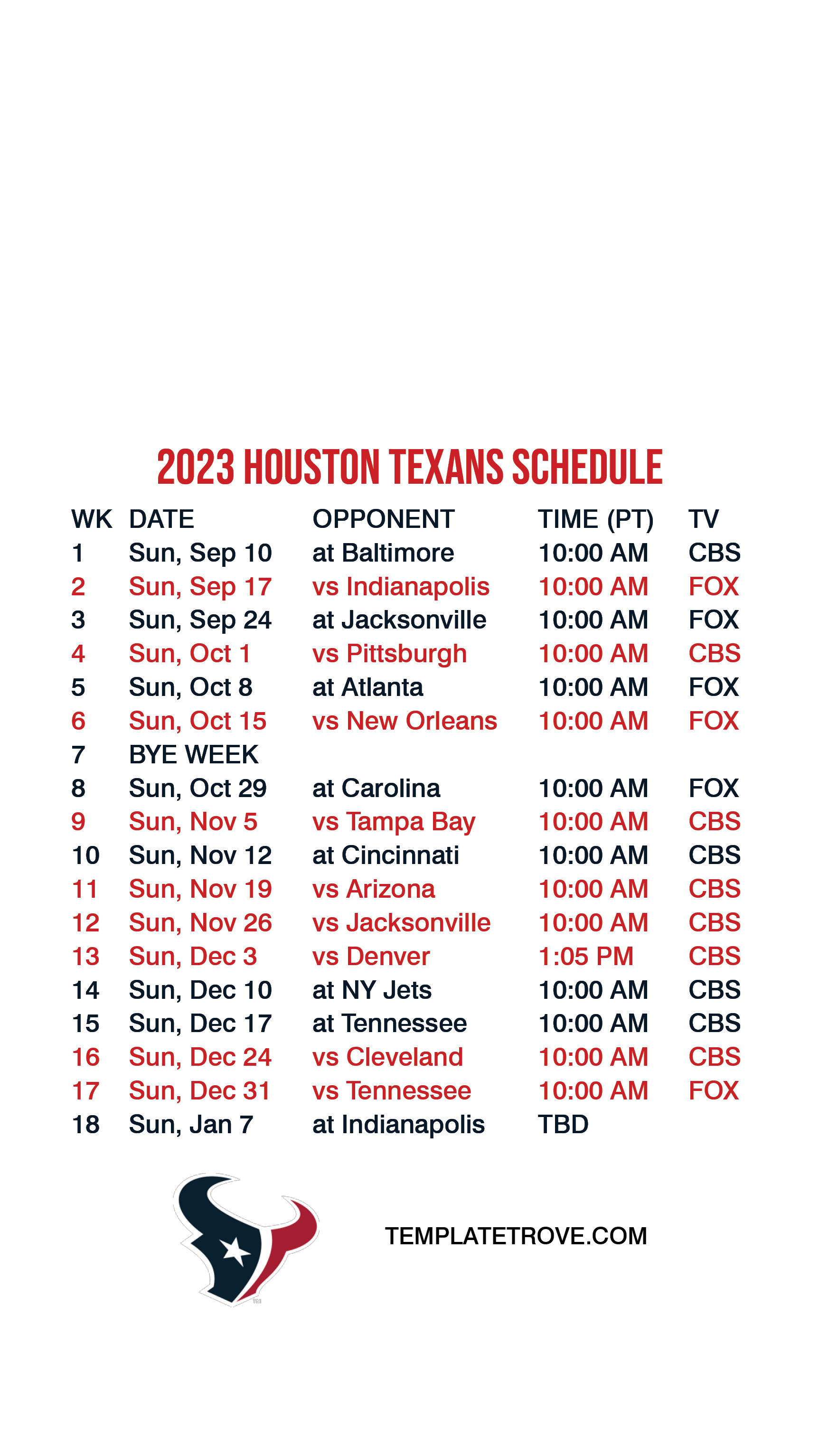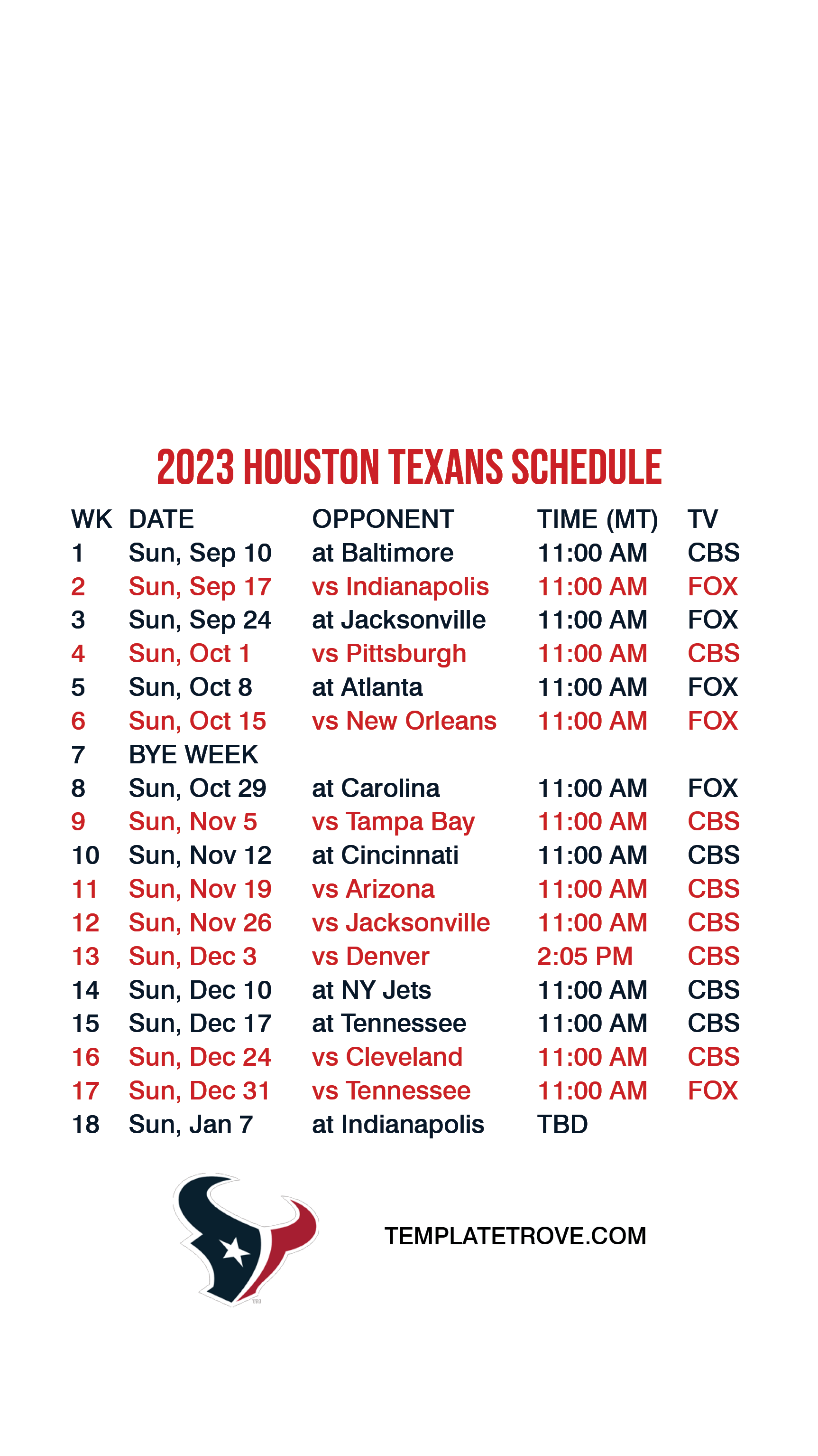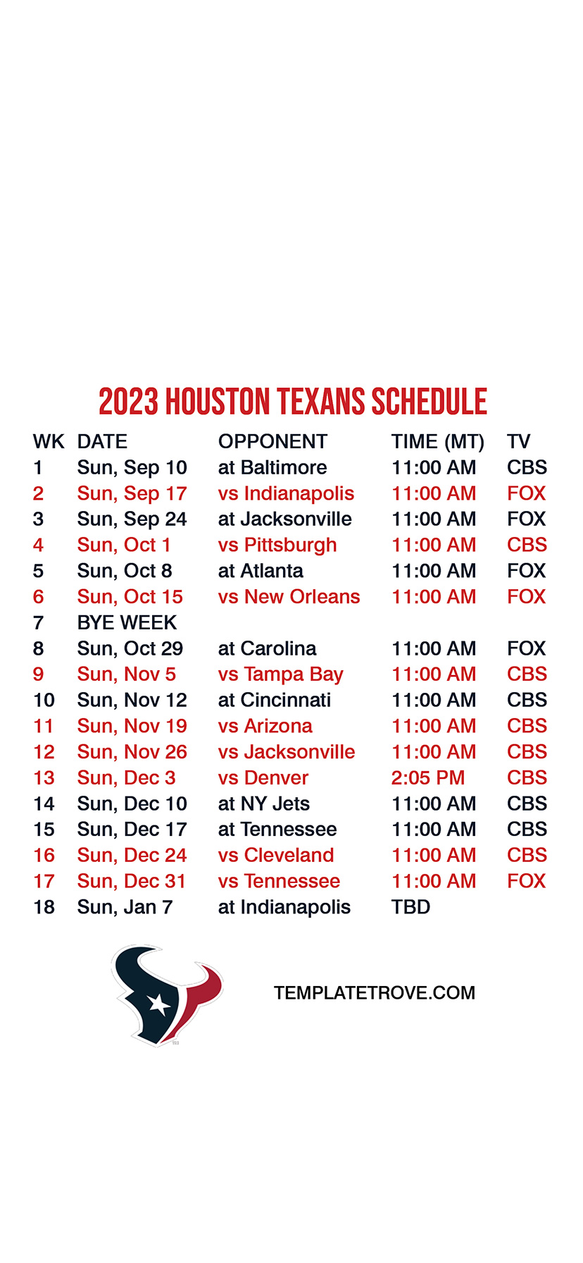 Houston Texans Lock Screen Schedule for iPhone XR, 11 and 11 Plus