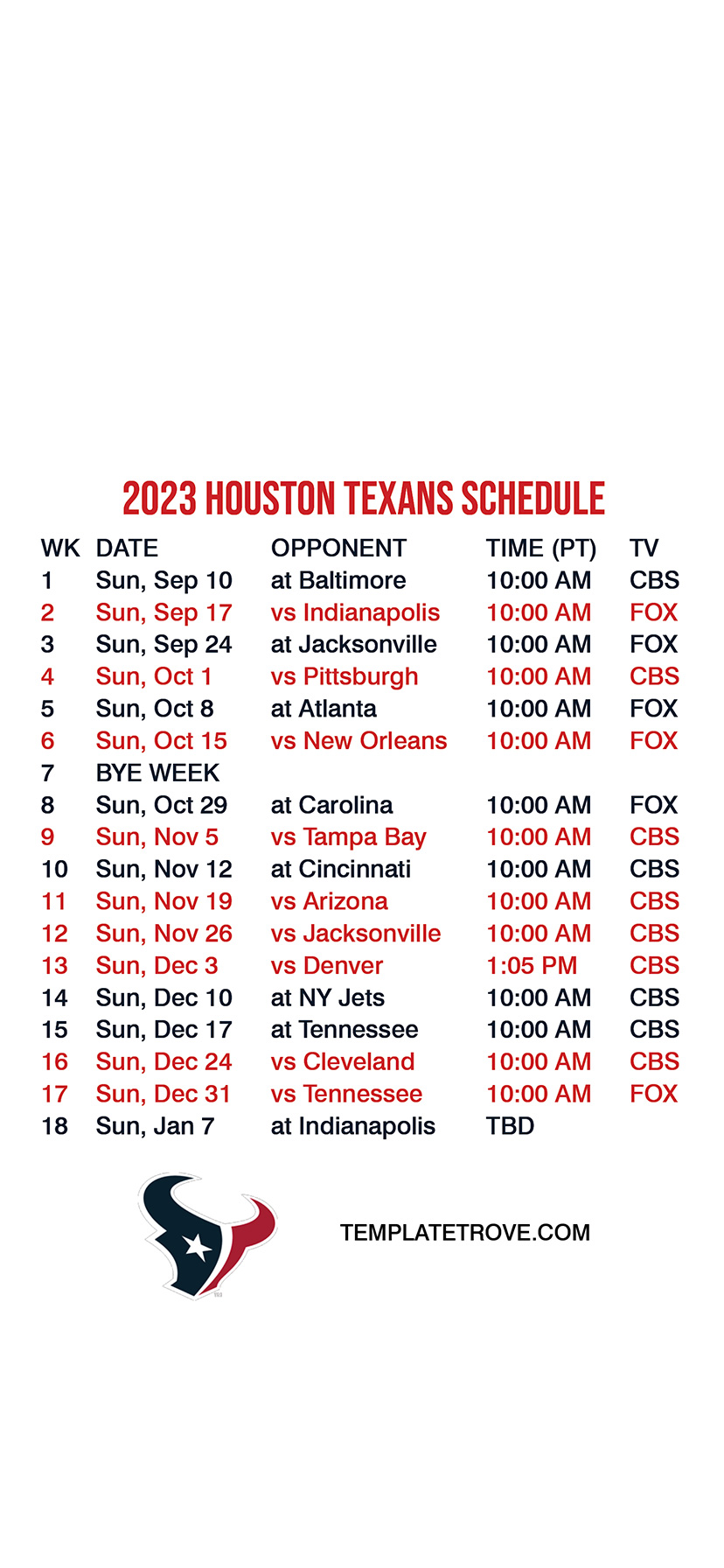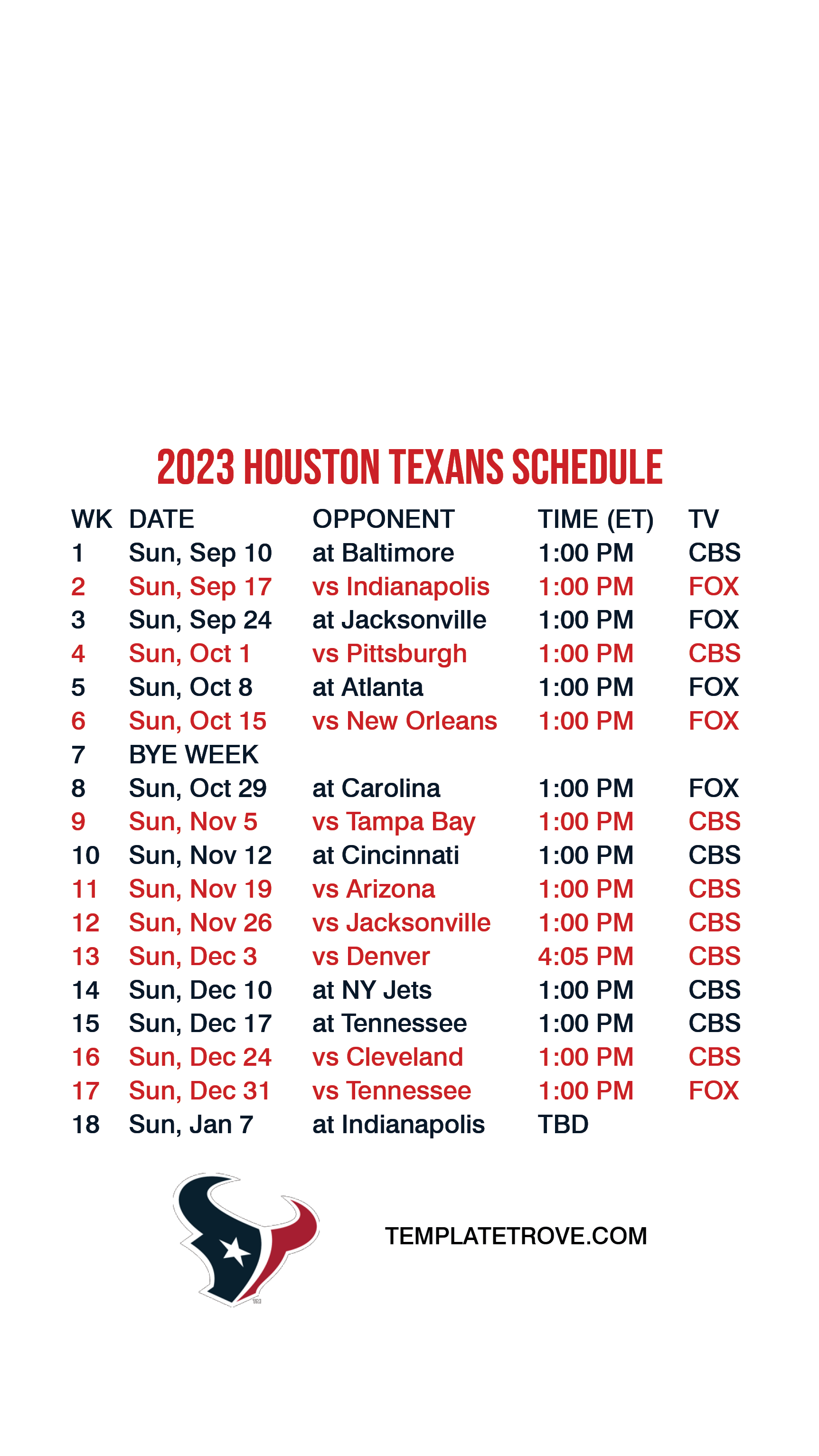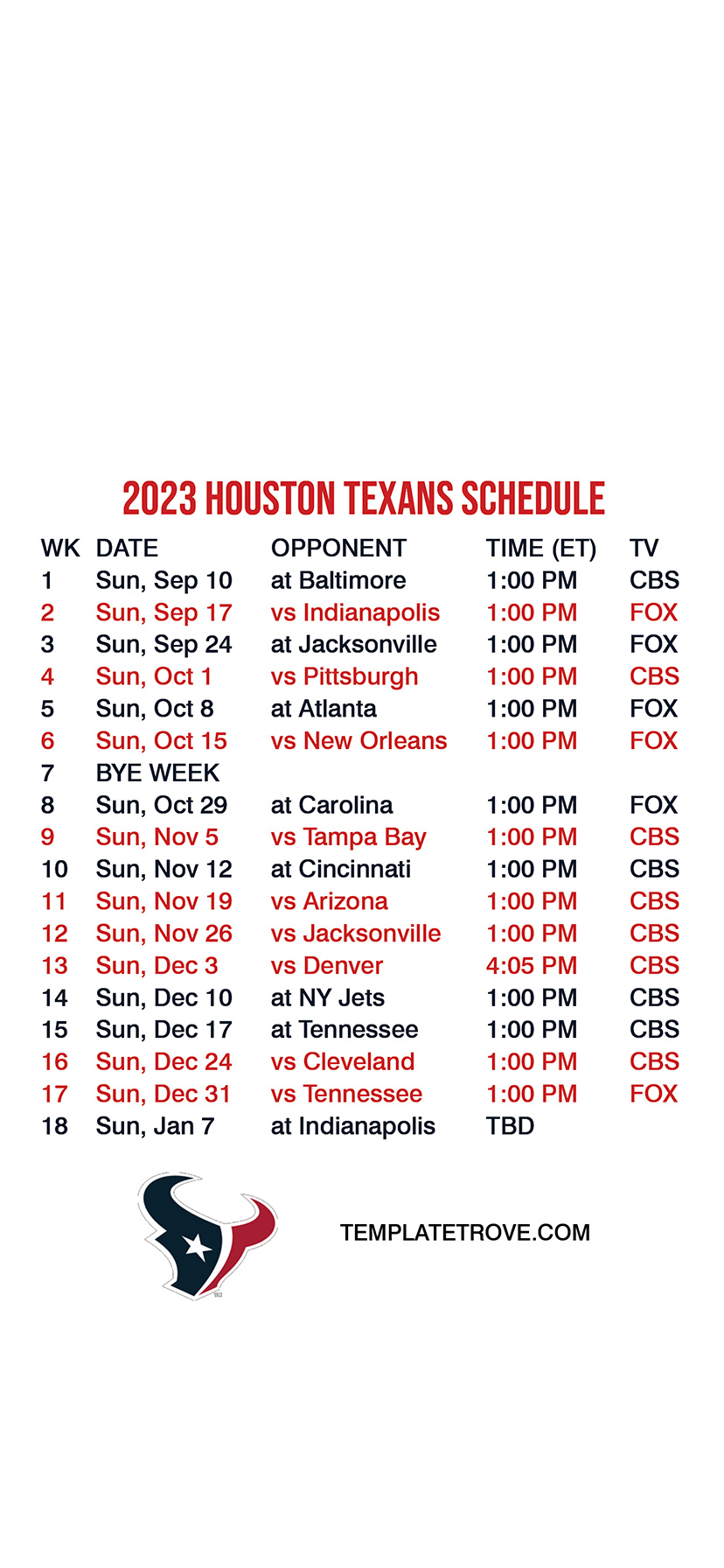 Houston Texans Lock Screen Schedule for iPhone 6, 7, 8 Plus